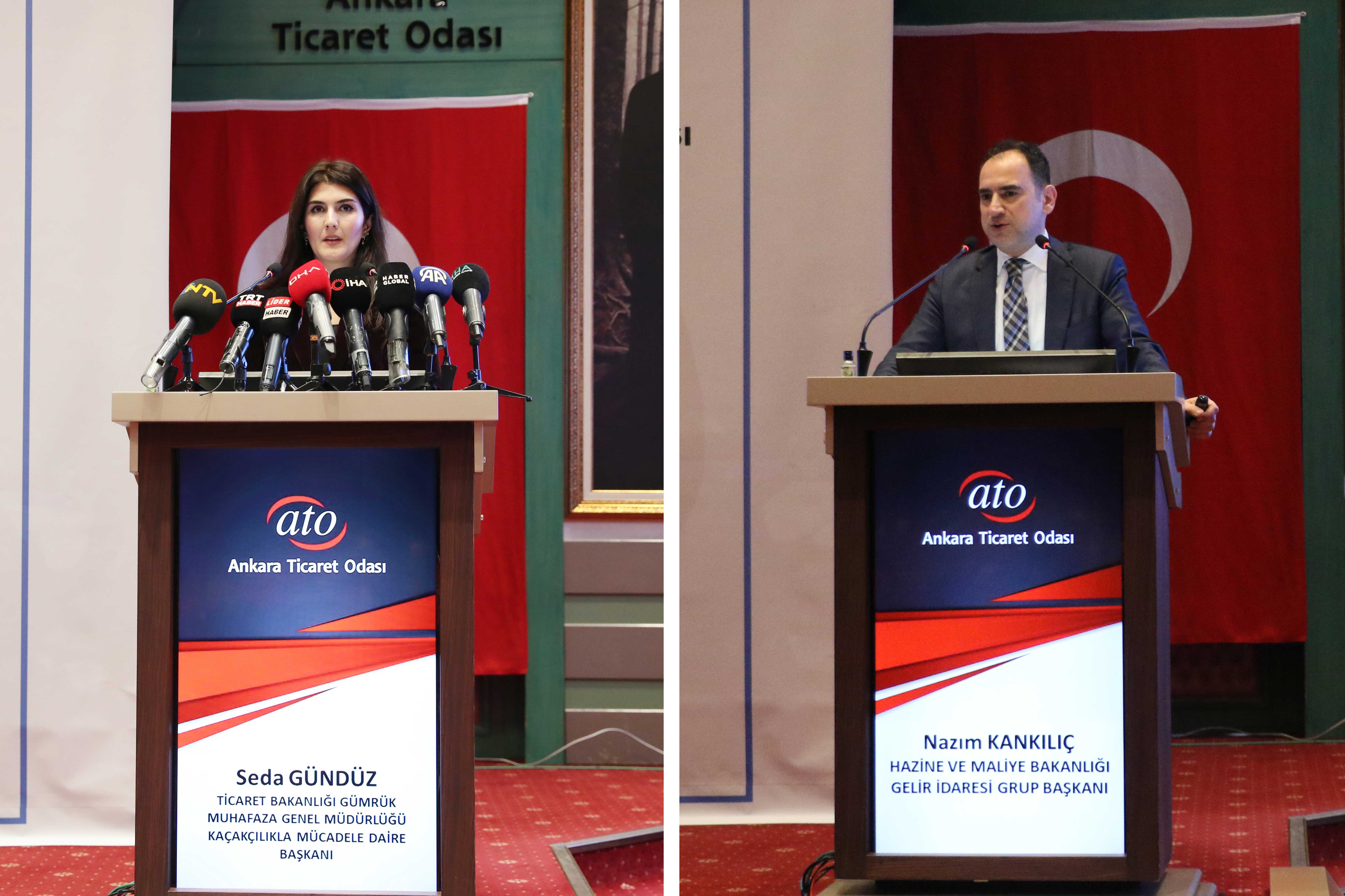 Açılış konuşmalarının ardından Ticaret Bakanlığı Gümrükler Muhafaza Genel Müdürlüğü Kaçakçılıkla Mücadele Daire Başkanı Seda Gündüz ile Hazine ve Maliye Bakanlığı Gelir İdaresi Başkanlığı Grup Başkanı Nazım Kankılıç birer sunum yaptı.