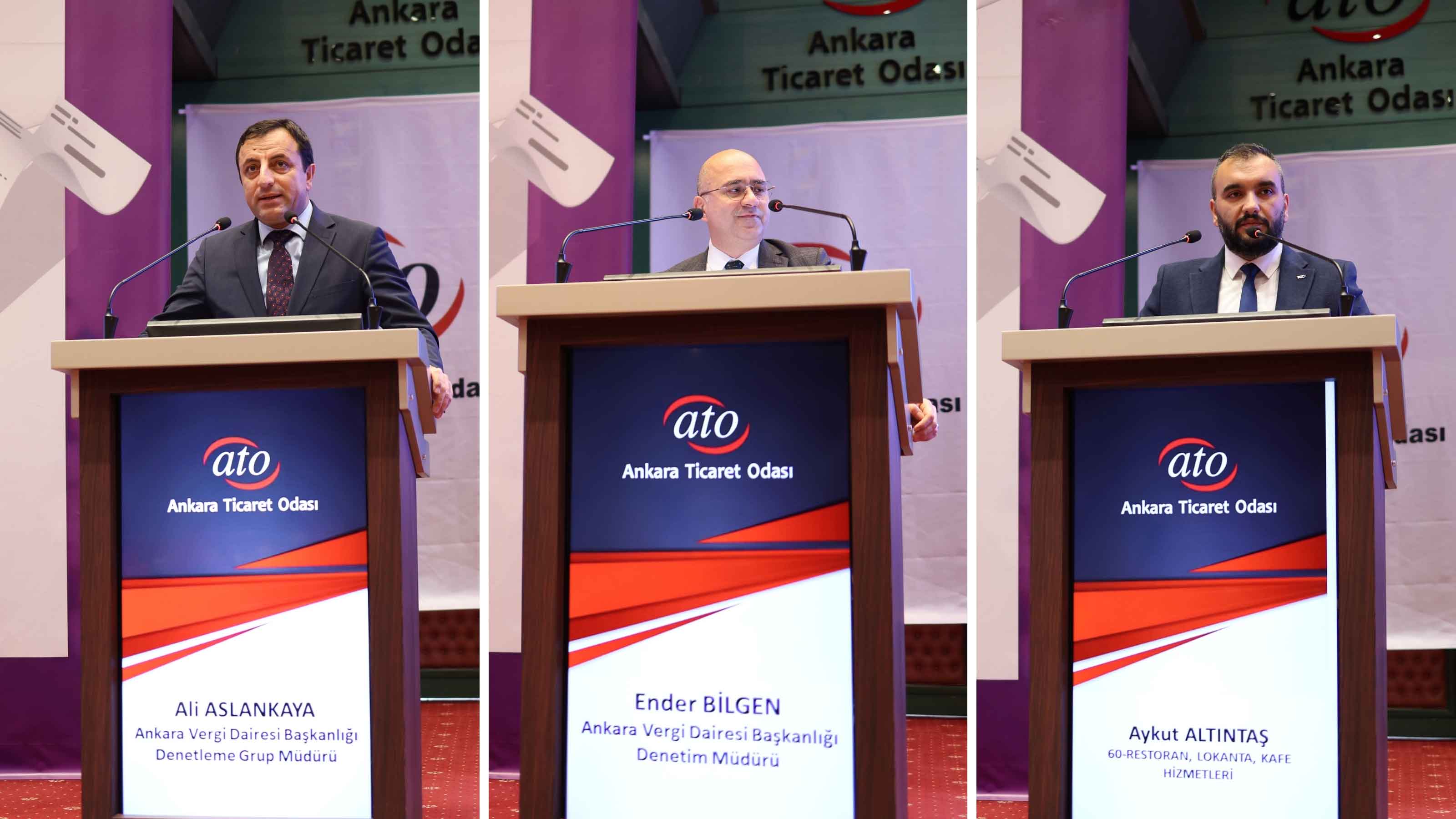 Açılış konuşmalarının ardından ATO 60 No'lu Restoran-Lokanta-Kafe Hizmetleri Meslek Komitesi Üyesi Aykut Altıntaş'ın moderatörlüğünde Ankara Vergi Dairesi Başkanlığı Denetleme Grup Müdürü Ali Aslankaya, Denetim Müdürü Ender Bilgen, Gelir ve Kurumlar Müdürü Özgür Özer ve Usul Müdürü Berrin Öney'in katılımıyla bir panel gerçekleştirilerek, katılımcıların vergi uygulamalarına ilişkin soruları cevaplandı.