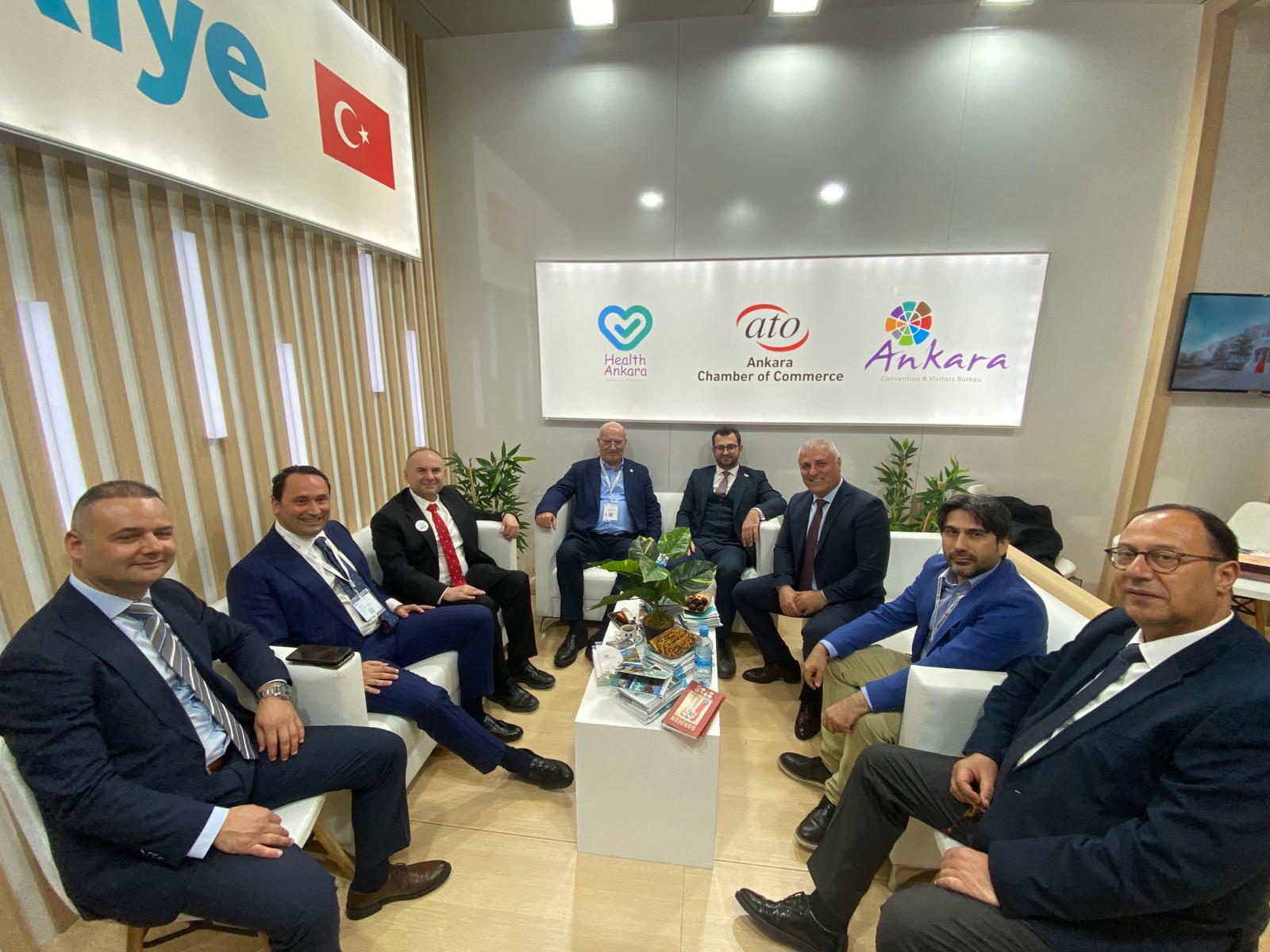 6 Mart 2024- Ankara Ticaret Odası (ATO) dünyanın farklı ülkelerinin seyahat, turizm ve konaklama sektörlerini bir araya getiren, turizm profesyonelleri, firmalar, bürokratlar ve seyahat meraklısı binlerce ziyaretçiyi ağırlayan Berlin Uluslararası Turizm Borsası Fuarı'nda (ITB Berlin), Başkent'in turizm potansiyelini tanıtmak üzere stant açtı. Fuarda büyük ilgi gören ATO'nun standını Kuzey Kıbrıs Türk Cumhuriyeti (KKTC) Cumhurbaşkanı Ersin Tatar ile Kültür ve Turizm Bakanı Mehmet Nuri Ersoy da ziyaret etti. ATO Yönetim Kurulu Başkanı Gürsel Baran, dünyanın en büyük turizm ticaret fuarında Ankara'nın tanıtımı konusunda görev üstlenmiş olmaktan mutluluk duyduklarını belirterek, "Ankara'nın turizmde de dünya markası olması için çalışıyoruz" dedi.