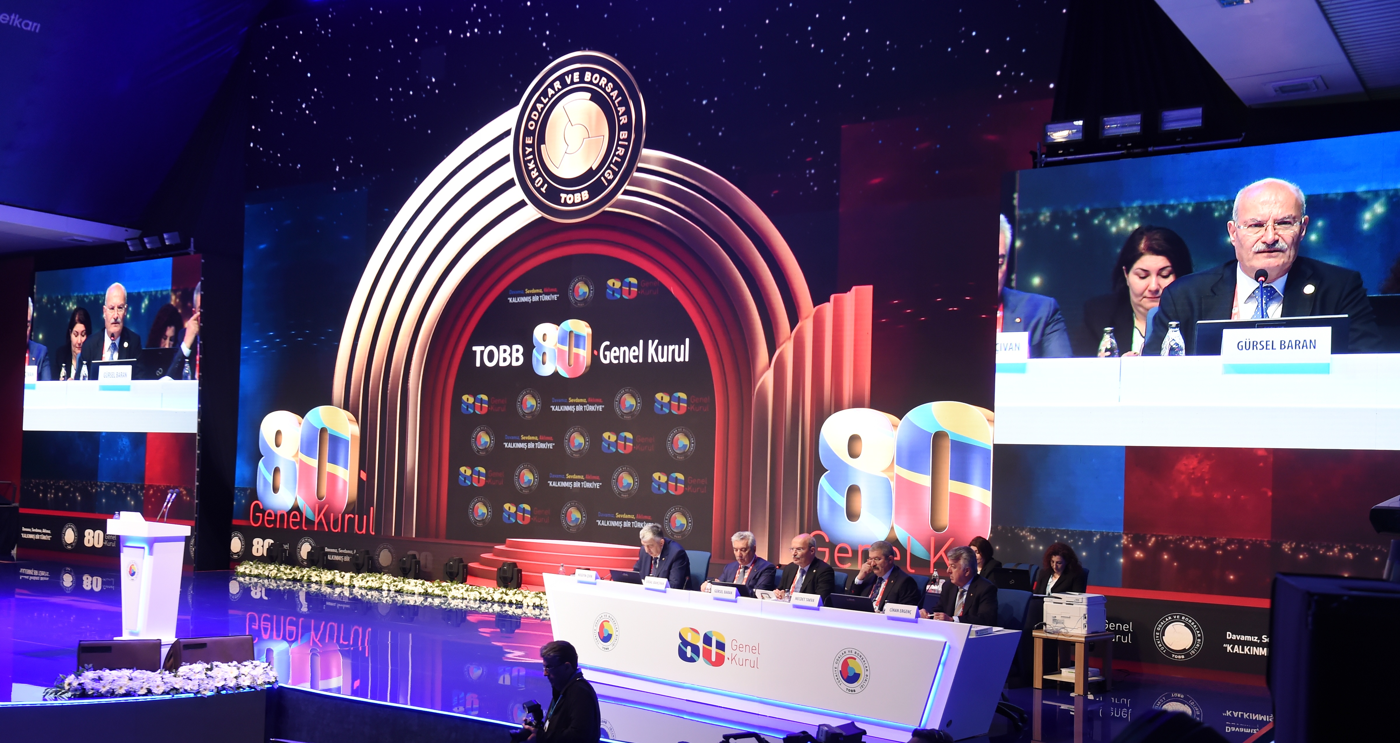 16 MAYIS 2024- Ankara Ticaret Odası (ATO) Yönetim Kurulu Başkanı Gürsel Baran, Türkiye Odalar ve Borsalar Birliği'nin (TOBB) 80. Genel Kurulu kapsamında gerçekleştirilen programa Genel Kurul Divan Başkanı sıfatıyla katıldı.