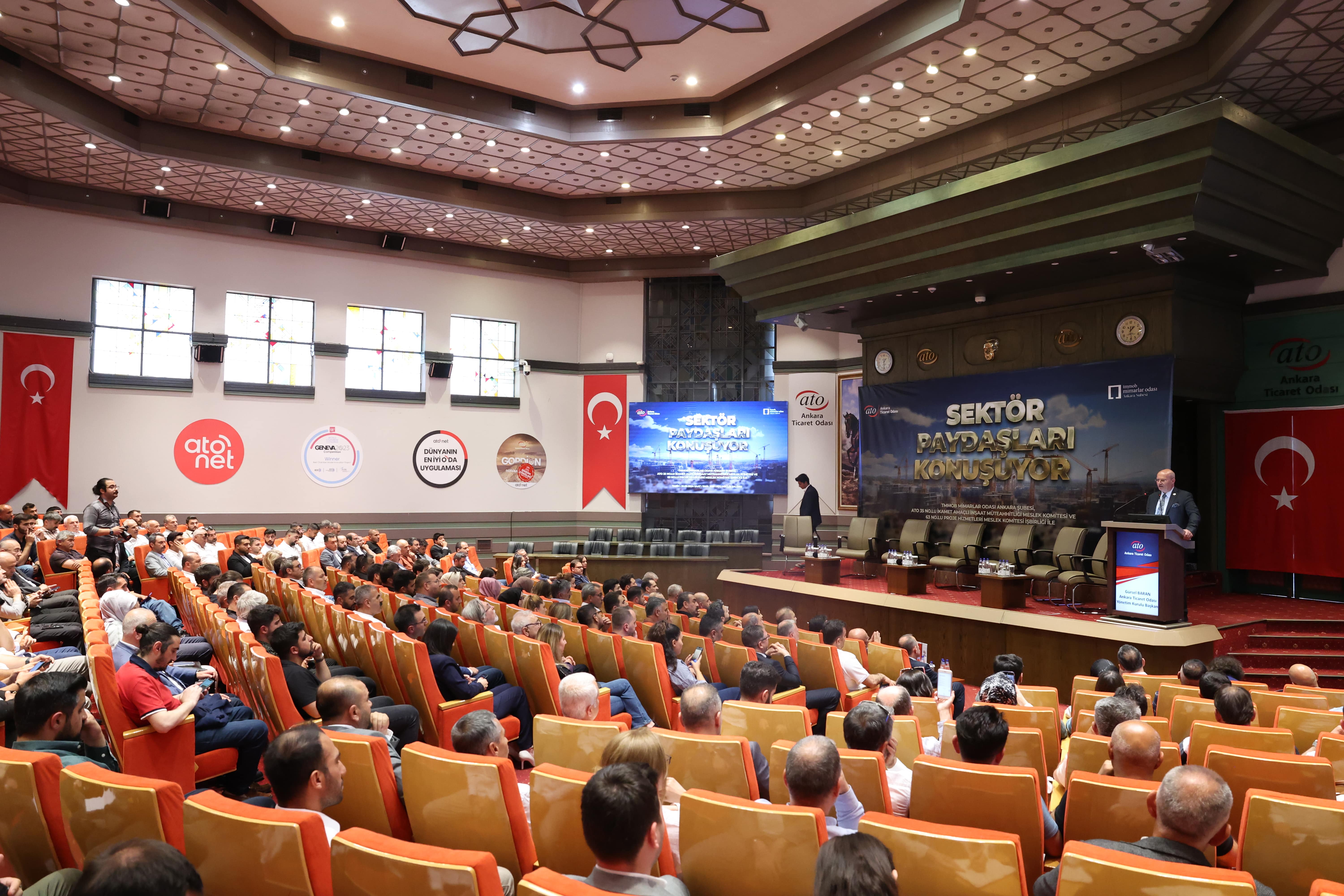 ATO'NUN İNŞAAT VE PROJE HİZMETLERİ MESLEK KOMİTELERİ'NİN, TMMOB MİMARLAR ODASI ANKARA ŞUBESİ İŞ BİRLİĞİYLE DÜZENLEDİĞİ "SEKTÖR PAYDAŞLARI KONUŞUYOR" PANELLER DİZİSİNİN İLKİ, BELEDİYELER, SİVİL TOPLUM KURULUŞLARI VE SEKTÖR TEMSİLCİLERİNİN YOĞUN KATILIMIYLA YAPILDI.