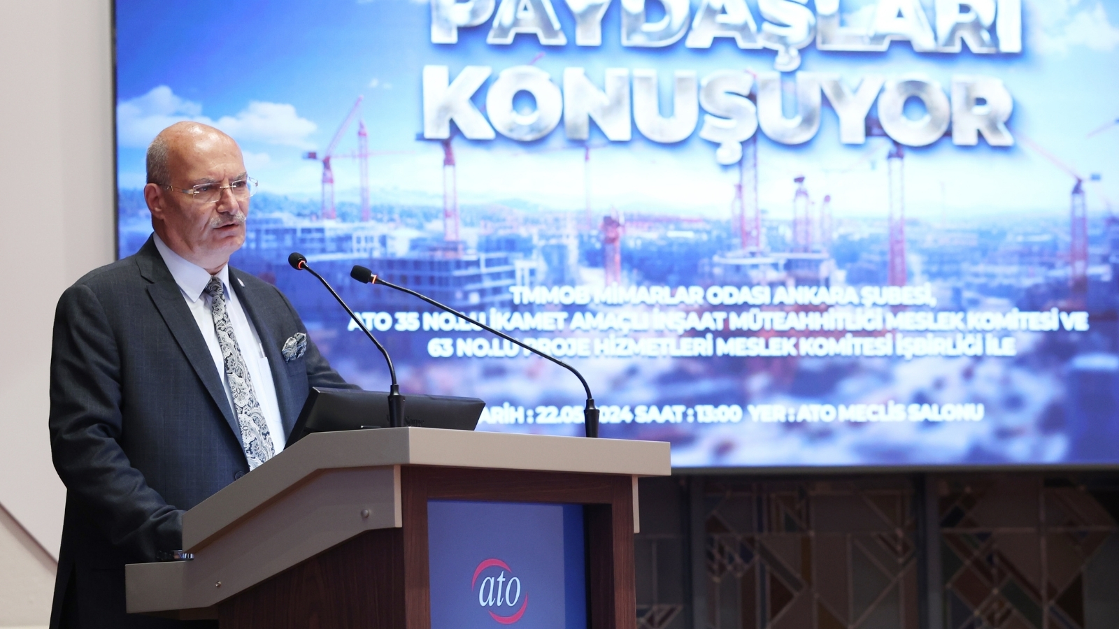 ATO'nun 35 No'lu İkamet Amaçlı İnşaat Müteahhitliği Meslek Komitesi Başkanı ve Türk Dünyası Mühendisler Mimarlar Birliği Yönetim Kurulu Üyesi Seyit Mertoğlu da açılışta yaptığı konuşmada, düzenledikleri bu panel sayesinde sektörün bütün taraflarının aynı masada, aynı ortamda konuşmaya başladığını dile getirdi. Mertoğlu, "Konuşmaya başlamak demek birçok şeyin artık çözüleceğinin ışığıdır. Bizim şu an sıkıntılarımız herhangi bir belediyede, herhangi bir mahallede yaşadığımız sıkıntılar değil. Biz şu an bu sıkıntıları çözersek 85 milyon nüfusumuzun sorununu çözmüş olacağız. Sektör açısından 300 milyonluk Türk nüfusunun bulunduğu bir coğrafyayı, potansiyeli konuşuyoruz. Dünyada iki tane müteahhit millet var. Çin ve Türkiye. Biz kendi içimizdeki bu olguları birer taş gibi yerine koyduğumuz zaman önümüzde bir sokak arası değil, bir otoban var" diye konuştu.