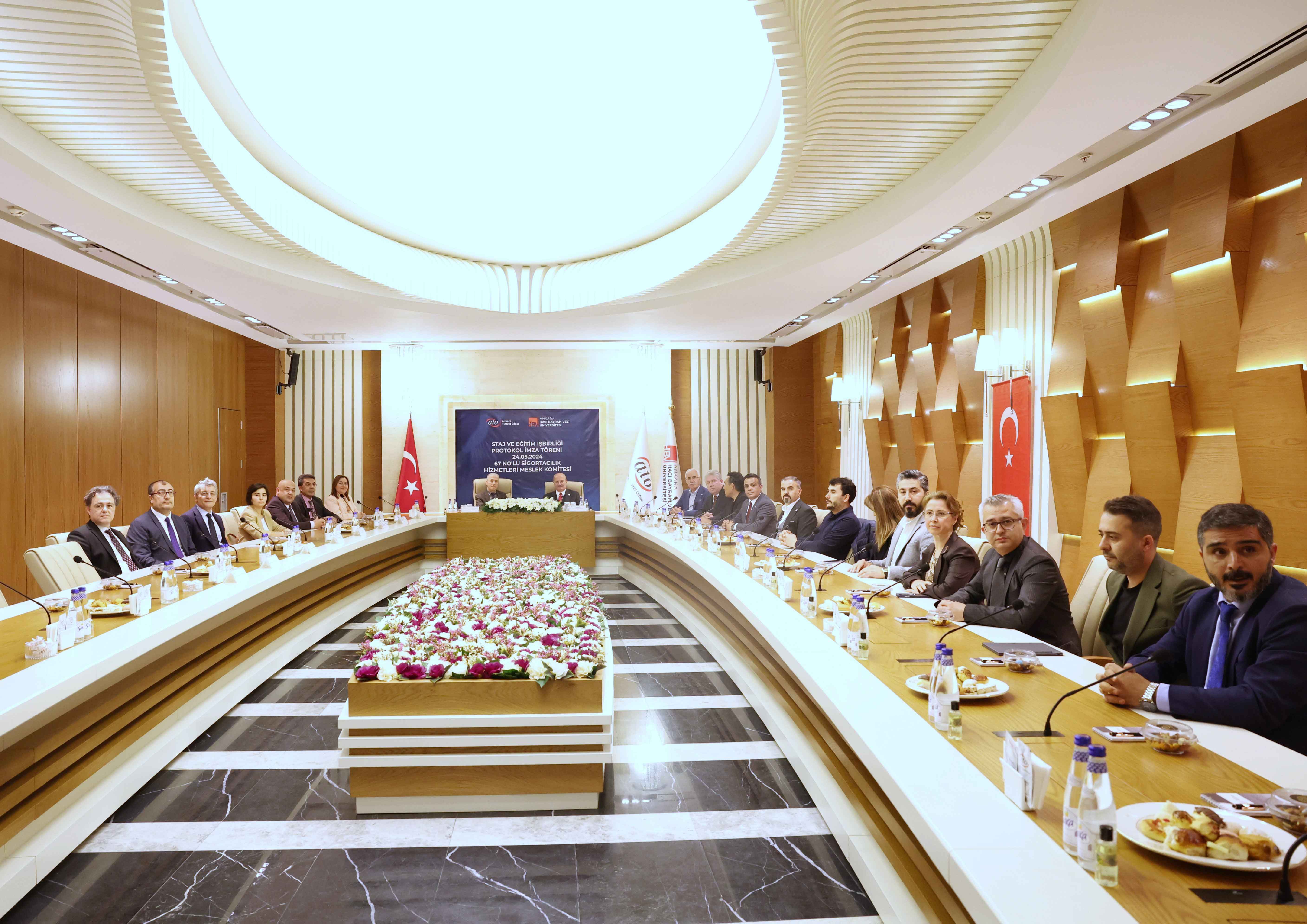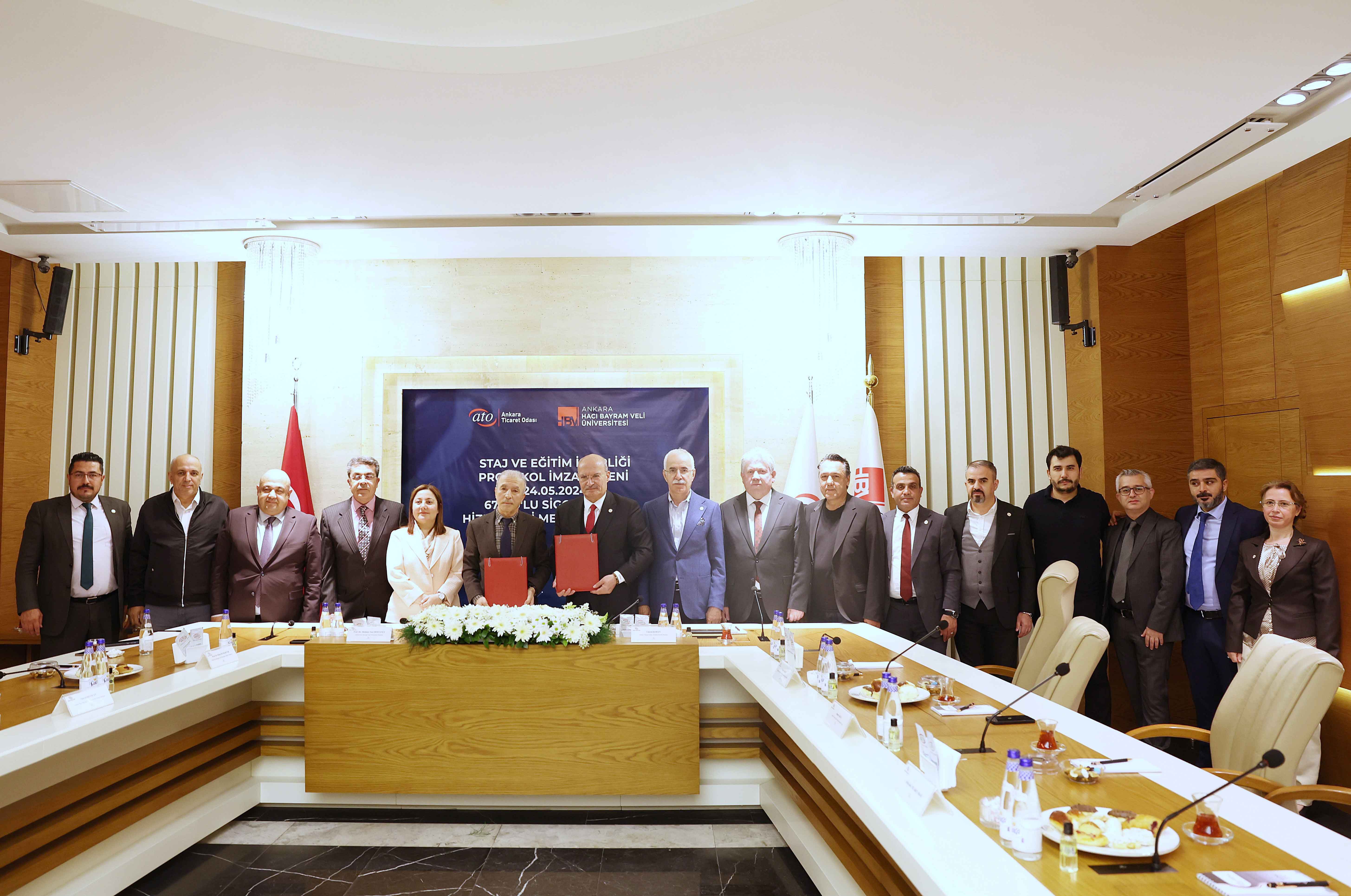 ATO 67 No'lu Sigortacılık Hizmetleri Meslek Komitesi ile Ankara Hacı Bayram Veli Üniversitesi Finansal Bilimler Fakültesi Sigortacılık Bölümü öncülüğünde gerçekleştirilen protokol; eğitim, staj, araştırma, organizasyon ve etkinliklerin gerçekleştirilmesi ve danışmanlık konularında iş birliği ile uzaktan veya yüz yüze tezsiz yüksek lisans ve özel eğitim programlarında Ankara Ticaret Odası üyesi firma yetkililerine kontenjan verilmesini kapsıyor.