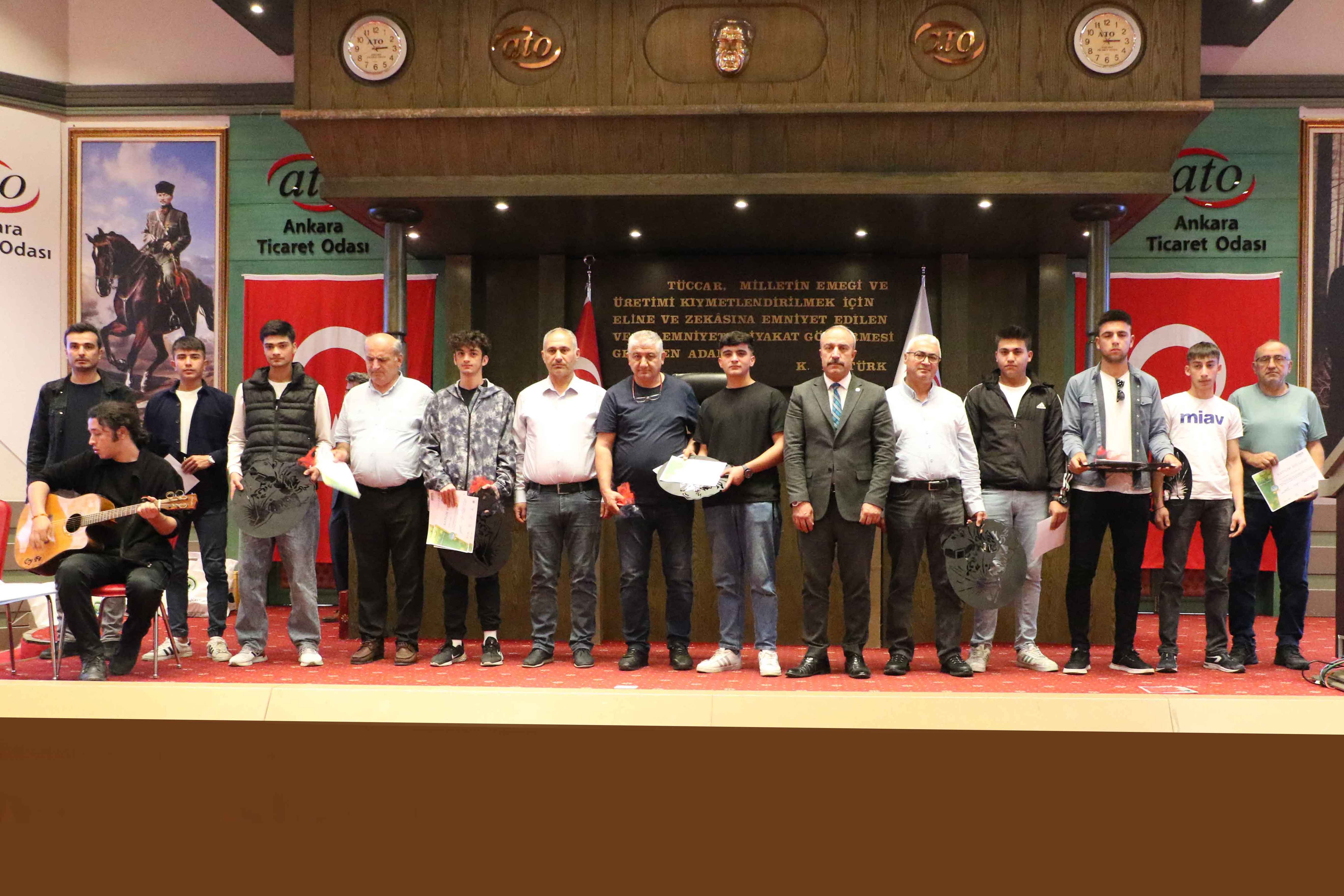 ATO Yönetim Kurulu Üyesi Ali İhsan Güçlü, Ankara İl Milli Eğitim Müdürlüğü Mesleki ve Teknik Eğitim Şube Müdürlüğü ile Ulus Mesleki ve Teknik Anadolu Lisesi'nin ATO ev sahipliğinde düzenlediği, "100. Yıl Ankara Kaynakçılık Beceri Yarışması Ödül Töreni"ne katıldı. Başkent'te kaynakçılık alanında eğitim veren 21 mesleki ve teknik lisenin katıldığı yarışmada dereceye giren öğrencilere ödülleri verildi. Yarışmada ilk üçe giren öğrencilere ise ATO tarafından kaynakçı seti hediye edildi.
