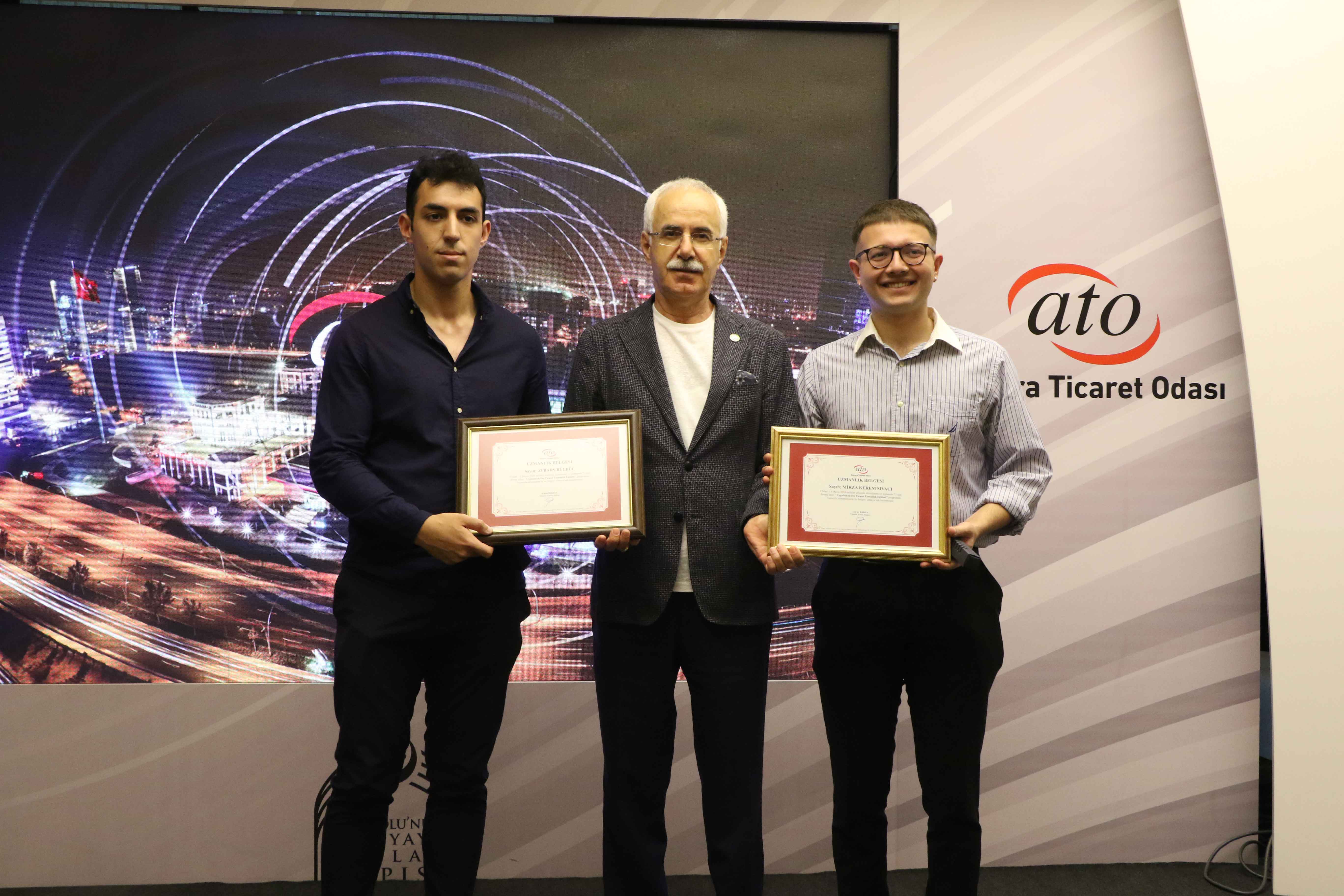ATO'NUN ÜNİVERSİTE ÖĞRENCİLERİNE YÖNELİK GERÇEKLEŞTİRDİĞİ "DIŞ TİCARET EĞİTİM PROGRAMLARI"NIN MEZUNLARINA SERTİFİKALARI VERİLDİ.