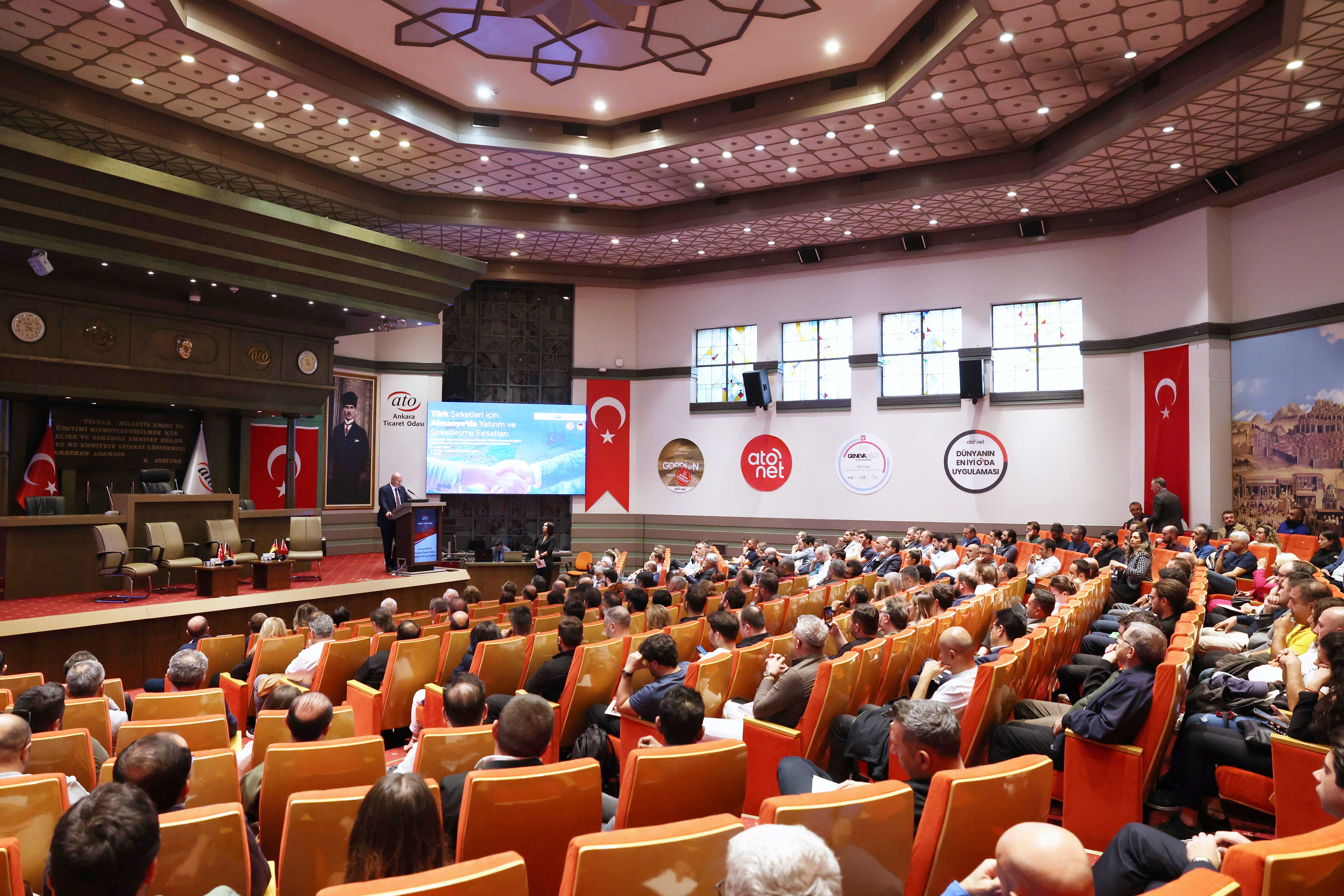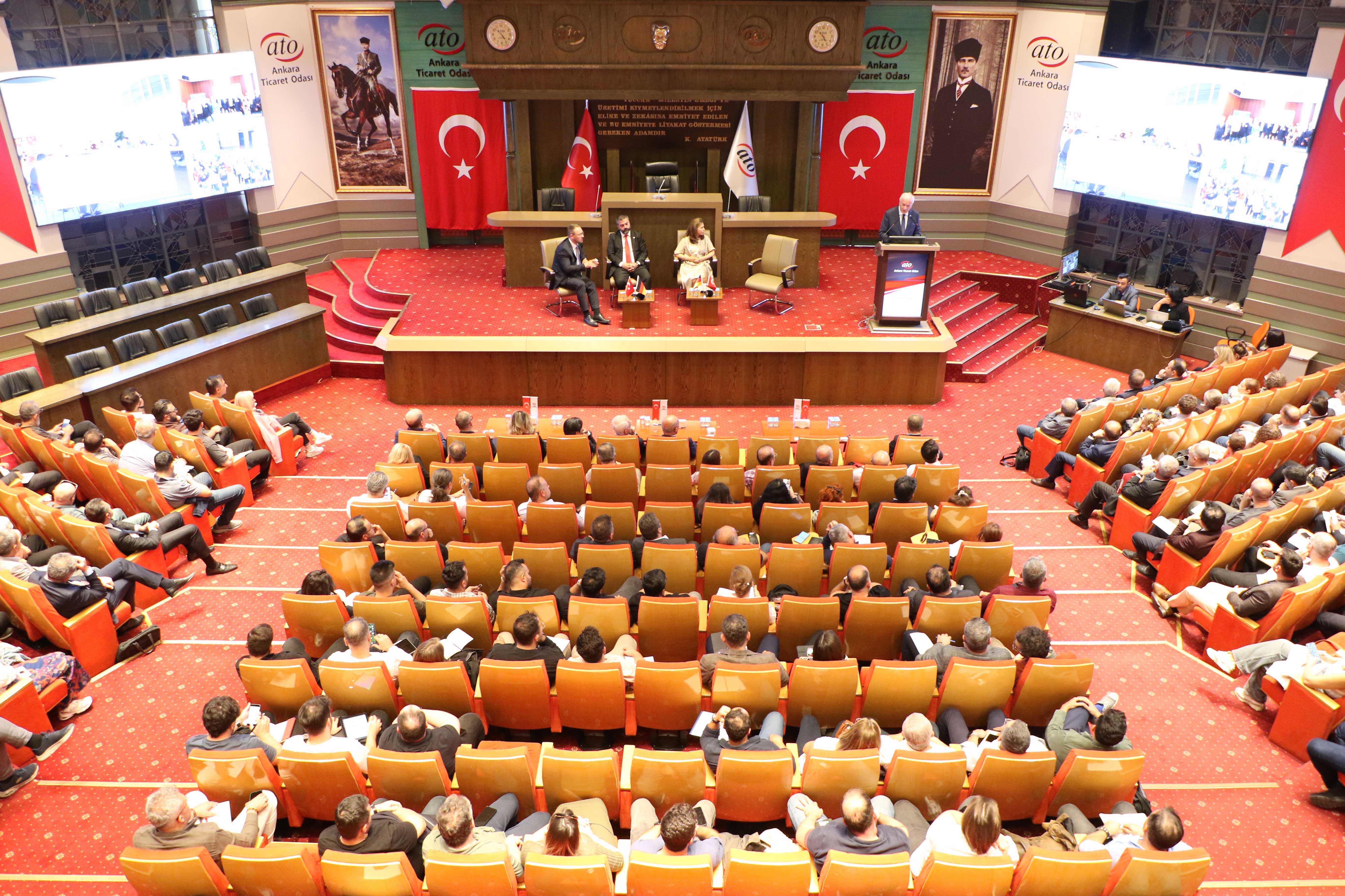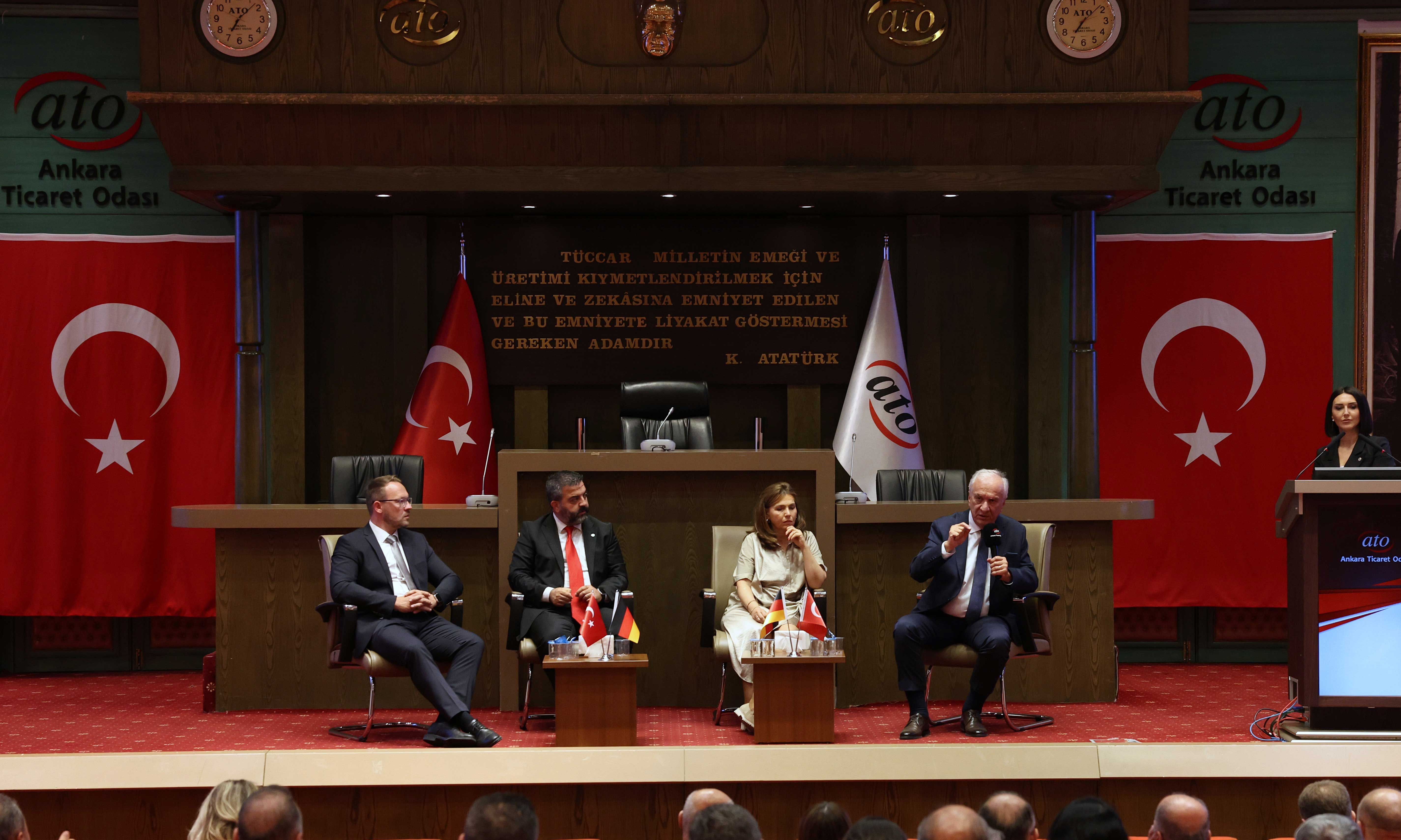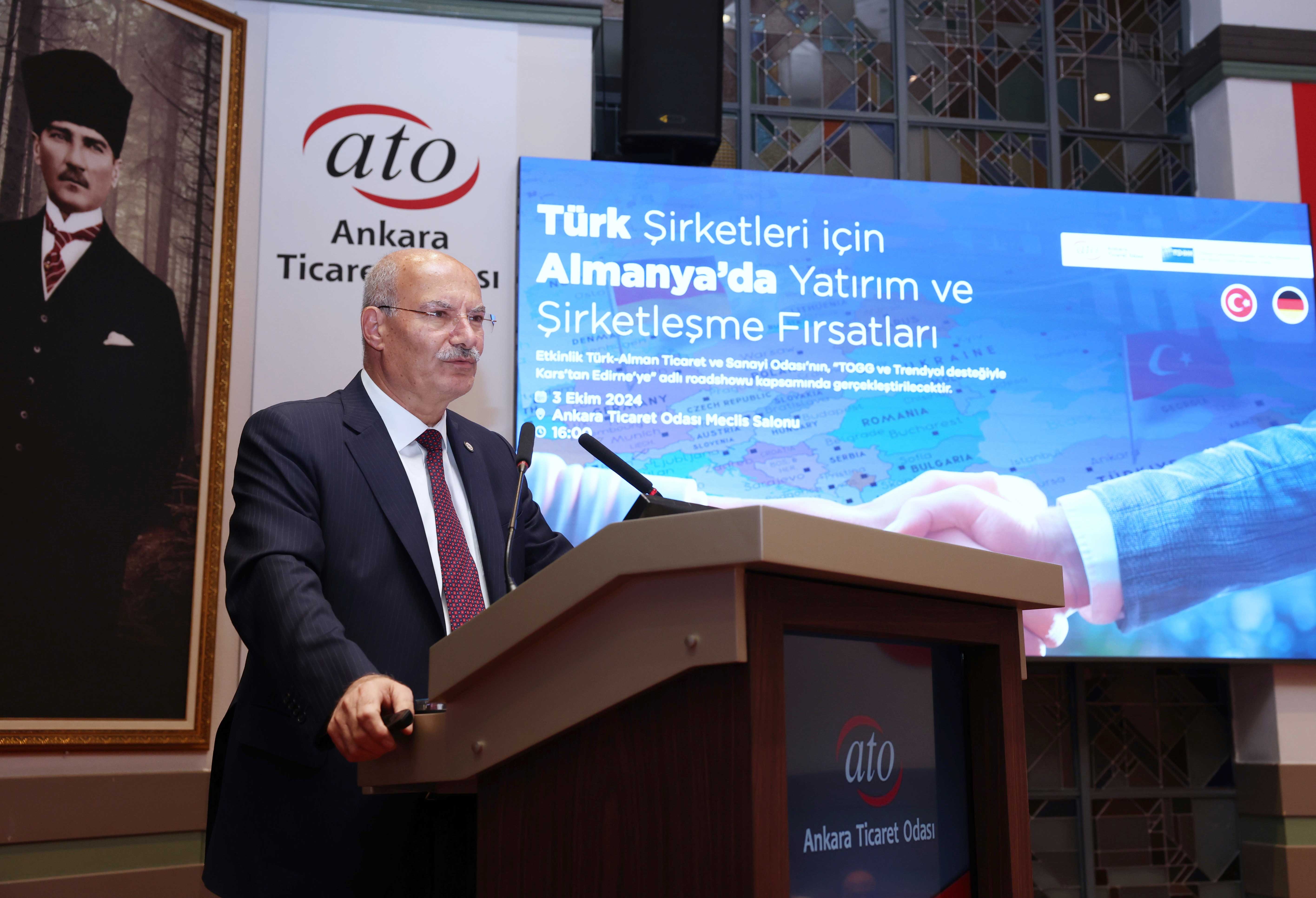 Türk Alman Ticaret ve Sanayi Odası'nın (TD IHK) "TOGG ve Trendyol desteğiyle Kars'tan Edirne'ye" adlı roadshowu kapsamında, Ankara Ticaret Odası işbirliğiyle gerçekleştirdiği, "Türk Şirketleri için Almanya'da Yatırım ve Şirketleşme Fırsatları" toplantısı, ATO Meclis Salonu'nda yapıldı.
