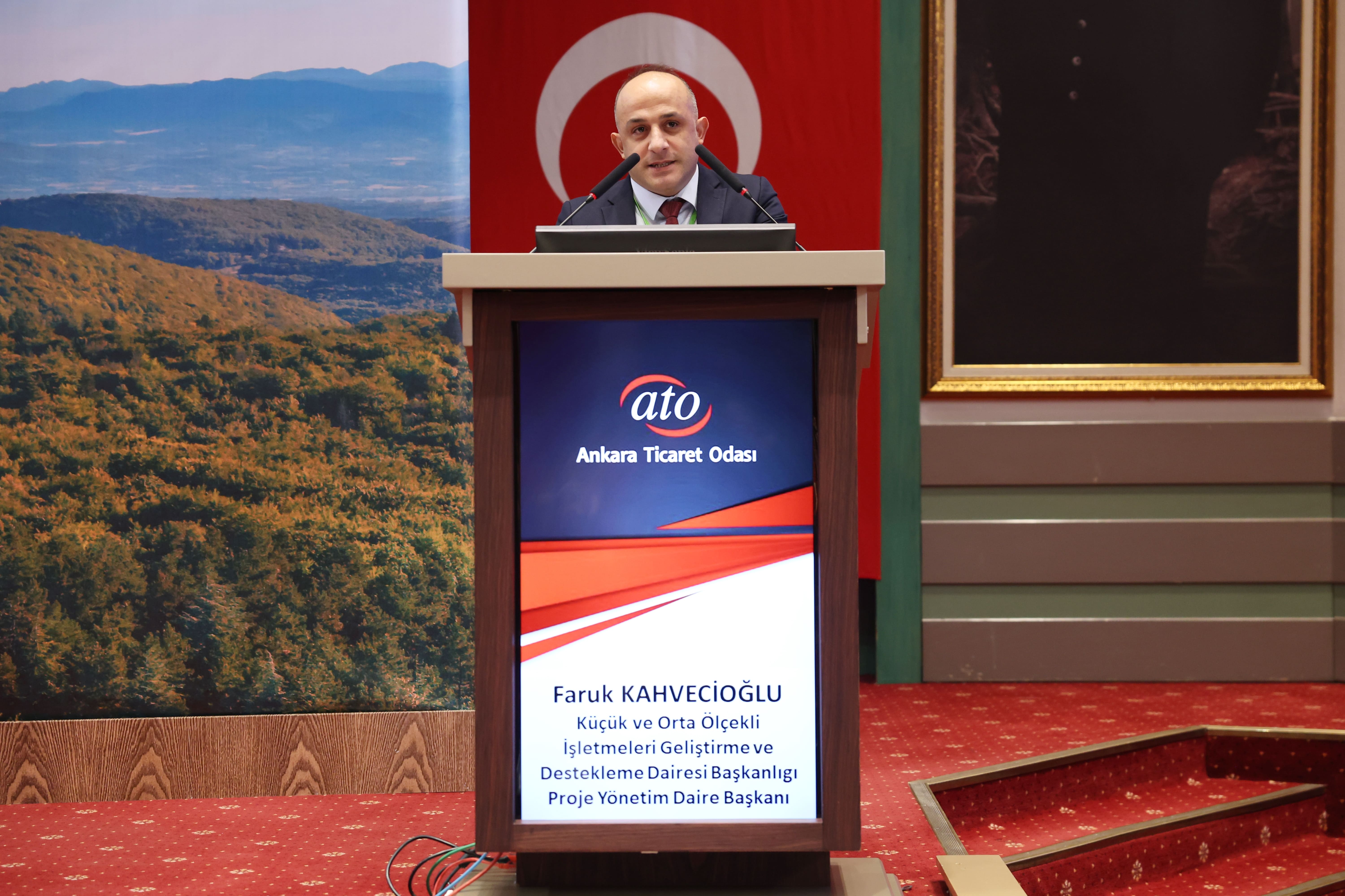 Küçük ve Orta Ölçekli İşletmeleri Geliştirme ve Destekleme İdaresi Başkanlığı (KOSGEB) Proje Yönetim Daire Başkanı Faruk Kahvecioğlu da konuşmasında, KOSGEB'in sürdürülebilirlik alanında yaptığı çalışmalar ile KOBİ'lere sağladığı destekler hakkında bilgi vererek, "KOBİ'ler ekonomimizin temel yapı taşlarından biridir ve toplam işletmelerimizin yüzde 99'unu oluşturmaktadır. Dolayısıyla KOBİ'lerin çevresel sürdürülebilirlik konusunda attığı adımlar, hem ekonomik kalkınmamıza, hem de doğal kaynaklarımızın korunmasına önemli katkı sağlayacaktır" dedi.