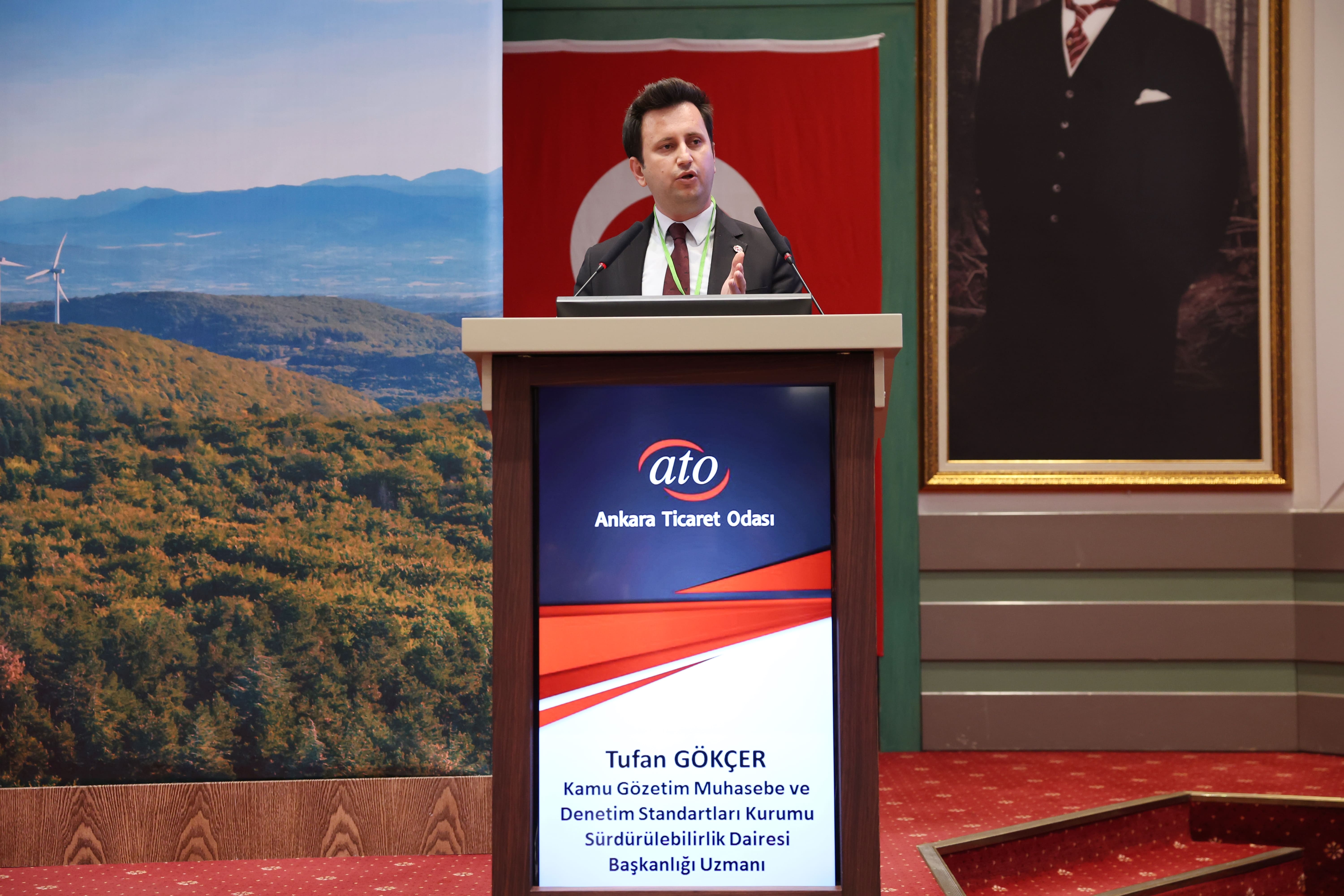 Kamu Gözetimi Muhasebe ve Denetim Standartları Kurumu (KGK) Sürdürülebilirlik Dairesi Başkanlığı Uzmanı Tufan Gökçer de yaptığı konuşmada, KGK'nın yapısı ve çalışmaları hakkında bilgi vererek, yaşanan süreç ile birlikte, finansal raporlamanın yanı sıra, sürdürülebilirlik raporlamalarının da hayatımıza girdiğini söyledi. Gökçer, bu alanda farkındalığı arttırmaya ve bilgilendirmeye yönelik toplantıların önemine dikkat çekti.