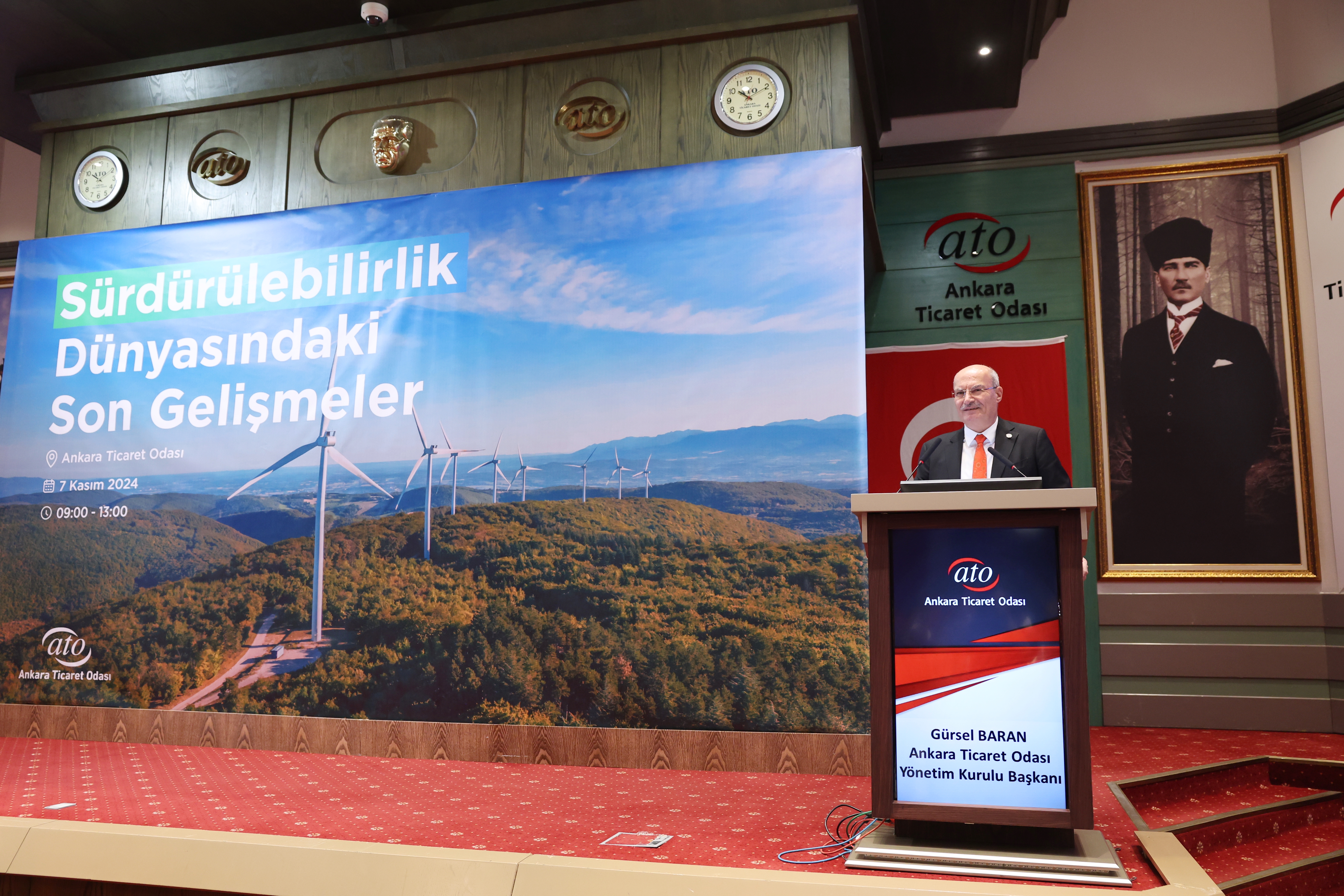 ATO Başkanı Gürsel Baran, sanayileşme sürecinin kazandırdığı artıların yanında, insanlık için yeni sorunları beraberinde getirdiğini belirterek, "Bugün tüm dünyanın yaşadığı sorunların başında iklim krizi geliyor. Sera gazının atmosferdeki miktarının artması, küresel ısınmaya neden oldu. Yaşanan süreç, tarımdan sanayiye, turizmden ticarete, eğitimden sağlığa her alanı etkiliyor. İnsanlık olarak kritik bir eşiğe gelmiş durumdayız" dedi.