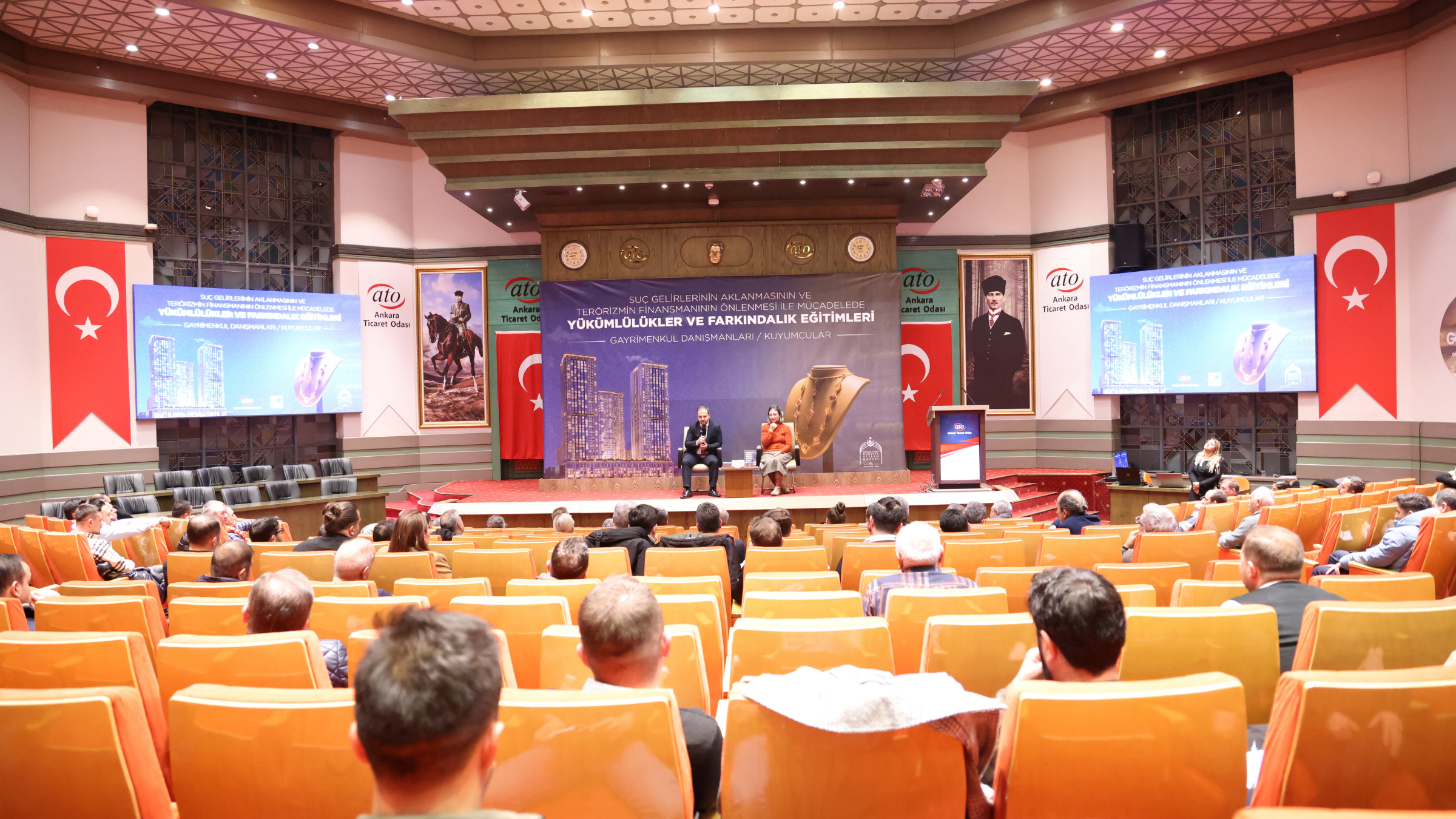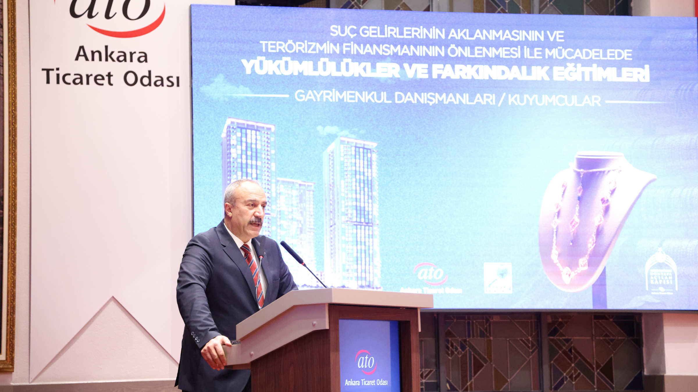 29 Kasım 2024-Ankara Ticaret Odası ile Mali Suçları Araştırma Kurulu Başkanlığı (MASAK) iş birliğinde düzenlenen "Suç Gelirlerinin Aklanmasının ve Terörizmin Finansmanının Önlenmesi ile Mücadelede Kıymetli Maden, Taş veya Mücevher Alım Satımı Yapanlar ile Bu İşlemlere Aracılık Eden Yükümlülere Yönelik Yükümlülükler ve Farkındalık Eğitimi" ATO Meclis Salonu'nda gerçekleşti.