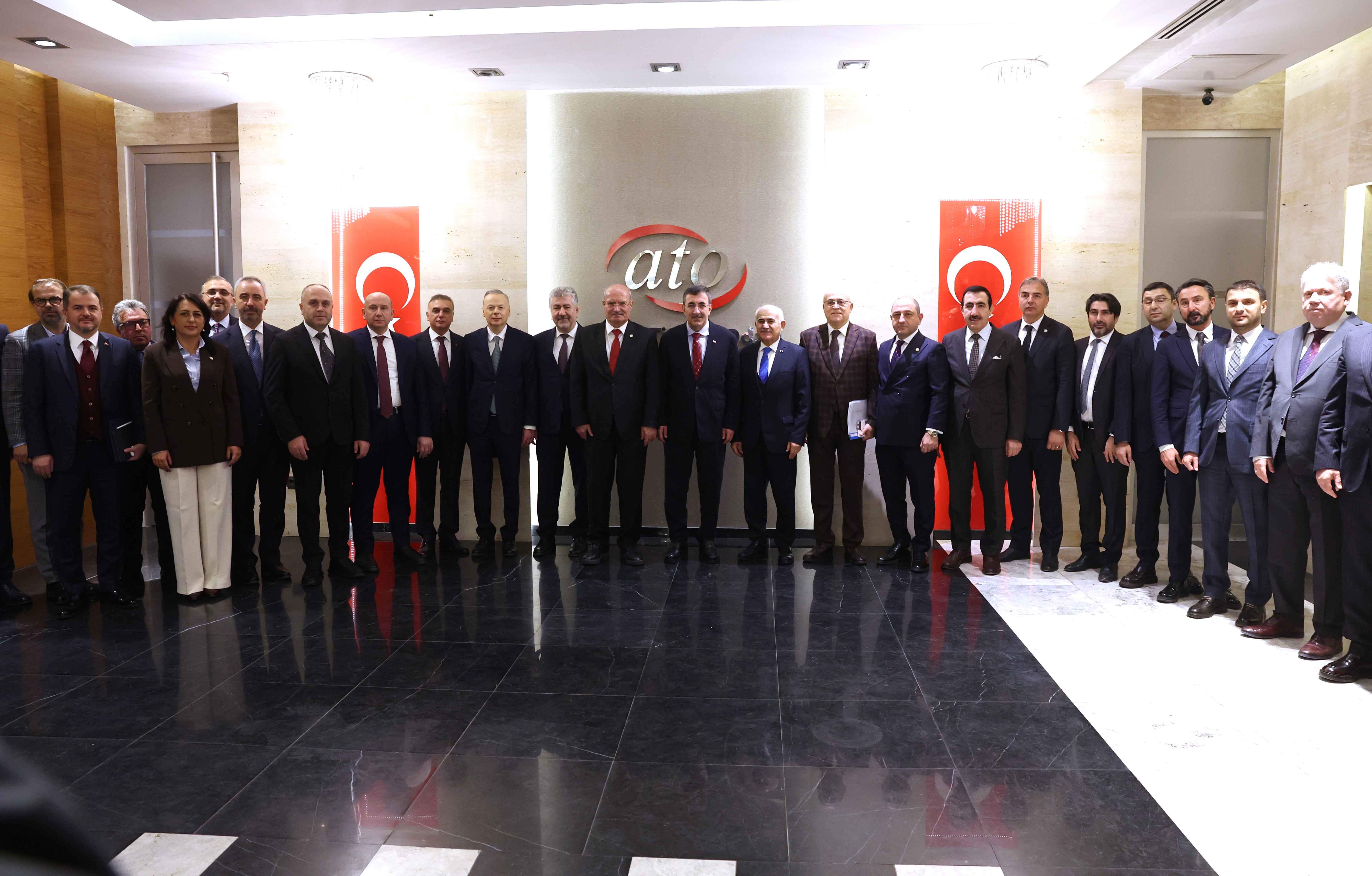 12 ARALIK 2024-Ankara Ticaret Odası (ATO) Yönetim Kurulu Başkanı Gürsel Baran, ATO Meclis Başkanı Mustafa Deryal, ATO Yönetim Kurulu ve Meclis Üyeleri ile birlikte, Cumhurbaşkanı Yardımcısı Dr. Cevdet Yılmaz'ı konuk ederek, ATO üyelerinin talep, sorun, görüş ve önerilerinin aktarıldığı bir toplantı gerçekleştirdi.
