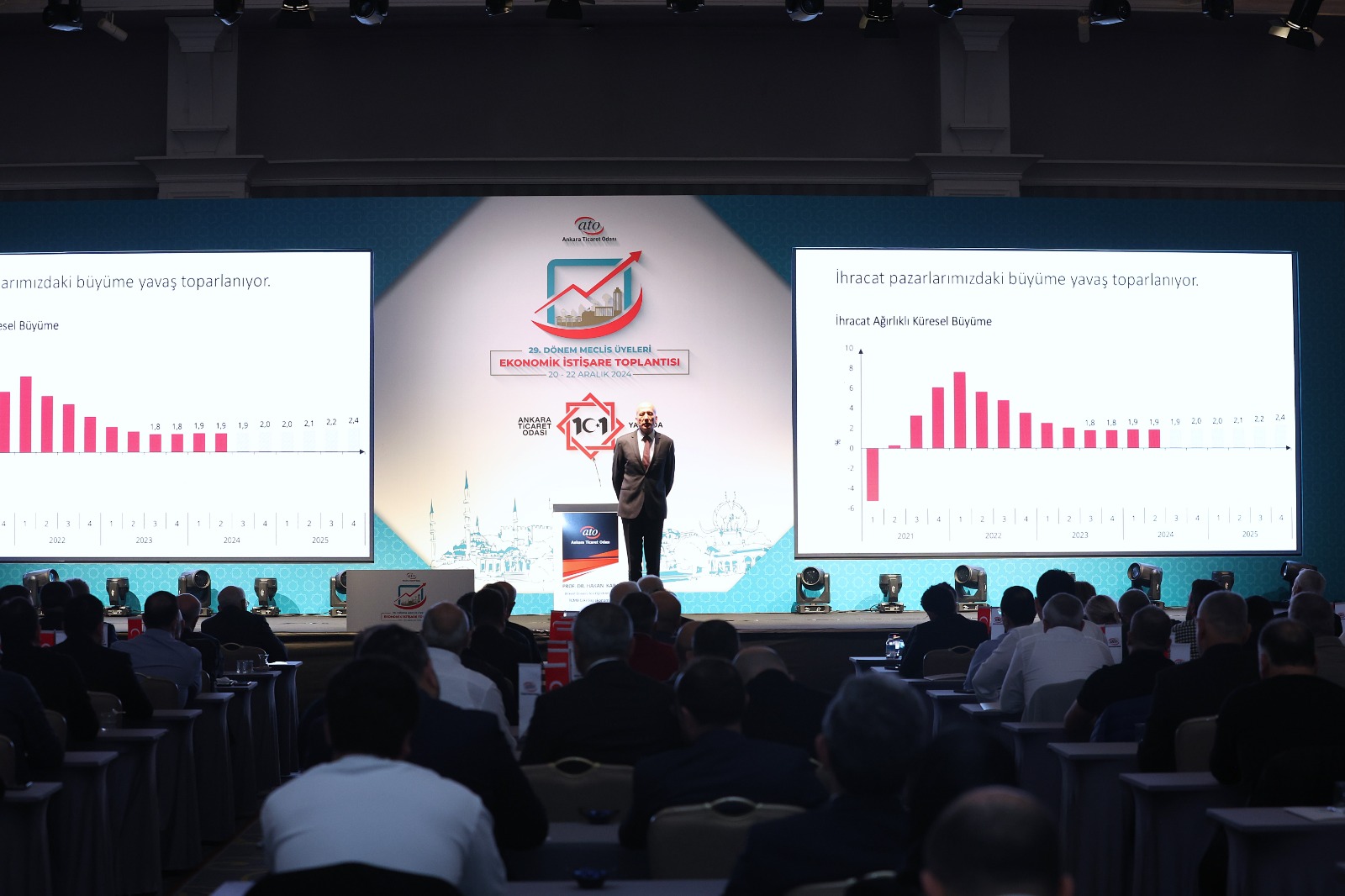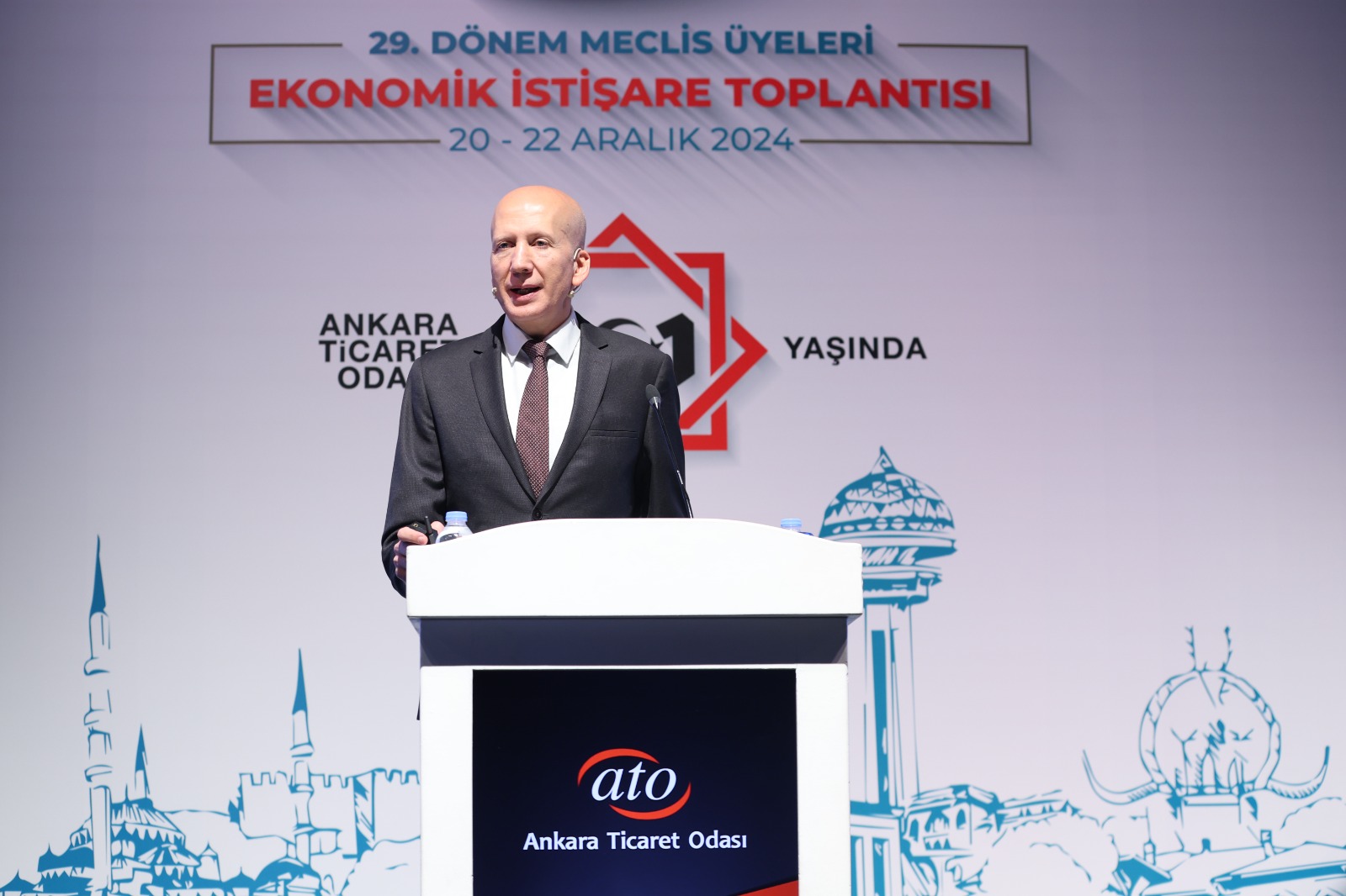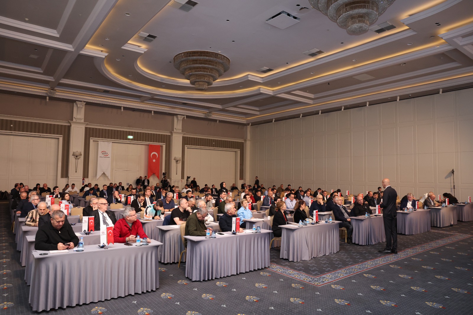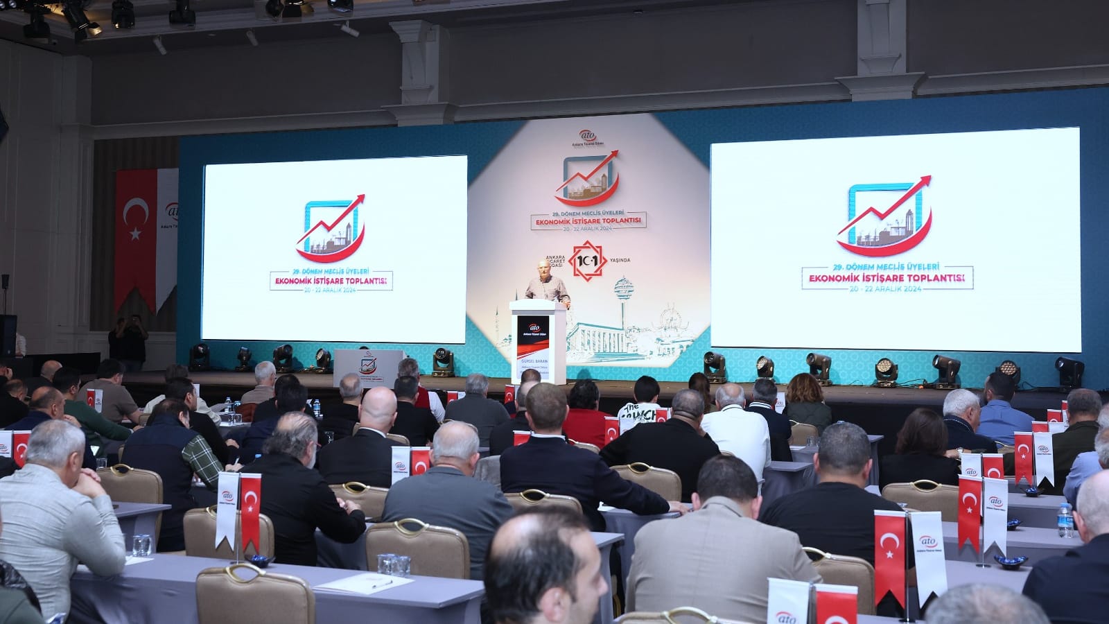 23 ARALIK 2024- Ankara Ticaret Odası'nın (ATO), Türkiye ve dünya ekonomisindeki gelişmeleri değerlendirmek, gelecek perspektifi oluşturmak ve sektörel konuları istişare etmek amacıyla gerçekleştirdiği "29. Dönem Meclis Üyeleri Ekonomik İstişare Toplantısı" ATO Yönetim Kurulu Başkanı Gürsel Baran ve Meclis Başkanı Mustafa Deryal'in ev sahipliğinde Antalya'da yapıldı.