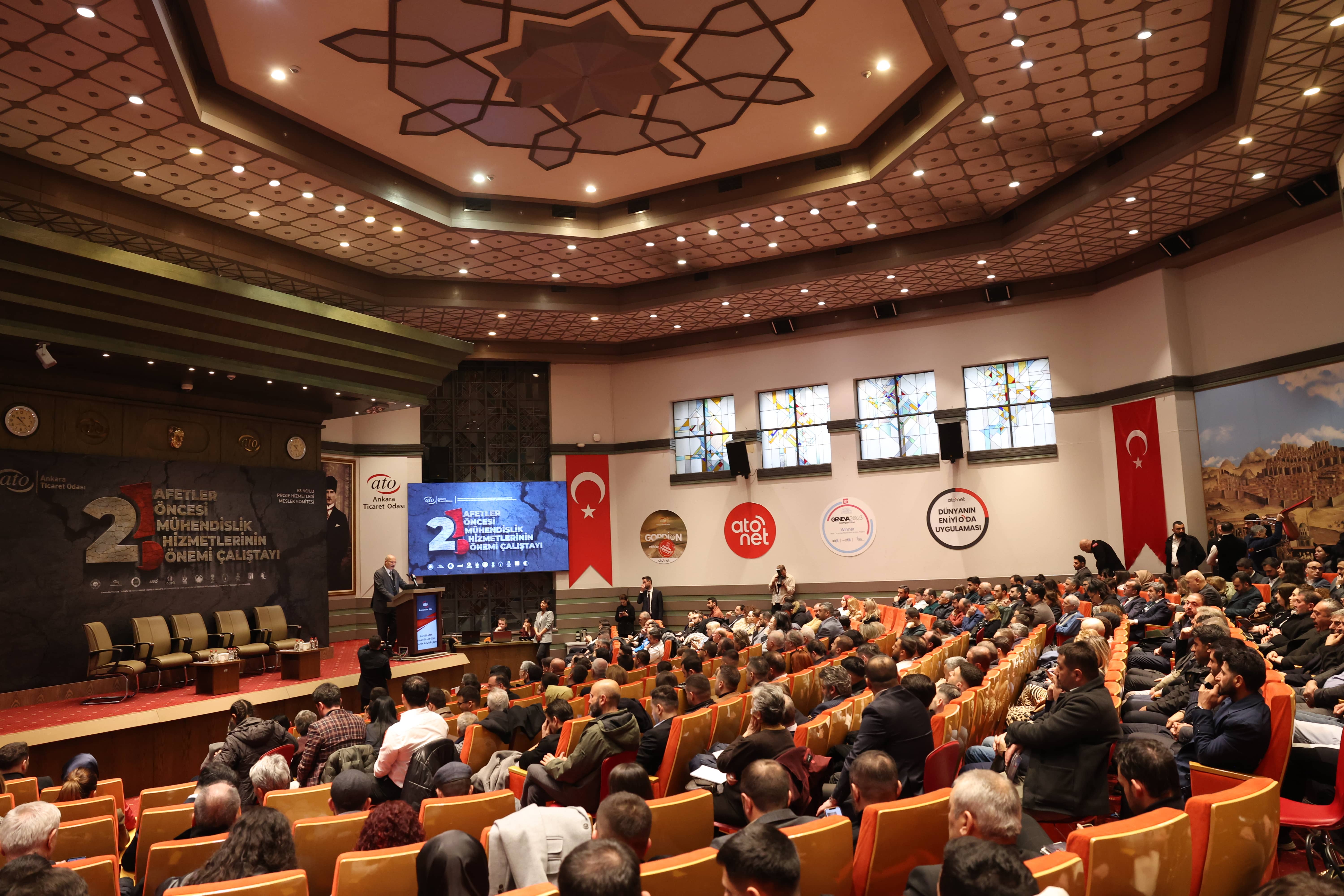 Ankara Ticaret Odası 63 No'lu Proje Hizmetleri Meslek Komitesi'nin, afetlere karşı daha dirençli yapılar oluşturulması ve mühendislik hizmetlerinin hayati önemi konusunda farkındalık yaratmak amacıyla Yapı Denetim ve Deprem Mühendisliği Derneği ile birlikte gerçekleştirdiği "Afetler Öncesi Mühendislik Hizmetlerinin Önemi Çalıştayı"nın ikincisi ATO Meclis Salonu'nda yapıldı.
