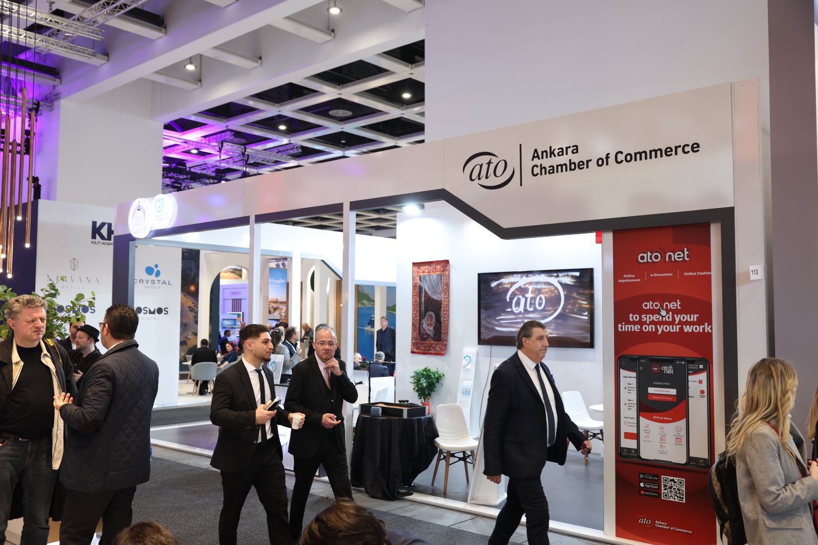 ATO Başkanı Gürsel Baran ile ATO Heyeti Fuar'da, Antalya Büyükşehir Belediye Başkanı Muhittin Böcek, TÜRSAB Başkanı Firuz Bağlıkaya, Sabah Gazetesi Yazarı Yavuz Donat, Oda-Borsa Başkanları, AK Parti MKYK Üyesi, İş İnsanı Erkan Güral, ATO Üyeleri de olan Anadolu Turizm İşletmecileri Derneği (ATİD) Yönetim Kurulu Başkanı Birol Akman, ATİD Koordinatörü Garip Uysal ve TÜRSAB Üyesi Muhammet Sarıtaş ile de bir araya geldi.
