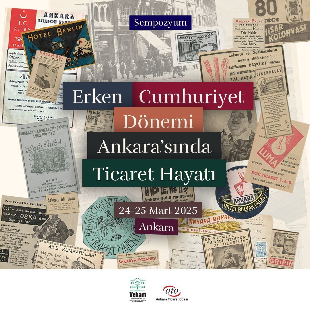 "Erken Cumhuriyet Dönemi Ankarasında Ticaret Hayatı" sempozyumu, Koç Üniversitesi Vehbi Koç Ankara Araştırmaları Uygulama ve Araştırma Merkezi (VEKAM) tarafından, Ankara Ticaret Odası ev sahipliğinde gerçekleştirilecektir.