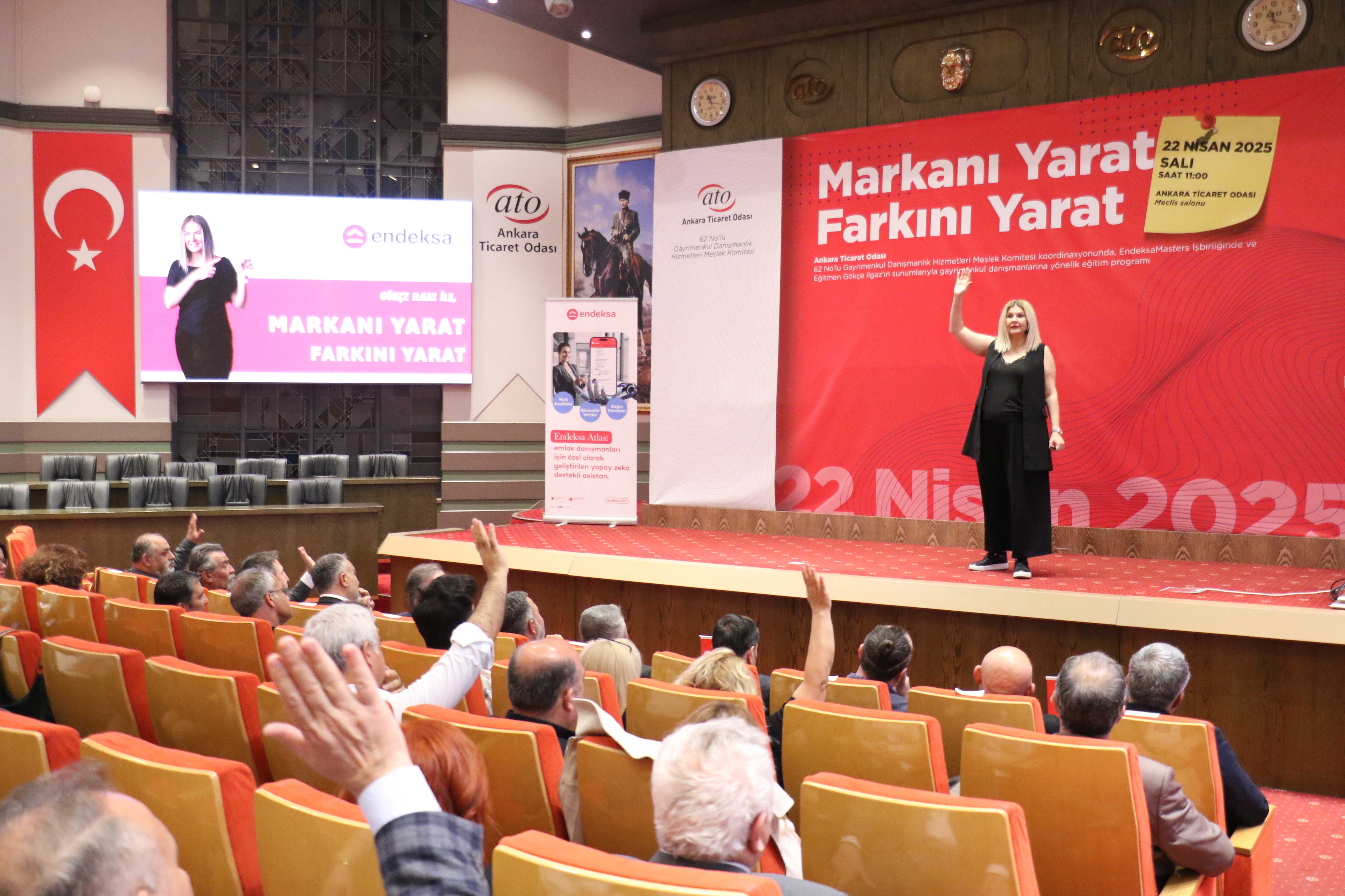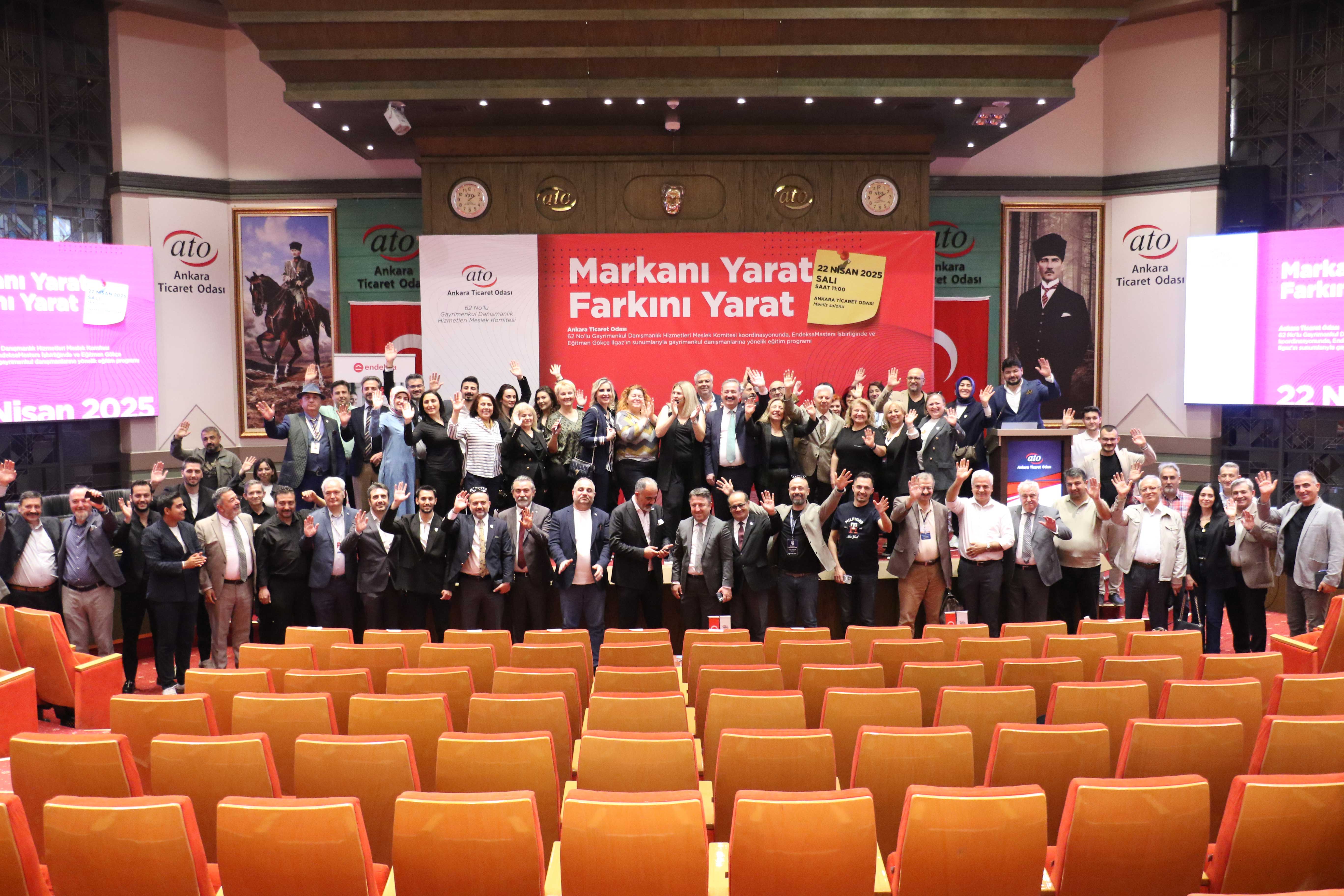 22 Nisan 2025-Ankara Ticaret Odası'nın (ATO) 62 No'lu Gayrimenkul Danışmanlık Hizmetleri Meslek Komitesi'nin, Endeksa Masters işbirliğinde düzenlediği "Markanı Yarat Farkını Yarat" konulu eğitim programı ATO Meclis Salonu'nda gerçekleşti.