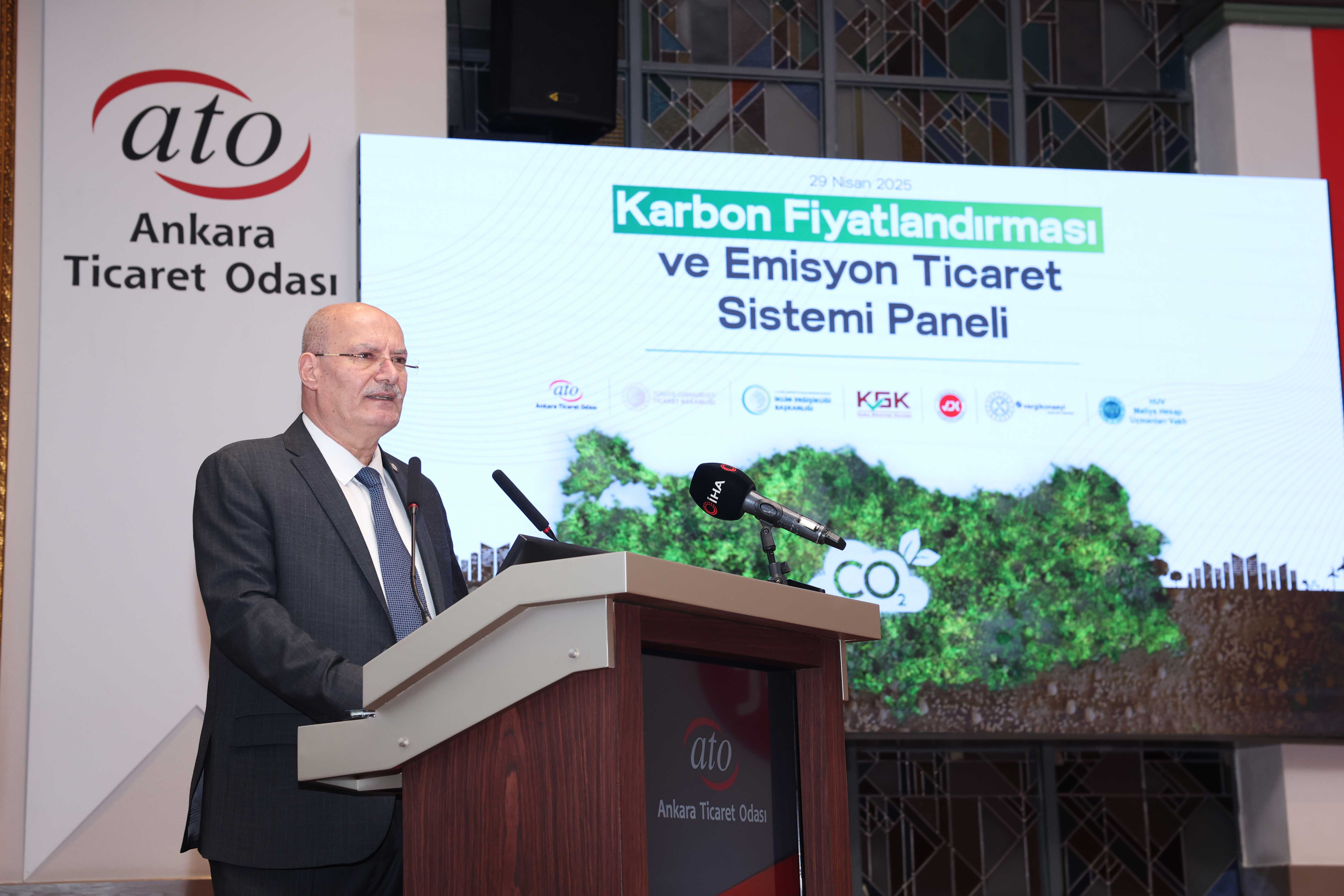 30 Nisan 2025 - Ankara Ticaret Odası (ATO) Yönetim Kurulu Başkanı Gürsel Baran, karbon fiyatlandırma ve emisyon ticaret sistemi gibi mekanizmaların uygulanmasının KOBİ'lere yük getirmesi ile üretim kapasitesinde daralma, rekabet gücünde azalma ve istihdamda gerileme gibi olumsuz sonuçlar ortaya çıkabileceğini kaydederek, "Çevresel hedeflere ulaşırken ekonomik istikrar da gözetilmeli" dedi.