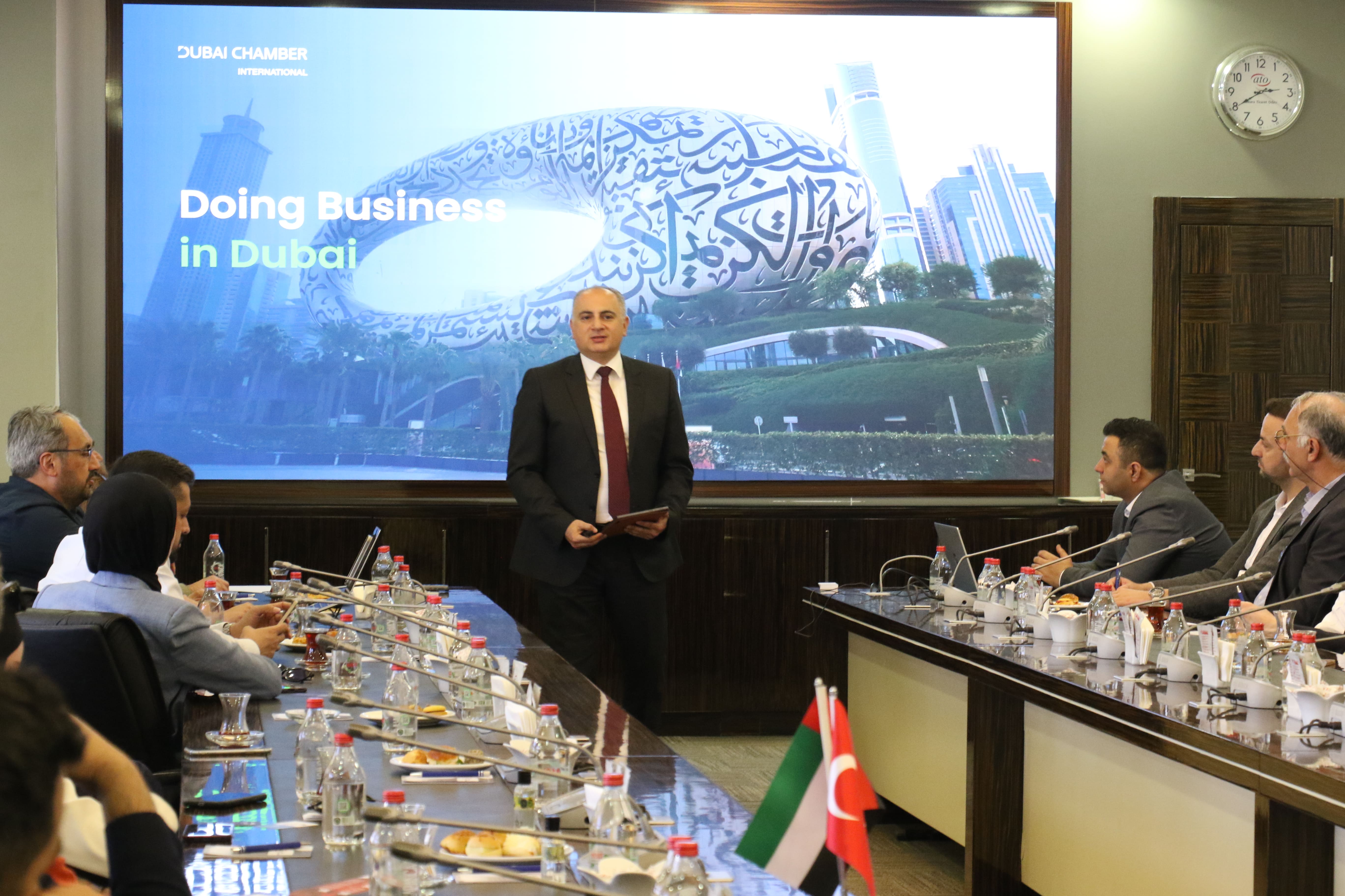 ATO Genel Sekreter Yardımcısı Abdurrahman Karabudak, ATO Yönetim Kurulu Toplantı Salonu'nda gerçekleşen toplantının açılışında bir konuşma yaparak, Türkiye ile Birleşik Arap Emirlikleri'nin yarım asırdır süren güçlü ilişkileri olduğunu, Dubai'de 45 bini aşkın Türk vatandaşının yaşadığını kaydetti. Son yıllarda imzalanan 50'yi aşan anlaşma ile iki ülke arasındaki ilişkilerin stratejik ortaklık seviyesine taşındığını anlatan Karabudak, "Ülkelerimiz arasında siyasi, askeri, savunma sanayi, sosyal alanlarda önemli gelişmeler kaydedildi. Kapsamlı Ekonomik Ortaklık Anlaşması'yla da ekonomik ve ticari iş birliği, yeni bir safhaya taşındı. Mal ve hizmet ticaretinin önündeki engelleri kaldırmayı temel alan bu anlaşma, KOBİ'ler dâhil olmak üzere yatırımcı ve girişimcilerin faaliyetlerini kolaylaştırmayı da hedefliyor" dedi.