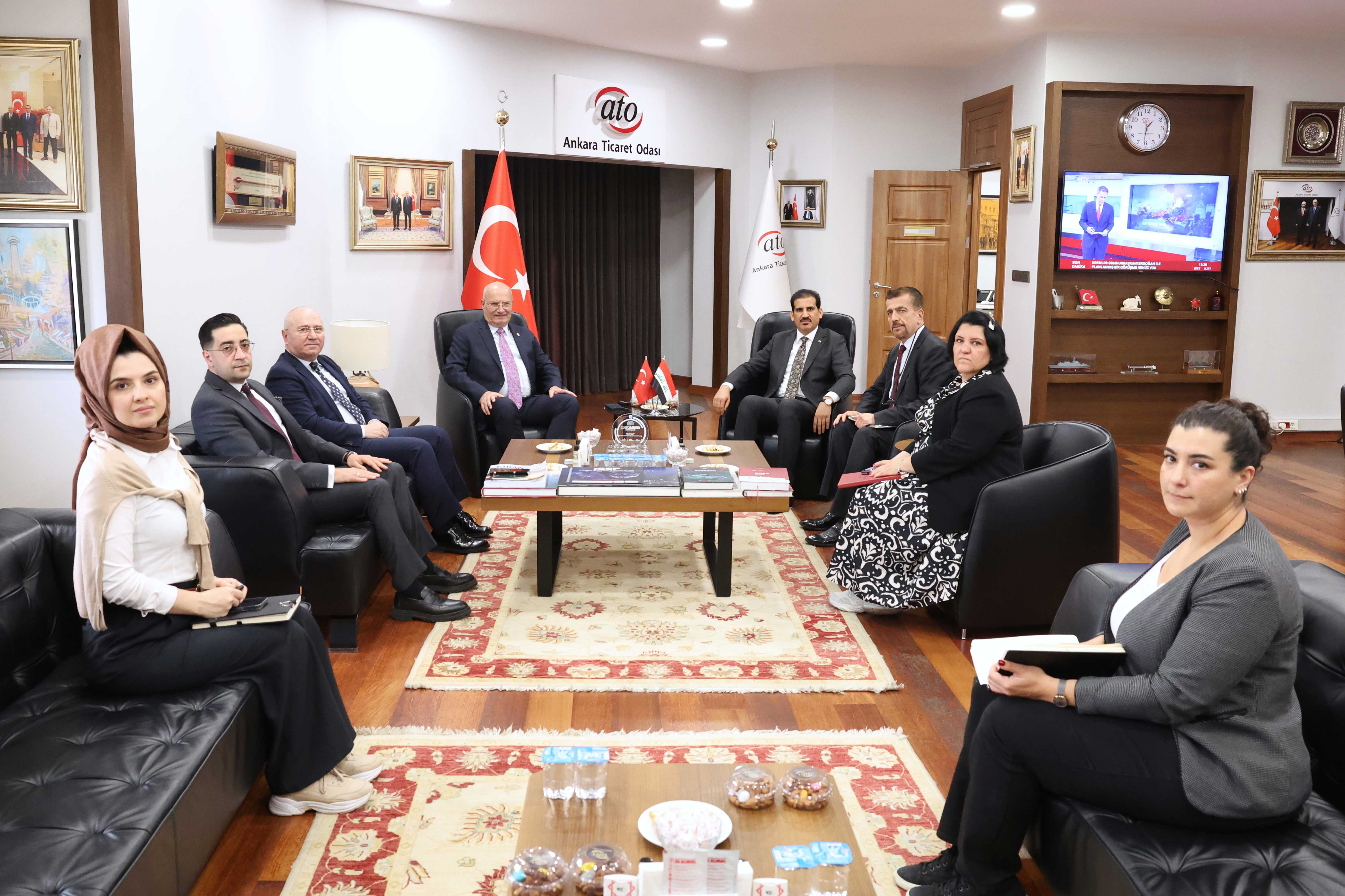 ATO Başkanı Gürsel Baran da ziyarette yaptığı konuşmada, Irak ile Türkiye'nin tarihsel, kültürel ve coğrafi bağlarla bağlı iki ülke olduğunu, iki ülke arasındaki ilişkilerin dostluk temelinde geliştiğini söyledi. Irak'ın siyasi birliği ve toprak bütünlüğünün korunması, huzur ve istikrarının bölgesel istikrar ve kalkınma açısından önemine dikkat çeken Baran, iki ülke arasındaki dış ticaretin 13 milyar doları Türkiye'nin ihracatı olmak üzere 15 milyar olarak gerçekleştiğini ve bu rakamın iki ülke arasındaki yakınlığı yansıtmadığını kaydetti. Baran, "Ülkelerimiz arasındaki ticaret hacmi için hükümetlerimiz 30 milyar dolarlık bir hedef ortaya koydu. Biz dış ticaret hacmimizi bu hedefe yükseltmek için her türlü çalışmayı yapmaya hazırız. Ankara olarak savunma, medikal sanayi, mobilya ve tekstil üretiminde öncü bir şehir, önemli bir sağlık turizmi merkeziyiz. İki komşu ülke olarak karşılıklı yatırımlarımızı arttırabilir ve ticari ilişkilerimizi geliştirebiliriz" dedi.