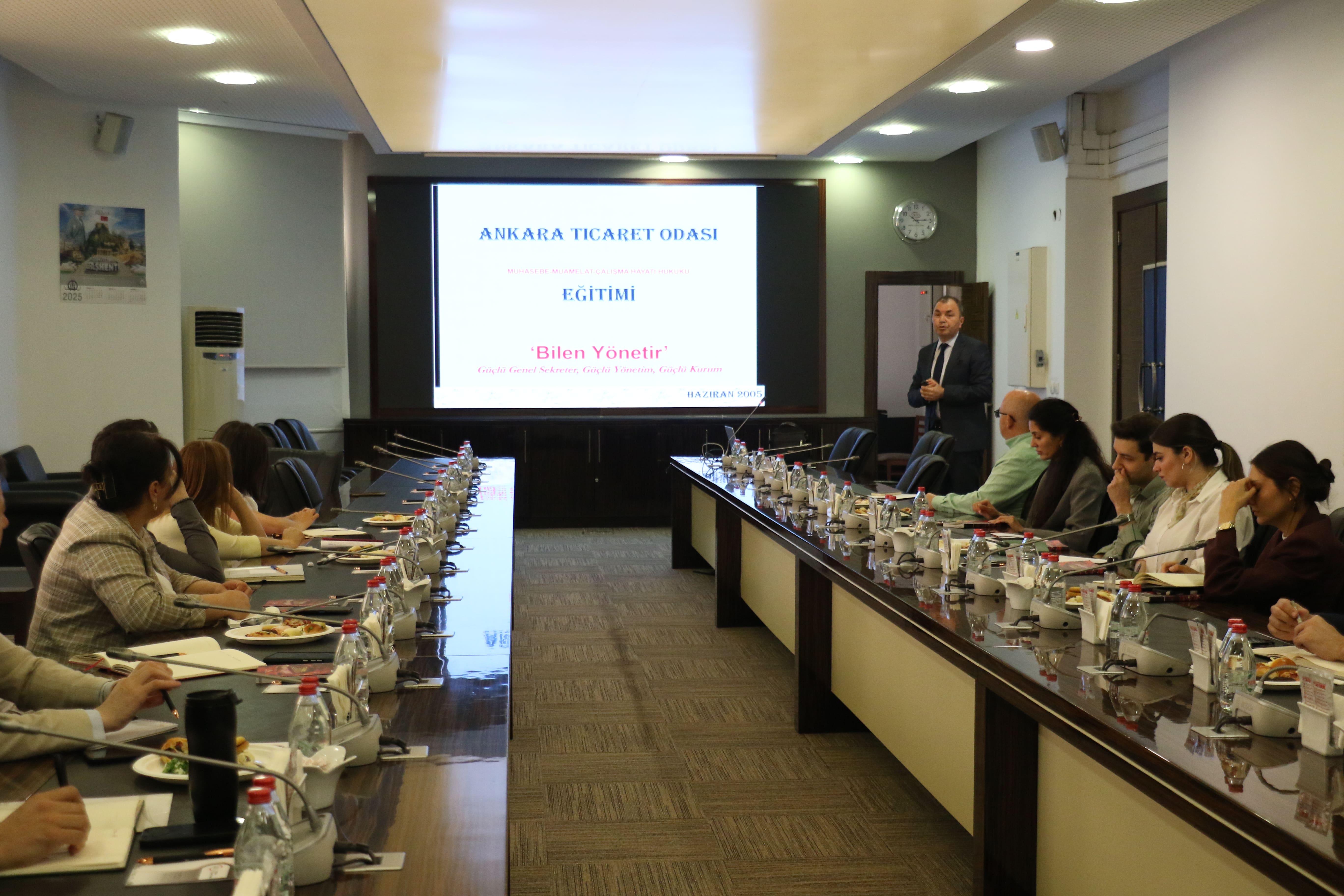 18 HAZİRAN 2025- Ankara Ticaret Odası'nın (ATO), kalite-akreditasyon sistemi çerçevesinde öncü ve örnek uygulamalar hayata geçirerek, kurumsal kapasitesini geliştirmek, iç hizmet kalitesini iyileştirerek, uygulamada birliği sağlamak üzere birim yöneticilerine yönelik düzenlediği "Odalar ve Borsalar Uygulama Sorunları - Çözümler Eğitimi", ATO Genel Sekreteri Ahmet Güran ve ATO Genel Sekreter Yardımcısı İbrahim Tırpancı'nın katılımıyla yapıldı.