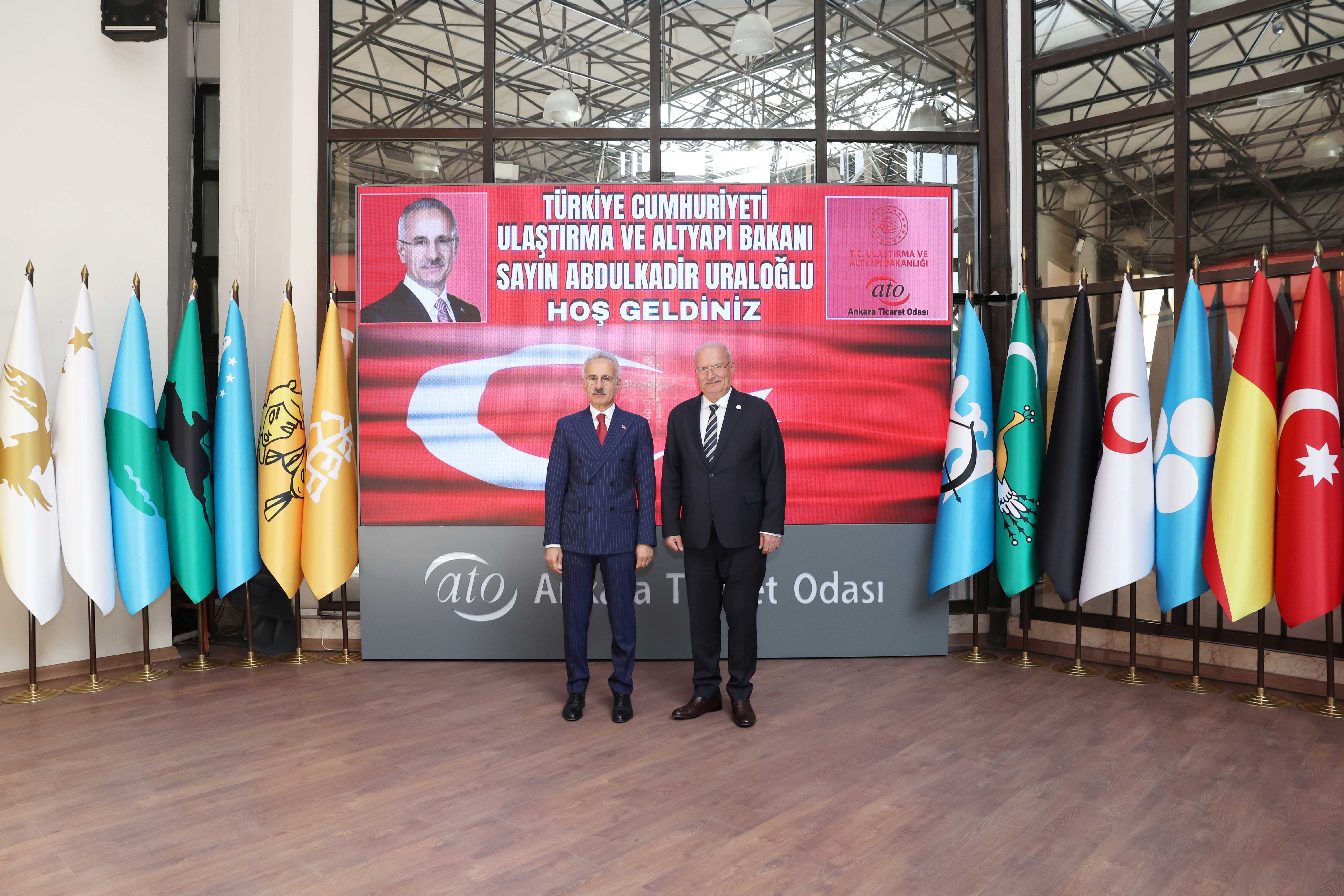 ATO'yu ziyaretinde Bakan Uraloğlu'na, Altyapı Yatırımları Genel Müdürü Yalçın Eyigün, Ulaştırma Hizmetleri Düzenleme Genel Müdürü Murat Baştor, TCDD Genel Müdür Yardımcısı Mahmut Civan, Sivil Havacılık Genel Müdürlüğü Hava Ulaştırma Daire Başkanı Mehmet Sefa Ceyhan, Strateji Geliştirme Başkanı Mücahit Arman, Özel Kalem Müdürü Semih Karaca ve Bakan Danışmanı Musa Saka eşlik ederken, ATO Meclis Başkanı Mustafa Deryal, Meclis Başkan Yardımcısı Ali İhsan Özdemir ile Yönetim Kurulu Üyeleri Adem Ali Yılmaz, Ali Yıldız, Ahmet Akça, Ali İhsan Güçlü, Halil İlik ve Yasin Özyolu da görüşmede yer aldı.