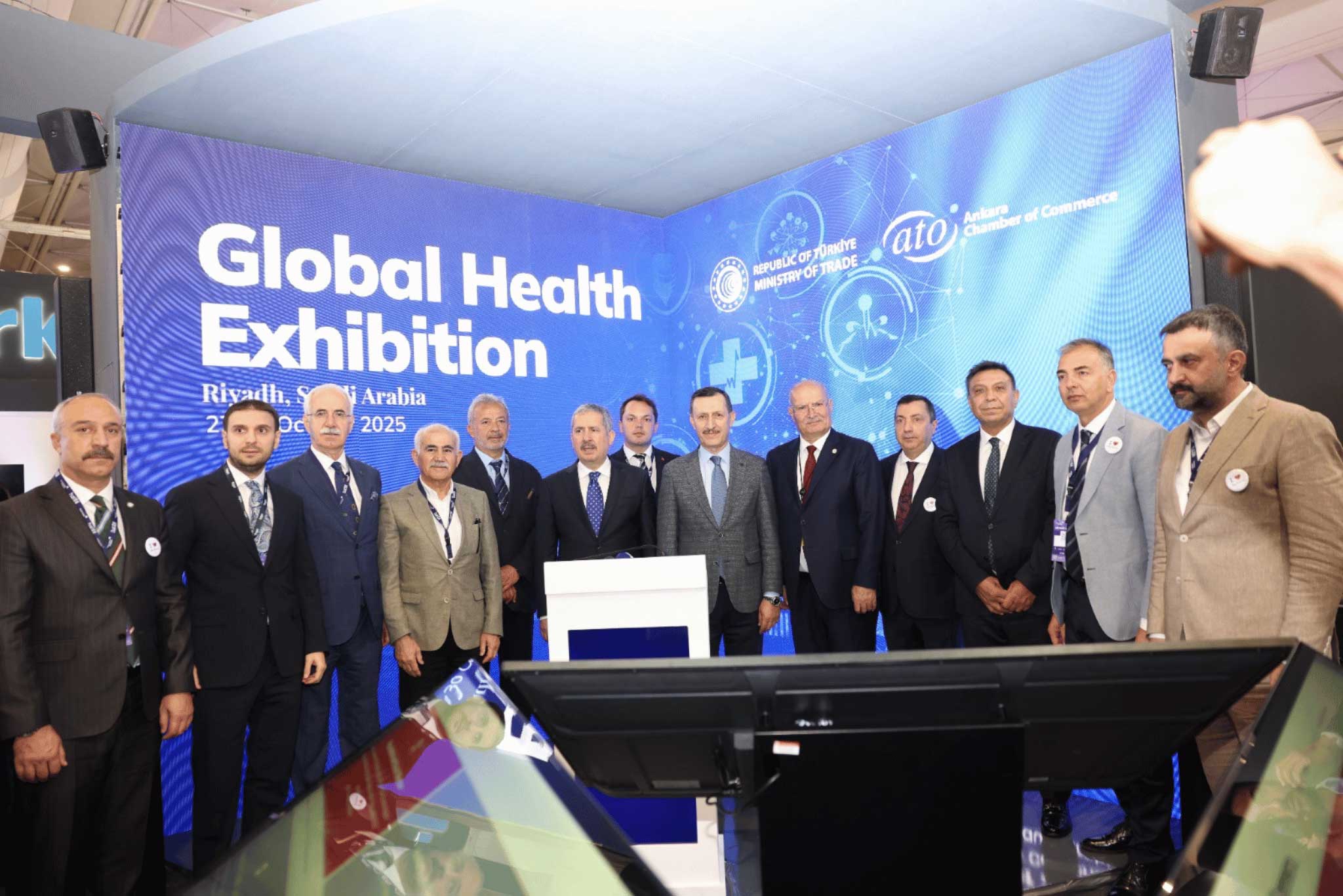Ankara Ticaret Odası'nın Ticaret Bakanlığı desteğiyle milli katılım organizasyonunu üstlendiği, Suudi Arabistan'ın başkenti Riyad'da gerçekleştirilen "Küresel Sağlık Fuarı 2025"te (Global Health Exhibition 2025) yer alan standının açılış programı ATO Yönetim Kurulu Başkanı Gürsel Baran ile Ticaret Bakan Yardımcısı Mahmut Gürcan ve Türkiye'nin Riyad Büyükelçisi Emrullah İşler'in katılımıyla yapıldı.