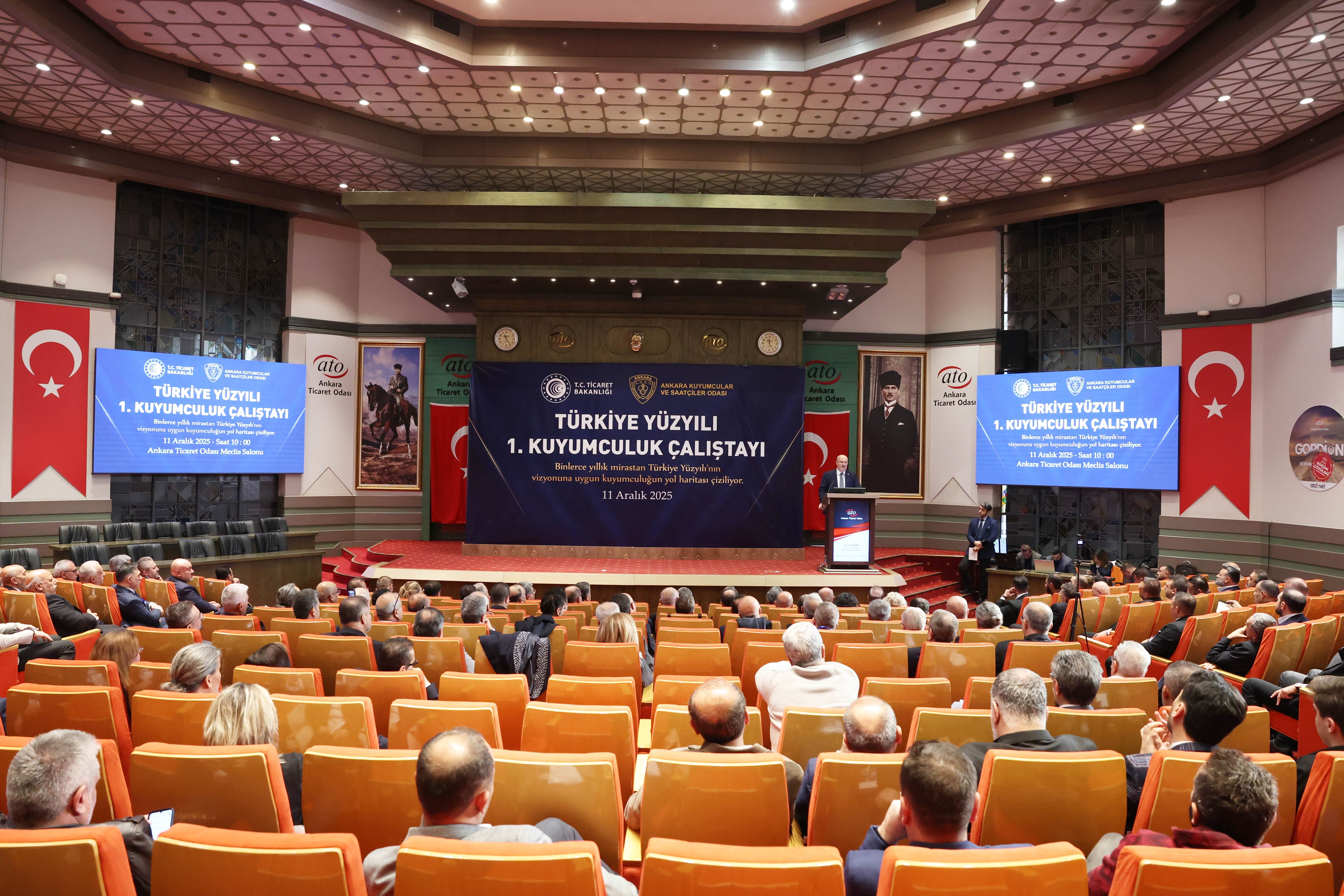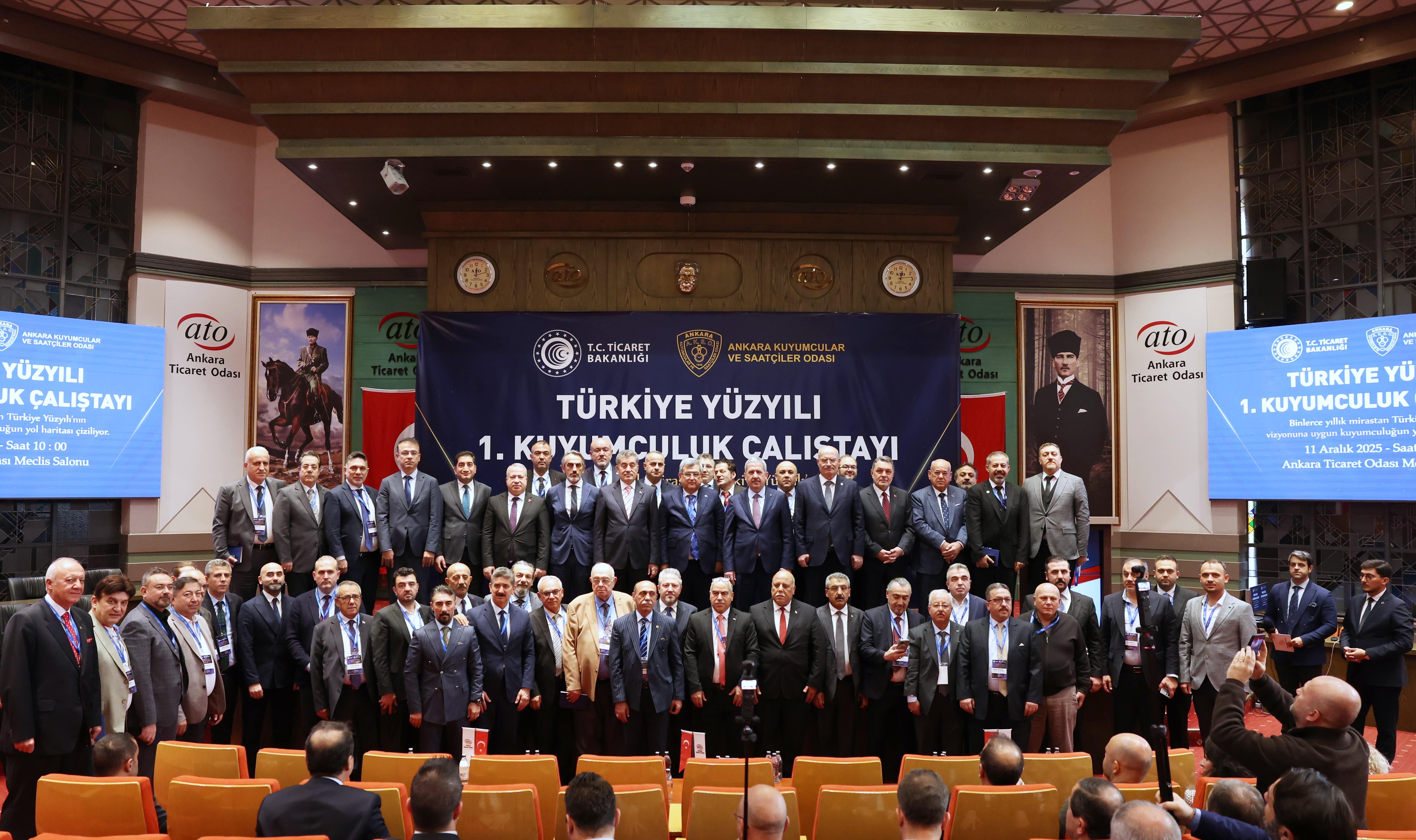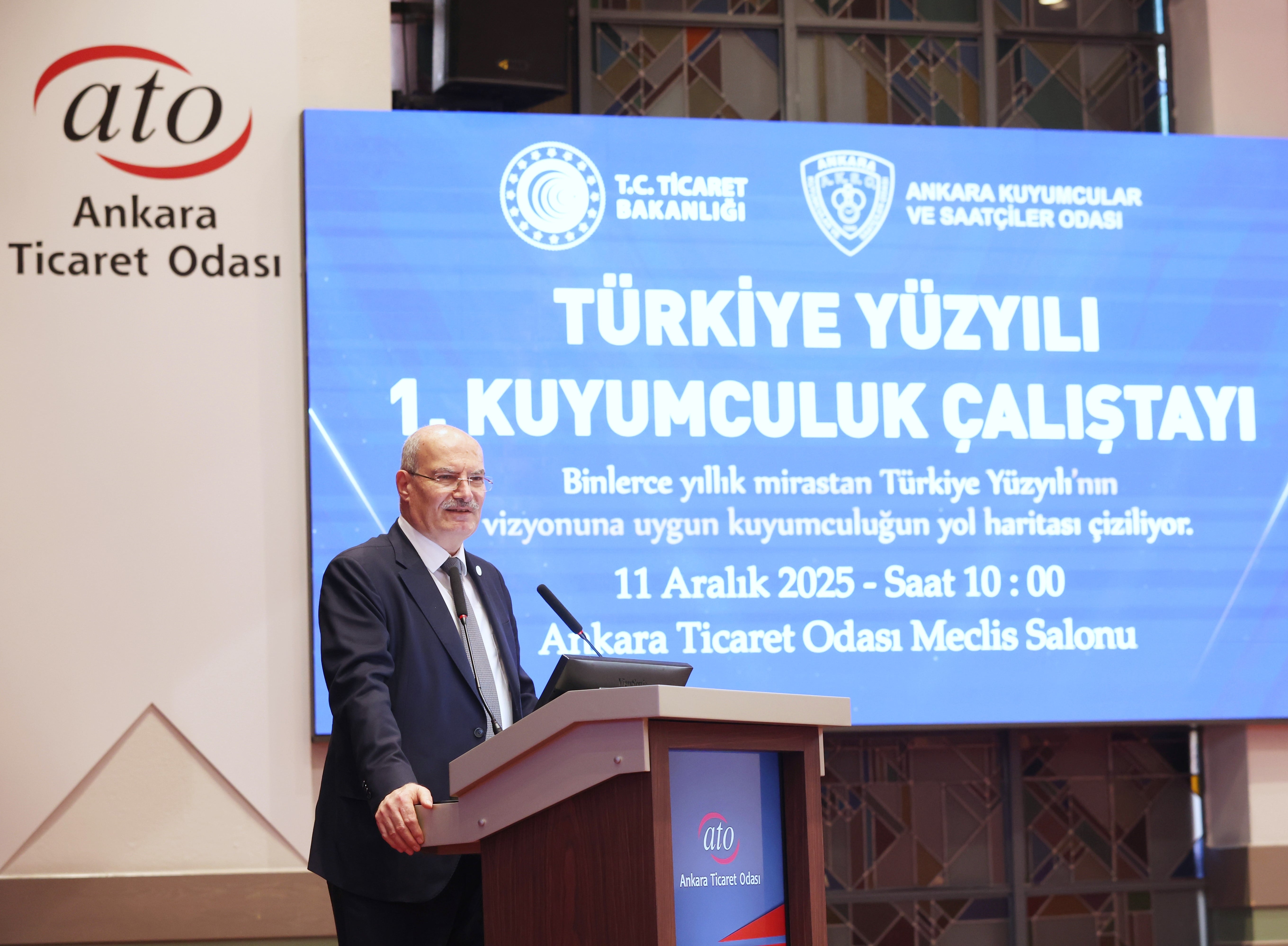 ATO Yönetim Kurulu Başkanı Gürsel Baran, Ticaret Bakanlığı ile Ankara Kuyumcular ve Saatçiler Odası iş birliğiyle ATO Meclis Salonu'nda gerçekleştirilen "Türkiye Yüzyılı 1. Kuyumculuk Çalıştayı"na katılarak, açılışında konuştu. Ticaret Bakan Yardımcısı Mahmut Gürcan ile Hazine ve Maliye Bakan Yardımcısı Abdullah Erdem Cantimur, Ankara Kuyumcular ve Saatçiler Odası Yönetim Kurulu Başkanı Timuçin Sönmez ve Ankara Esnaf ve Sanatkarlar Odaları Birliği Başkanı Hüseyin Ar'ın da birer konuşma yaptığı programda, sektöre dair sorunlar ve çözüm önerileri ele alındı.