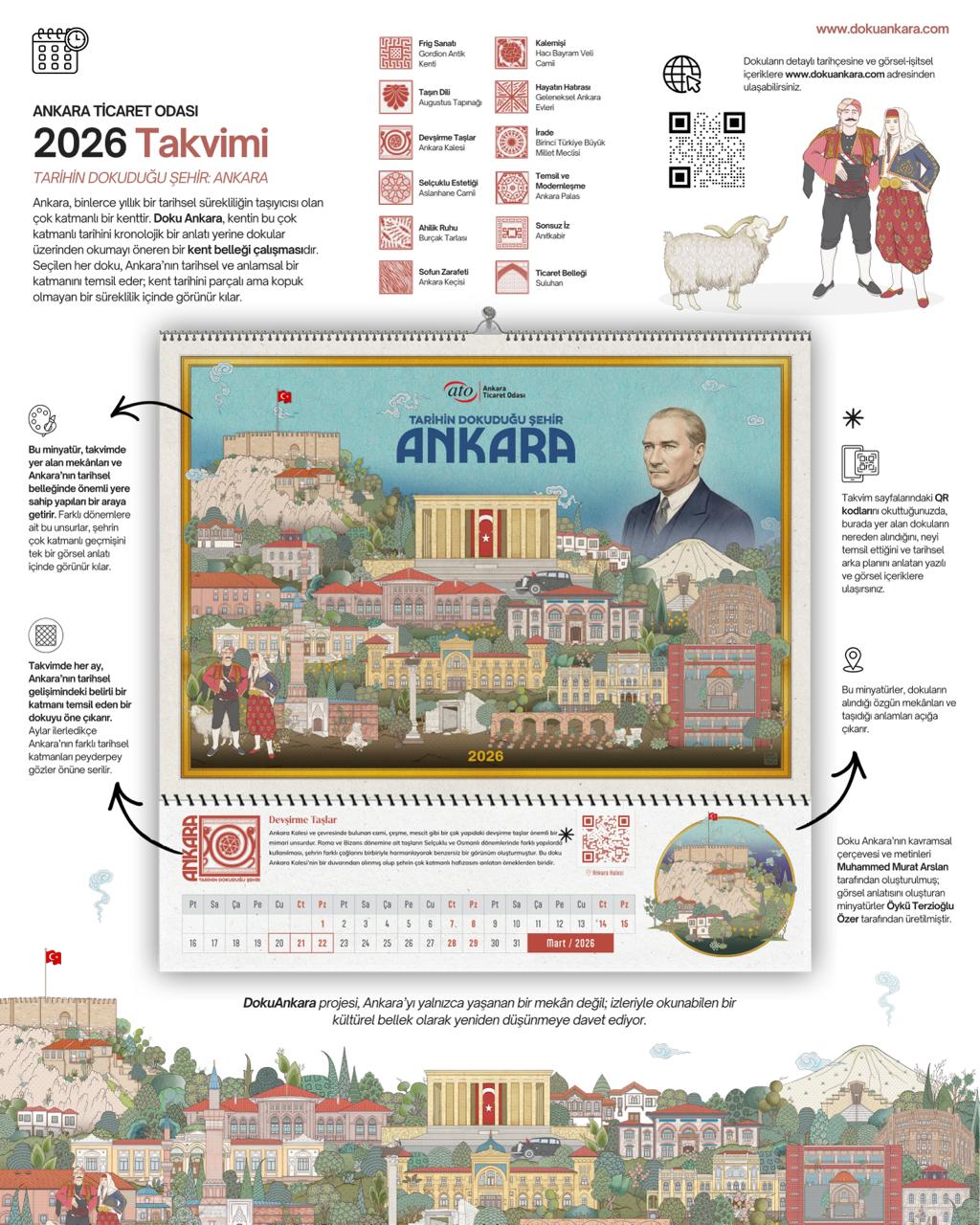 ATO'nun 2026 yılı takviminde Başkent'in tanıtımı için bir ilke de imza atıldı. Takvimle birlikte Ankara'nın tanıtımı amacıyla https://dokuankara.com/ adresiyle bir de web sitesi oluşturuldu. Takvim yapraklarında yer alan QR kodların okunmasıyla ulaşılan web sitesinde, her aya ait görsellerle, Ankara'nın tarihi, dokular üzerinden yazı ve resimlerle detaylandırıldı.
