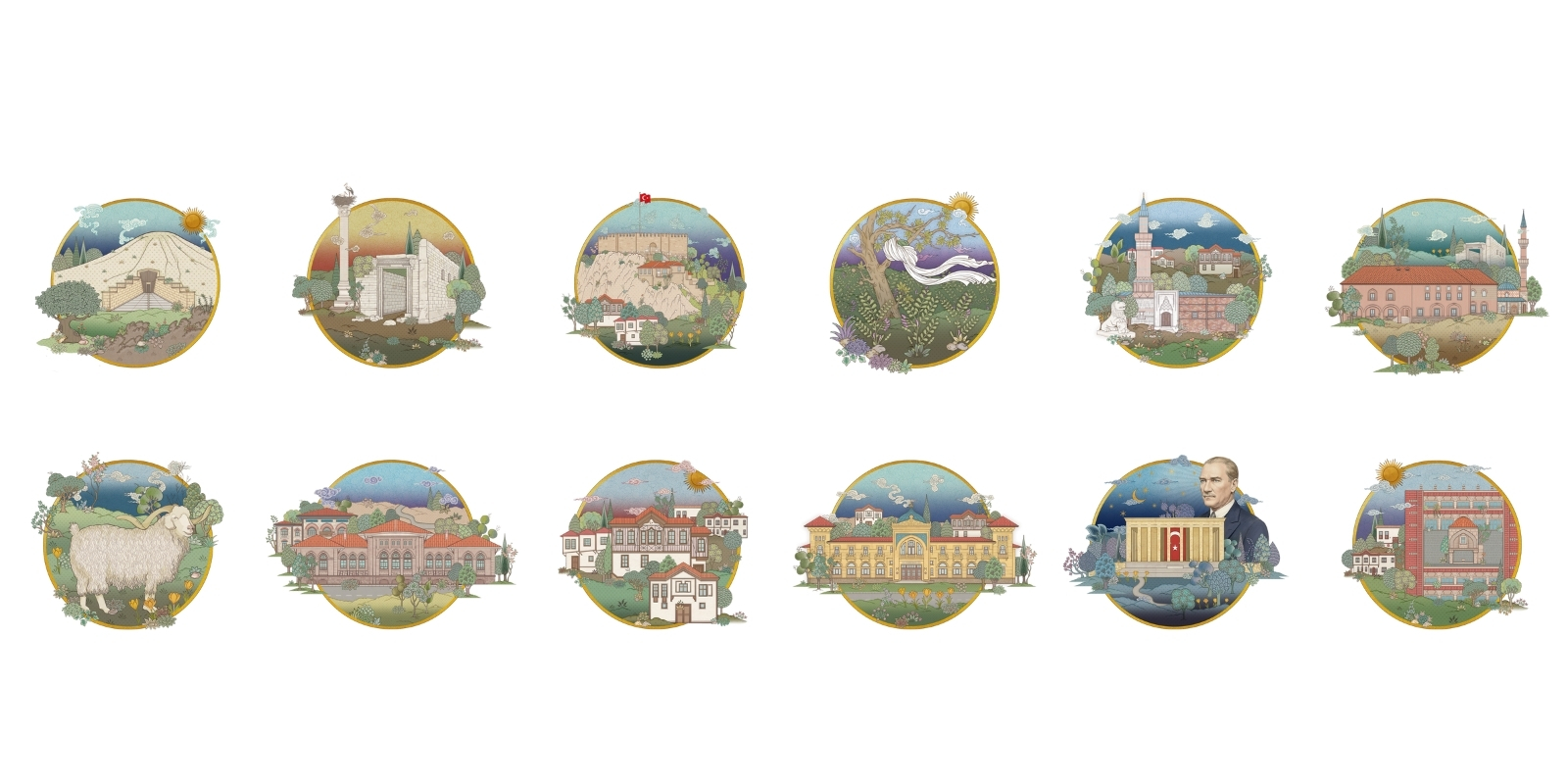 Ankara'nın Frigler'den Roma'ya, Bizans'tan Selçuklu'ya, Osmanlı'dan Cumhuriyet'e uzanan binlerce yıllık tarihinin izlerinin yer aldığı takvimle, kentte yaşayan medeniyetlerin taş ve ahşapta bıraktığı motif ve sembollerdeki izler, modern bir ifadeyle ve yine tarihten miras kalan minyatür sanatıyla bugüne taşınarak kültürel hafıza korunmaya çalışıldı.