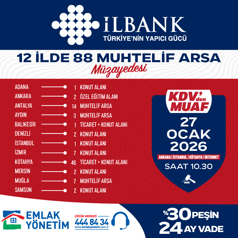 27 Ocak 2026 müzayedesi lotlu listesine ulaşmak için tıklayınız.