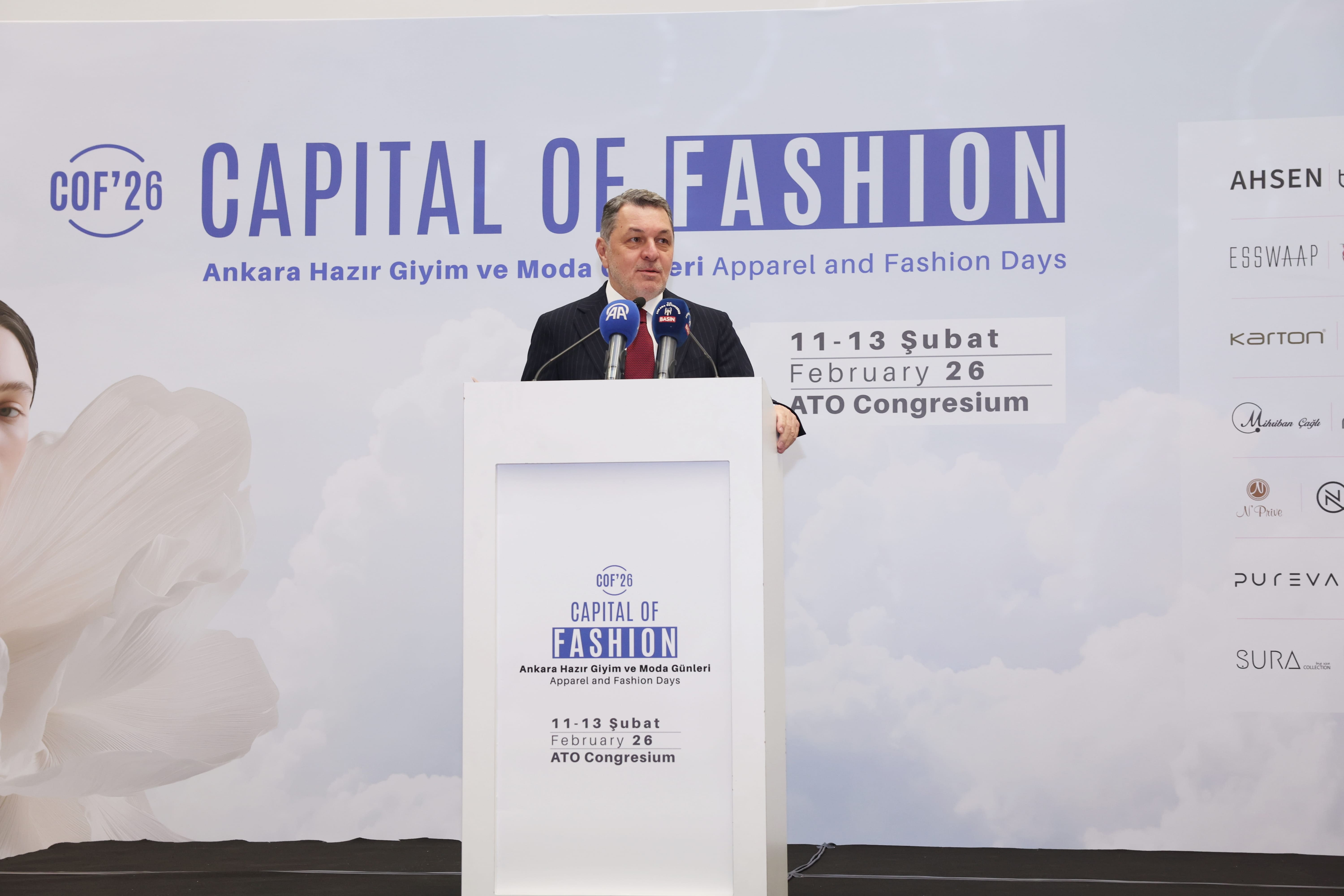 ATO Yönetim Kurulu Başkanı Gürsel Baran, Ankara Ticaret Odası'nın da katkılarıyla, Ankara Giyim Sanayicileri Derneği (AGSD) öncülüğünde ATO Congresium'da dördüncü kez kapılarını açan "Ankara Hazır Giyim ve Moda Günleri- Capital of Fashion- COF'26"nin açılış programına katılarak bir konuşma yaptı. Hazır giyim, tekstil ve moda sektörünün önde gelen markalarını Başkent'te buluşturan etkinliğin açılış programında, Ankara Büyükşehir Belediyesi Başkan Vekili Faruk Köylüoğlu ile Ankara Giyim Sanayicileri Derneği Başkanı aynı zamanda ATO'nun 2 No'lu Konfeksiyon, Hazır Giyim, Triko Meslek Komitesi Meclis Üyesi Hayati Akbaba da birer konuşma gerçekleştirdi.