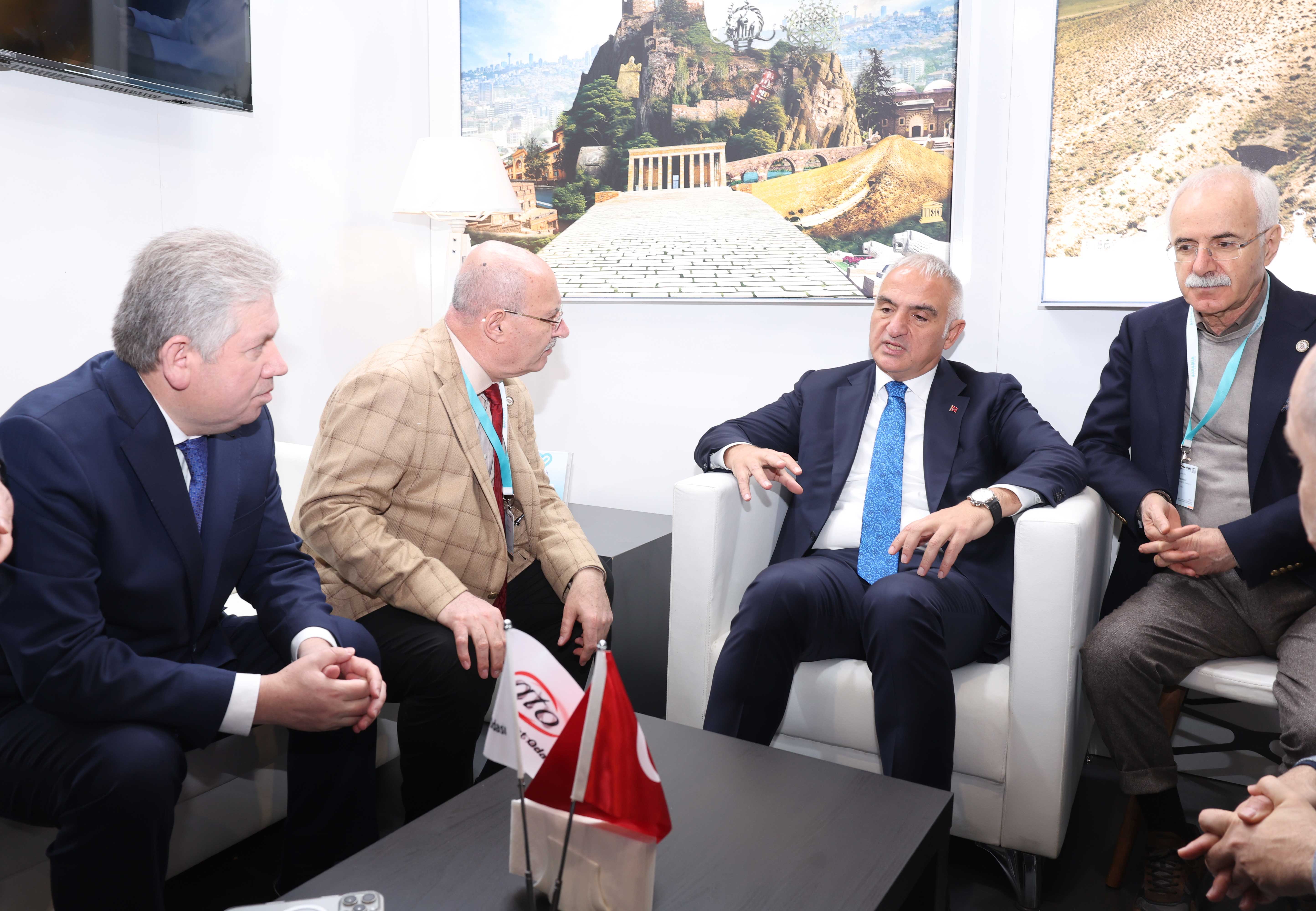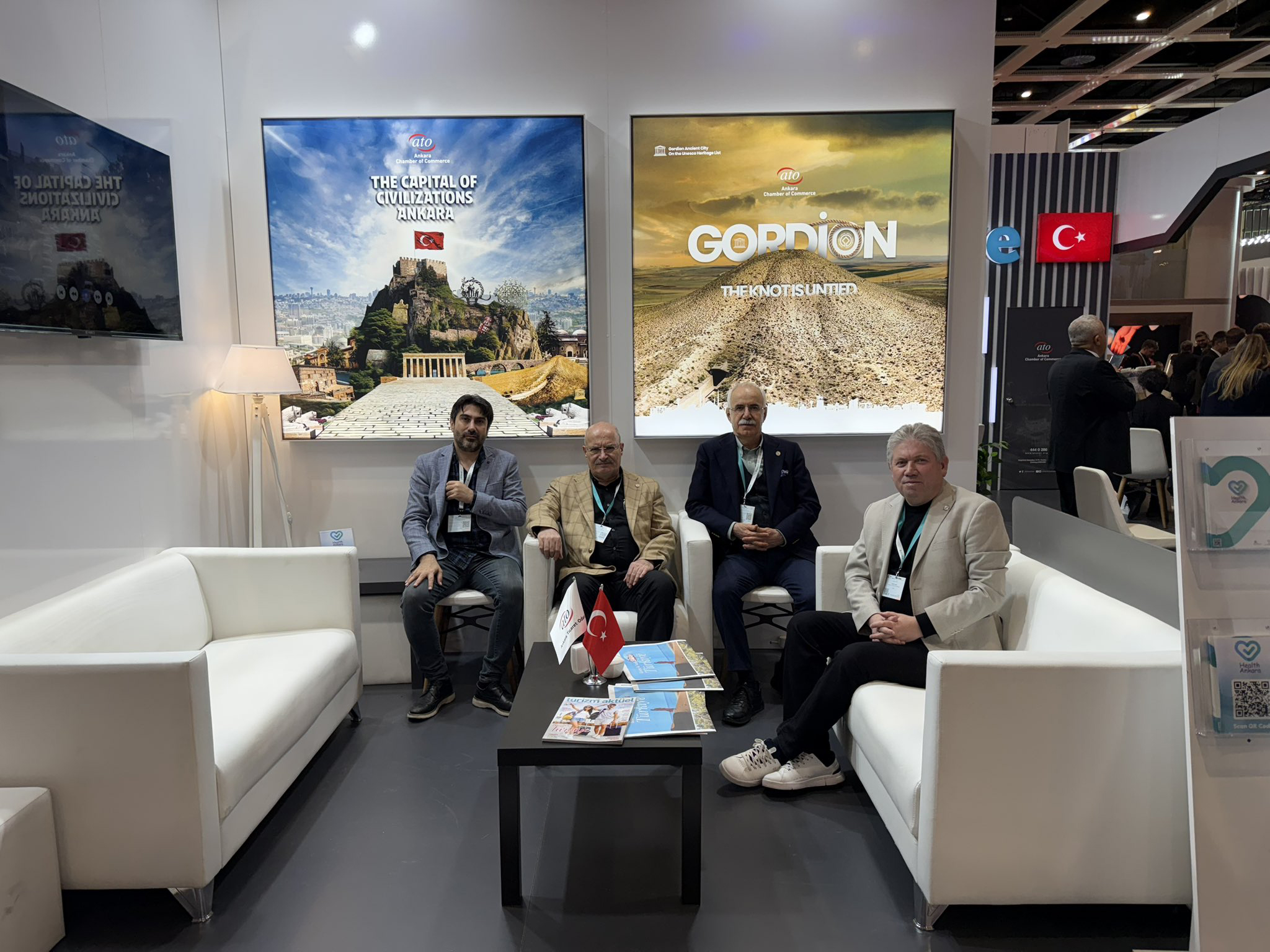 06-03-2025- The Ankara Chamber of Commerce (ATO) participated in the Berlin International Tourism Exchange Fair (ITB Berlin), one of the most significant gatherings in the global tourism industry, by opening a stand. ATO President Gürsel Baran personally introduced Ankara to the visitors, and the ATO stand, which attracted great interest, was also visited by Minister of Culture and Tourism Mehmet Nuri Ersoy. The stand featured visuals of the Gordion Ancient City, which is included in the UNESCO World Heritage List, and also hosted a sand art performance by artist VeyselÇelikdemir . ATO President Gürsel Baran emphasized that they continue working towards Turkey's 2028 target of achieving 100 billion dollars in tourism revenue.