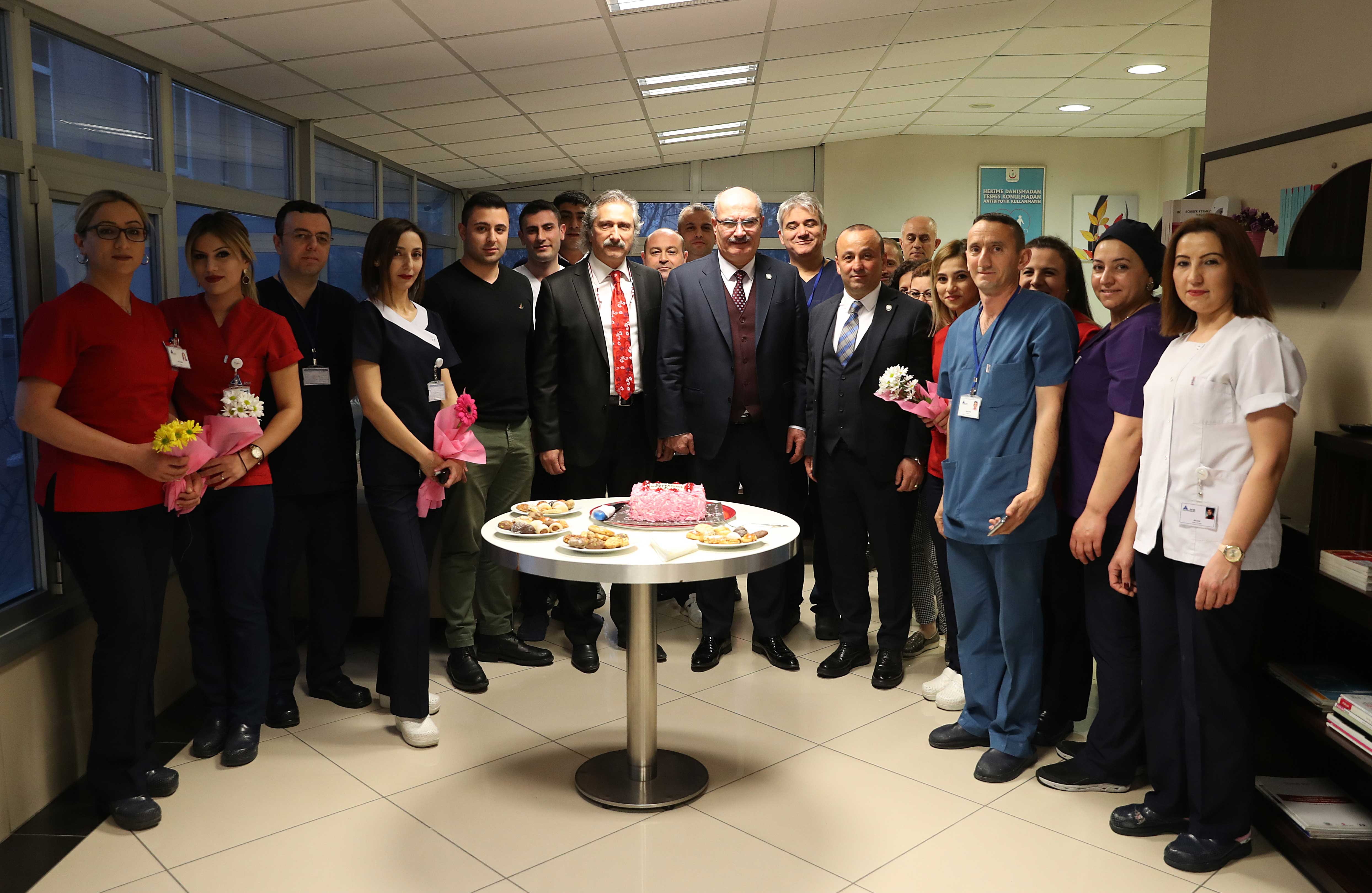 ATO Başkanı Baran, 14 Mart Tıp Bayramı nedeniyle ATO'nun 56 No'lu Sağlık Hizmetleri Meslek Komitesi Başkanı Raşit Mandıroğlu'nu Yenimahalle'de hizmet veren bir Diyaliz Merkezi'nde ziyaret etti. Merkezde görev yapan hekim, hemşire ve diğer tüm sağlık çalışanlarının bayramını kutlayan Baran, sağlık çalışanlarına çiçek hediye etti ve pasta kesti. Hekim ve diğer sağlık personeliyle sohbet eden Baran, ülkelerin gelişmişlik düzeyinin göstergelerinden birinin sağlık hizmetleri olduğunu söyledi. Türkiye'nin sağlık turizminde tercih edilen bir ülke konumuna geldiğini anlatan Baran, "Türkiye sunduğu kaliteli sağlık hizmeti nedeniyle sağlık turistinin ziyaret ettiği bir ülke. Kaliteli sağlık hizmetinden bahsederken son teknoloji ürünü teşhis ve tedavi cihazları içinde olsa da asıl sözünü ettiğimiz yetişmiş insan gücüdür. Ülkemizin sağlık alanındaki başarılarının mimarı sağlık çalışanlarımızdır" dedi.
