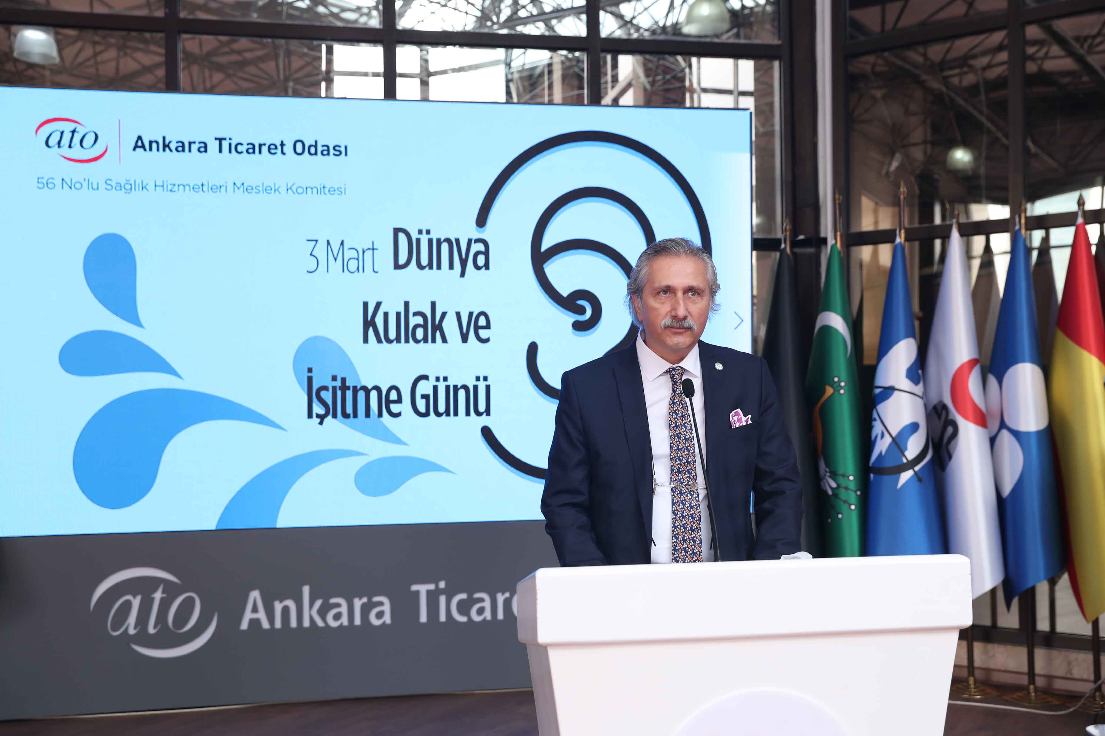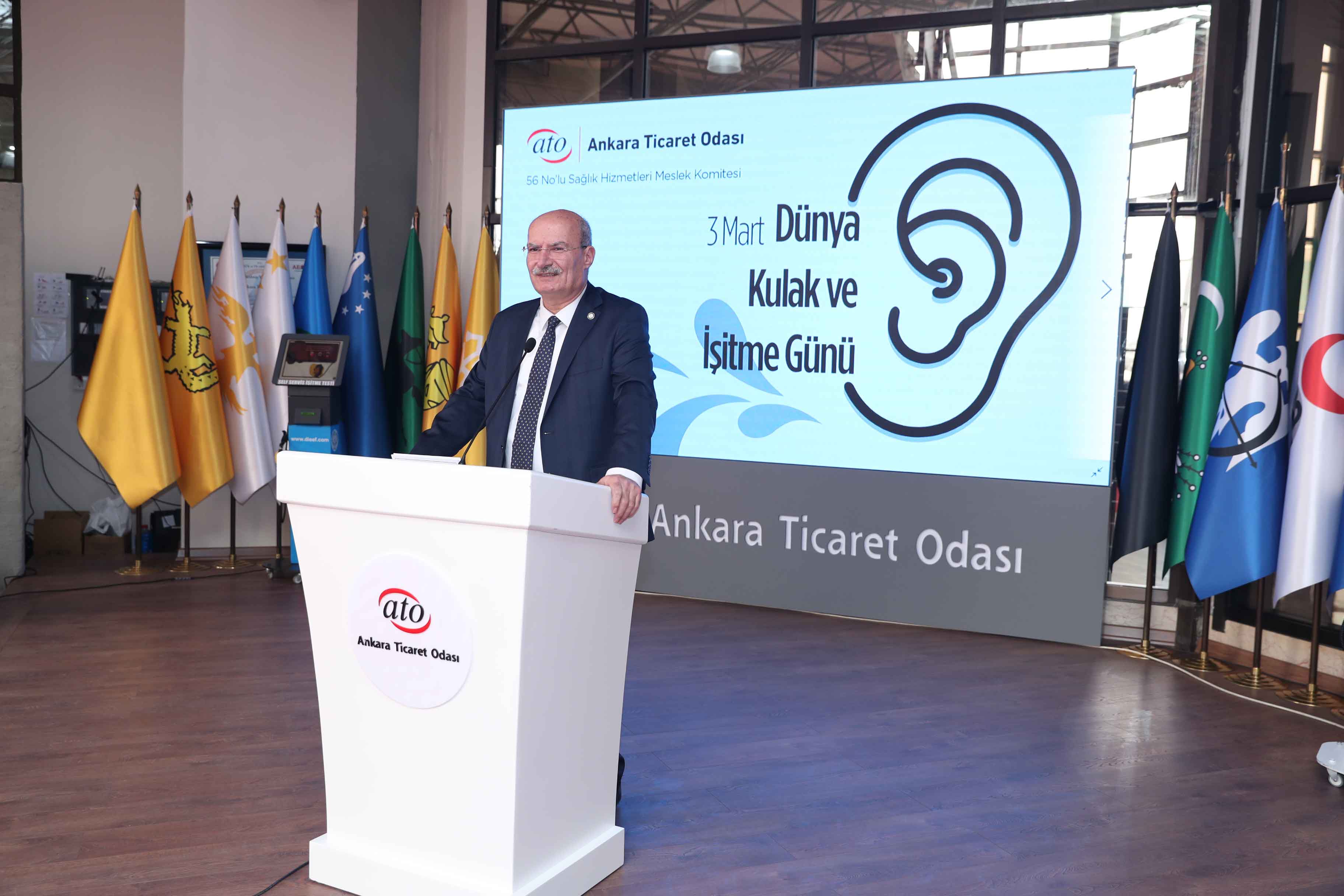 4 MART 2022 - Ankara Ticaret Odası (ATO) Yönetim Kurulu Başkanı Gürsel Baran, kulak sağlığı konusunda erken teşhis ve farkındalığı sağlamak, işitme engelli bireylerin sosyal hayata kazanımını arttırmak amacıyla "3 Mart Dünya Kulak ve İşitme Günü"nde, ATO'nun 56 No'lu Sağlık Hizmetleri Meslek Komitesi tarafından düzenlenen etkinliğe katıldı.