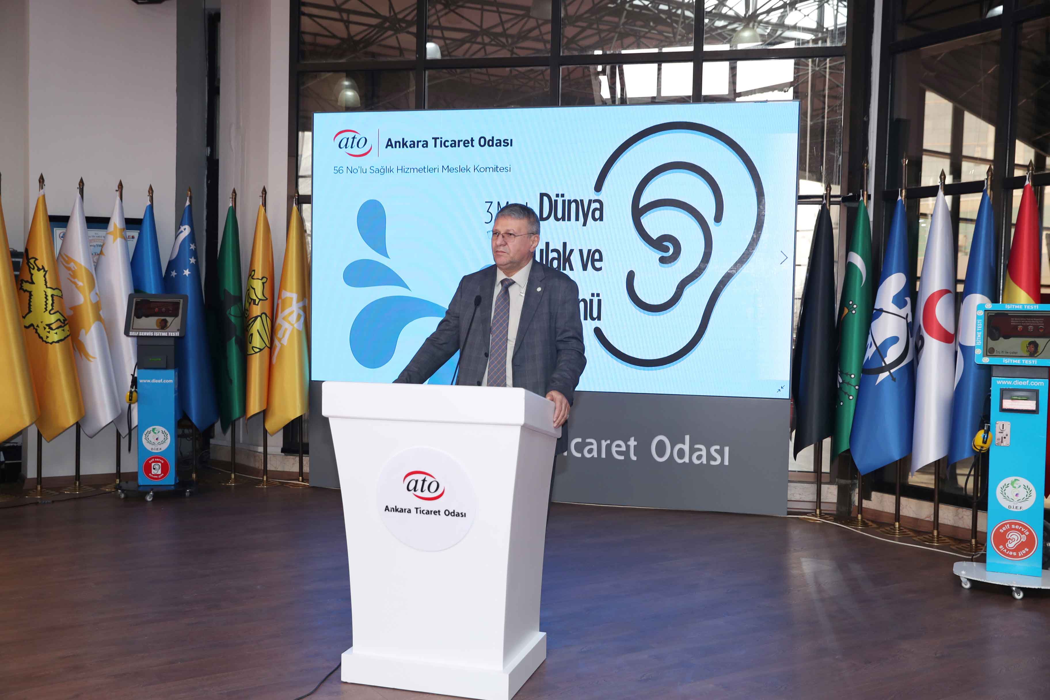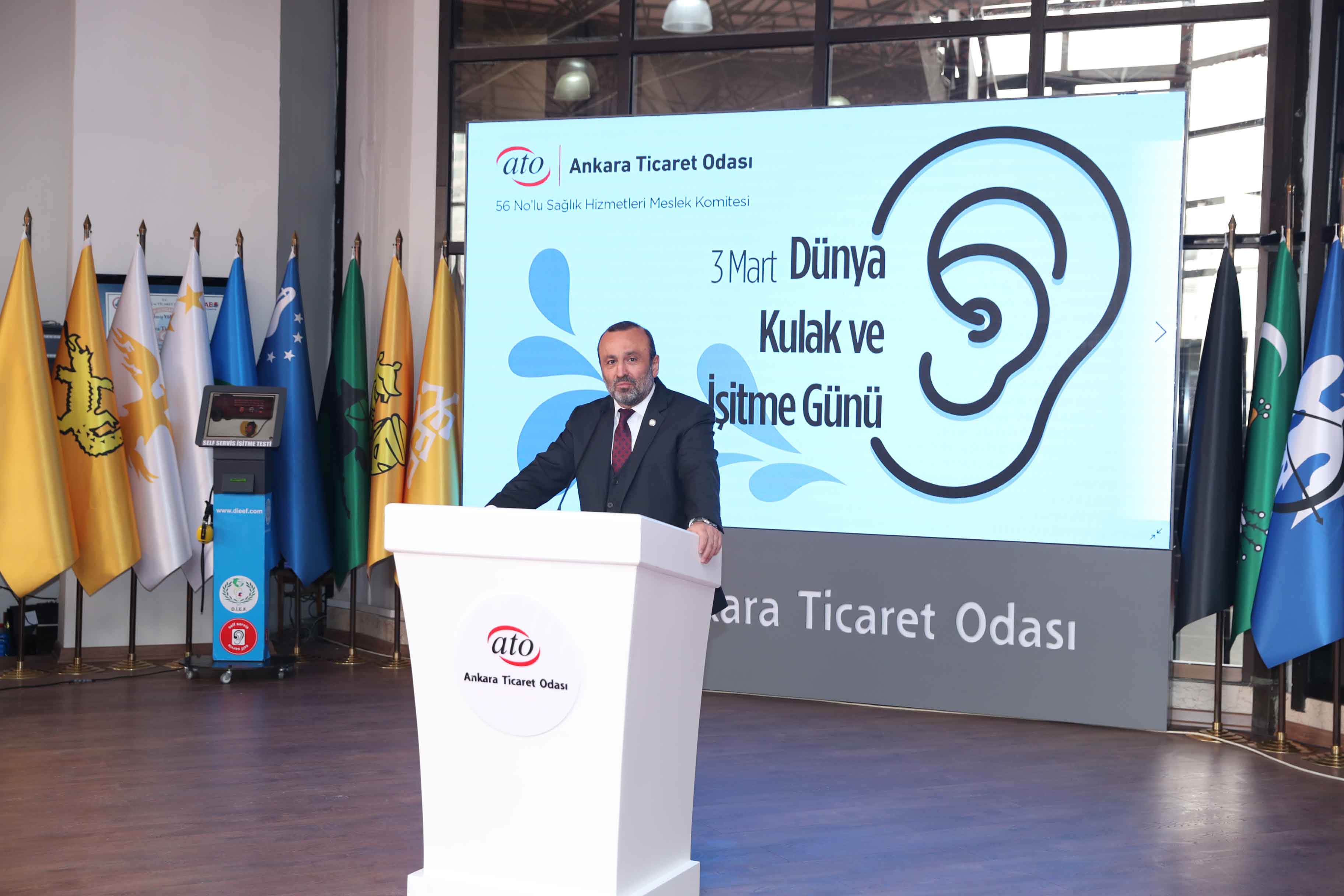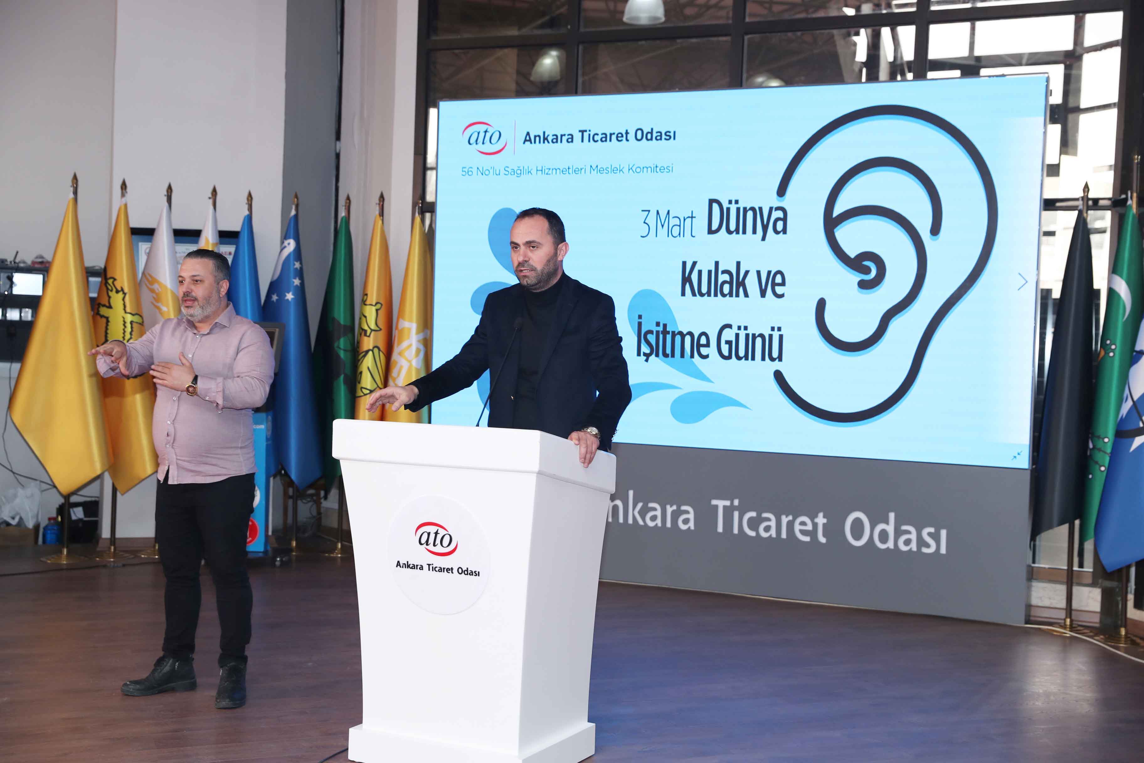 ATO'nun 56 No'lu Sağlık Hizmetleri Meslek Komitesi Başkan Yardımcısı Ekrem Akdoğan da konuşmasında işitme cihazı kullanımı konusunda Almanya ile Türkiye'yi kıyasladı. İki ülkenin nüfusunun birbirine yakın olduğu halde Almanya'da, yılda 1.5 milyon işitme cihazının kullanılmaya başlandığını bu sayının Türkiye'de 150-200 bin arasında kaldığını kaydeden Akdoğan, Türkiye'de işitme kaybı ve cihaz kullanım konusunda farkındalığın yerleşemediğini söyledi. Akdoğan, iletişim ile işitme bağlantısına da dikkat çekerek, "İyi işitelim ki iyi iletişim kuralım" dedi.