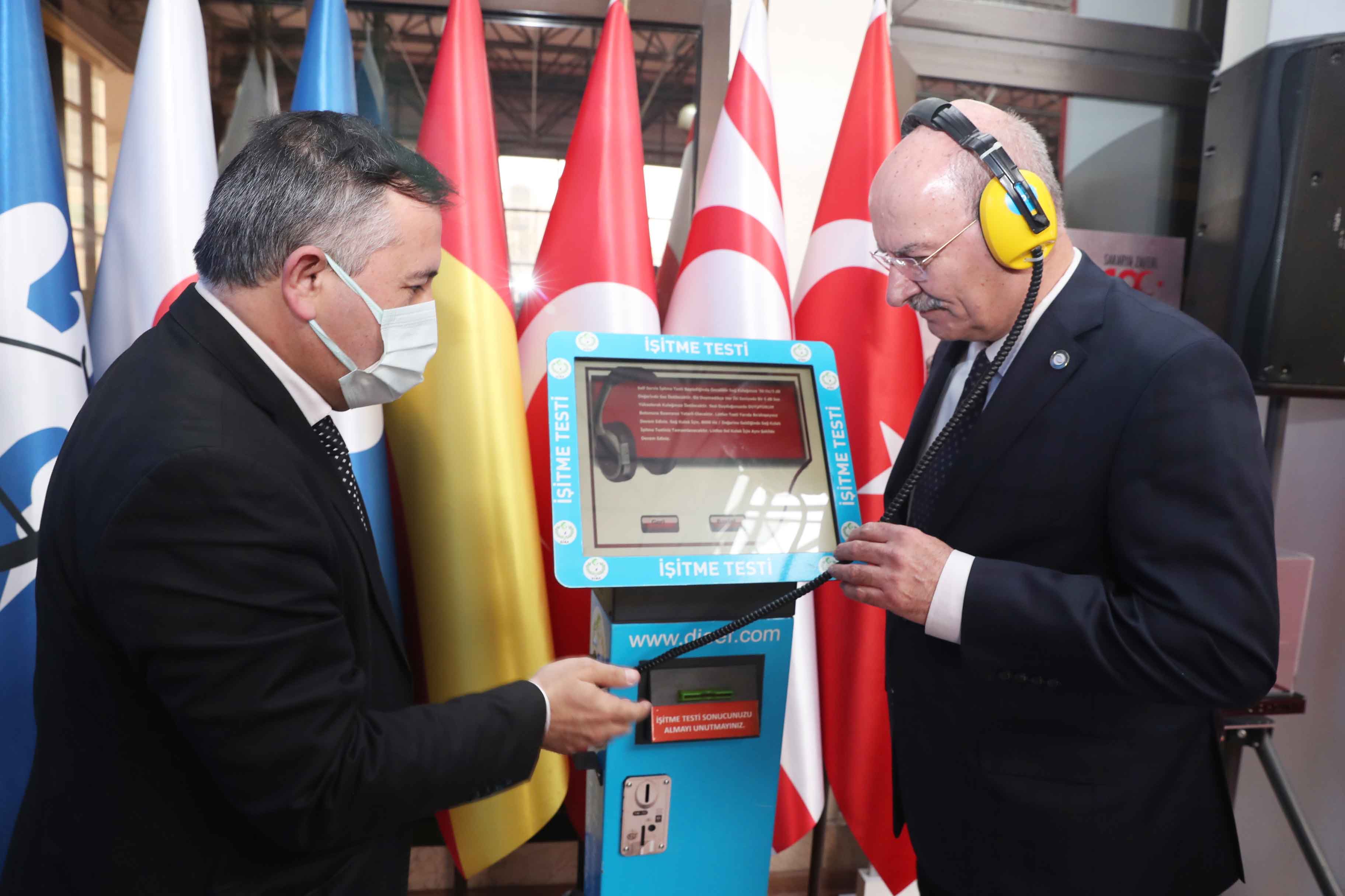 Konuşmaların ardından ATO Başkanı Baran, her iki kulağın da duyma seviyelerini ölçen kioskların yer aldığı "İşitme Testi Noktası"nı ziyaret ederek, işitme testi yaptırdı.