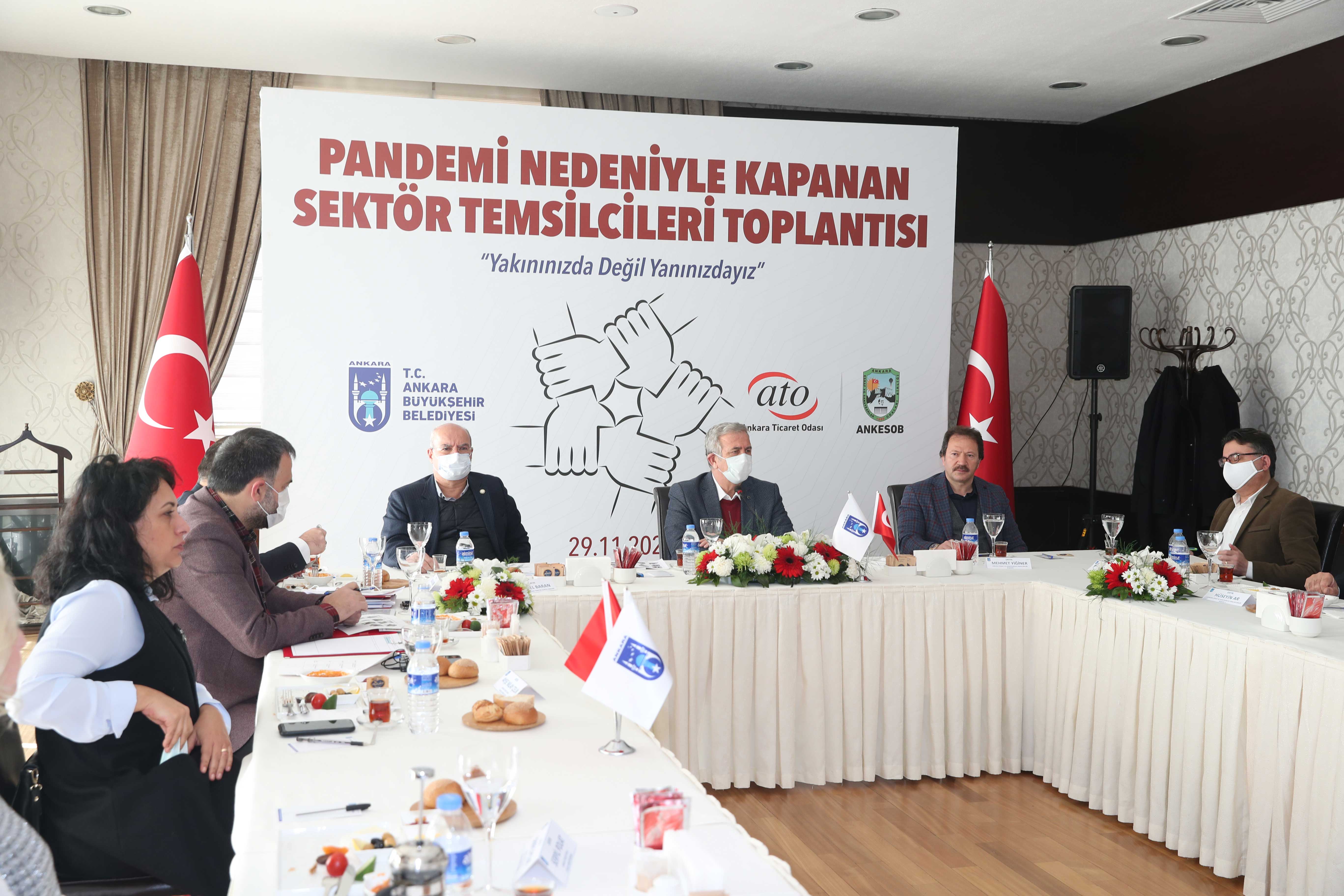 30 KASIM 2020-Koronavirüs salgınıyla mücadele kapsamında geçici olarak faaliyeti durdurulan ve bu süreçte ciro yapamayan sektörlerin sorunları Ankara Büyükşehir Belediyesi'nin ev sahipliğinde "Pandemi Nedeniyle Kapanan Sektör Temsilcileri Toplantısı"nda ele alındı.