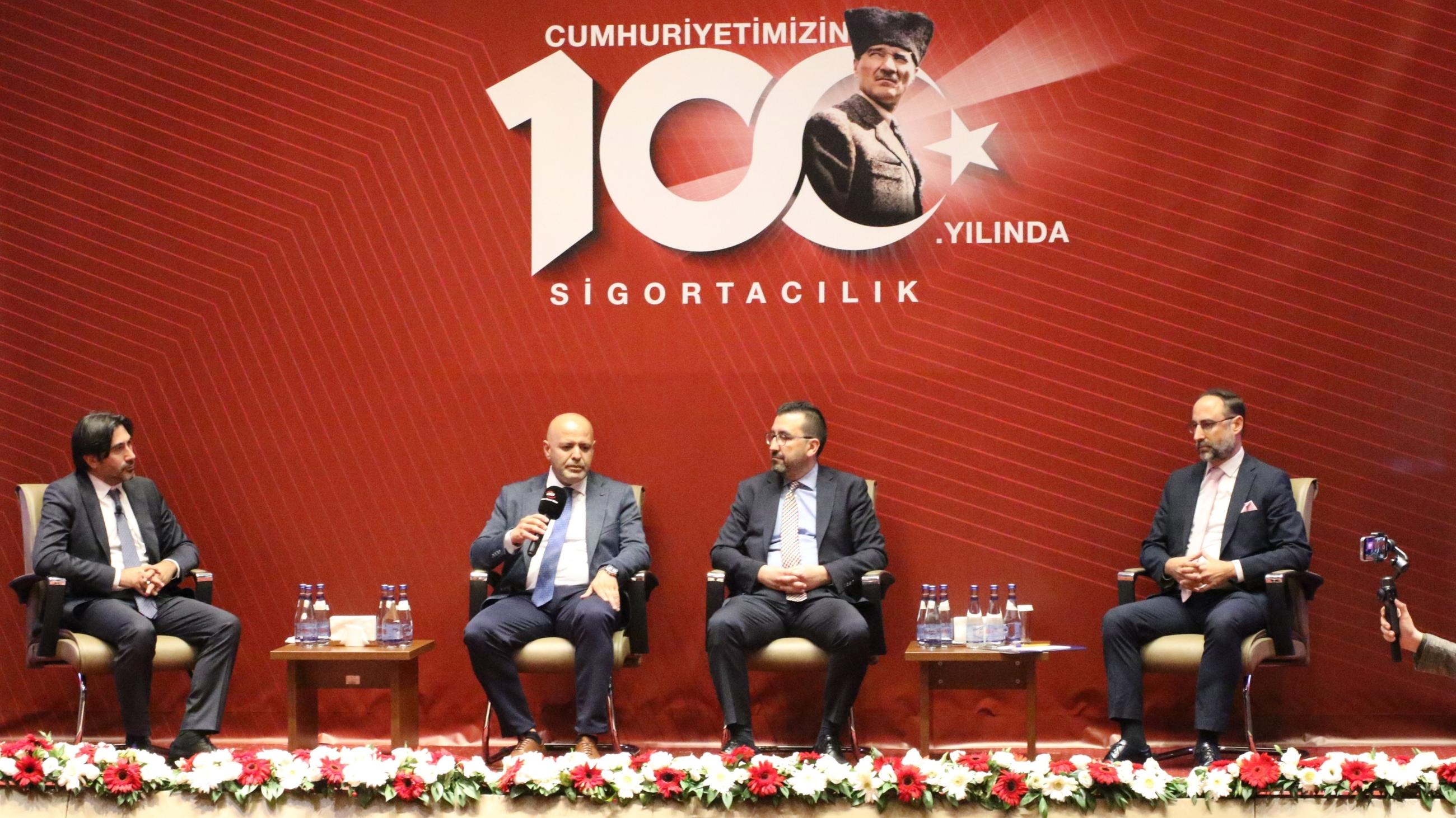 ATO Meclis Salonu'nda düzenlenen programın açılışında konuşan ATO Başkan Yardımcısı Halil İbrahim Yılmaz, Cumhuriyet'in 100. yılını kutlayarak başladığı konuşmasında, bu yılın aynı zamanda Ankara'nın Başkent oluşunun ve Ankara Ticaret Odası'nın kuruluşunun da 100. yılı olduğunu söyledi. Gazi Mustafa Kemal Atatürk'ün önderliğinde Türk milletinin, kahramanlık destanı yazarak ulaştığı zaferin en büyük armağanının Cumhuriyet olduğunu ifade eden Yılmaz, Türkiye'nin gelişmiş, bölgesinde ve dünyada söz sahibi bir ülke durumuna gelmesinin; bilimde, teknolojide, ekonomide, sanatta ilerlemesinin Cumhuriyet sayesinde olduğunu kaydetti. Yılmaz, "Türkiye'nin, Türk Milleti'nin gelecek yüz yıllarının teminatı nasıl ki Cumhuriyet ise Türkiye ekonomisinin teminatı da sigorta sektörüdür. Cumhuriyetimizin devamı da ancak ekonomik cephede kazanacağımız başarılarımızla mümkündür" dedi.