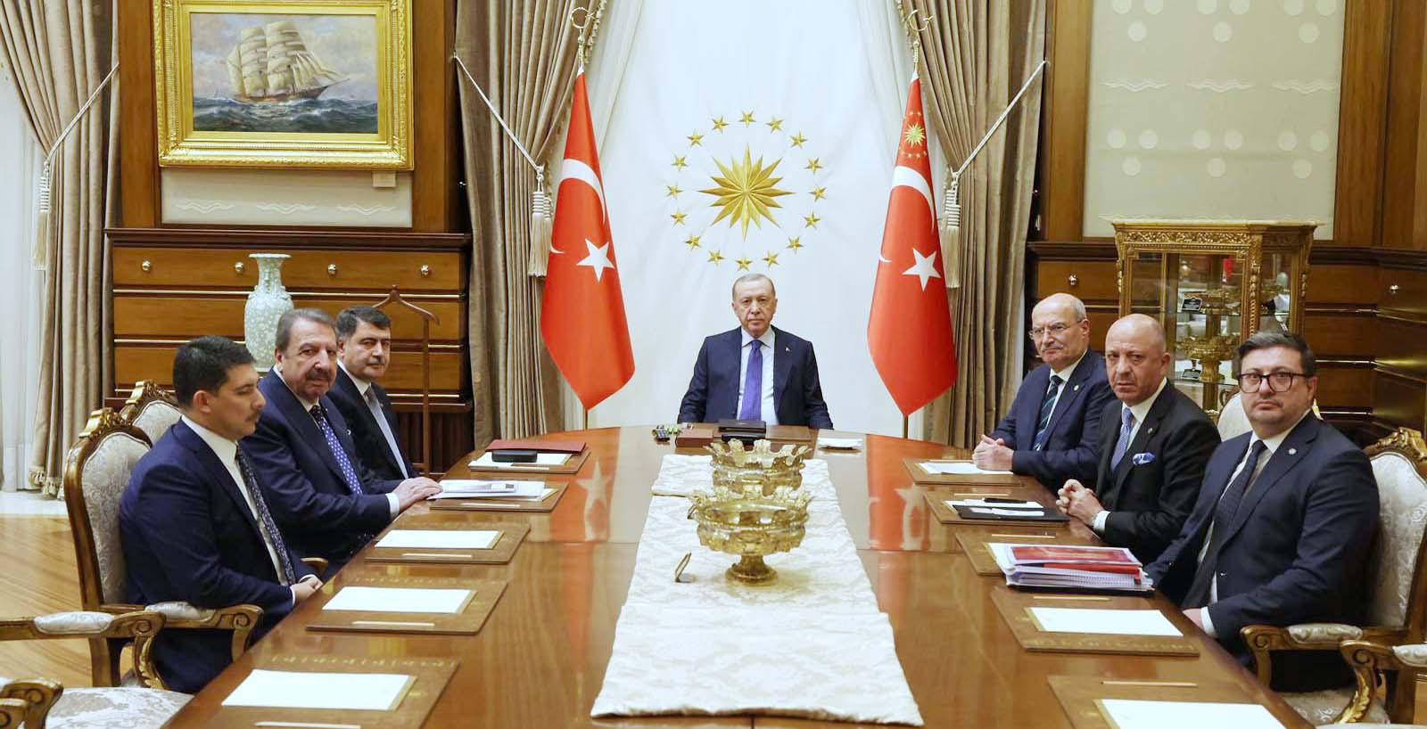 >CUMHURBAŞKANI ERDOĞAN, ATO BAŞKANI BARAN'IN DA ARALARINDA YER ALDIĞI HEYETİ KABUL ETTİ
