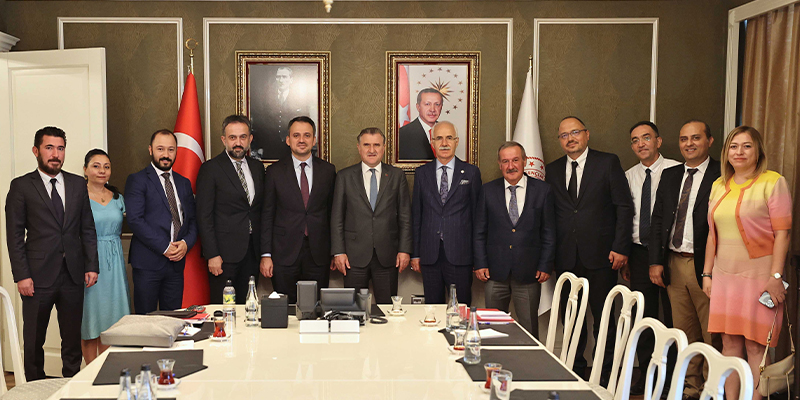 >ULAŞTIRMA BAKANI ATO'YU ZİYARET ETTİ, KOMİTE VE KOMİSYON ÜYELERİYLE TOPLANTI YAPIP SEKTÖREL KONULARI ELE ALDI