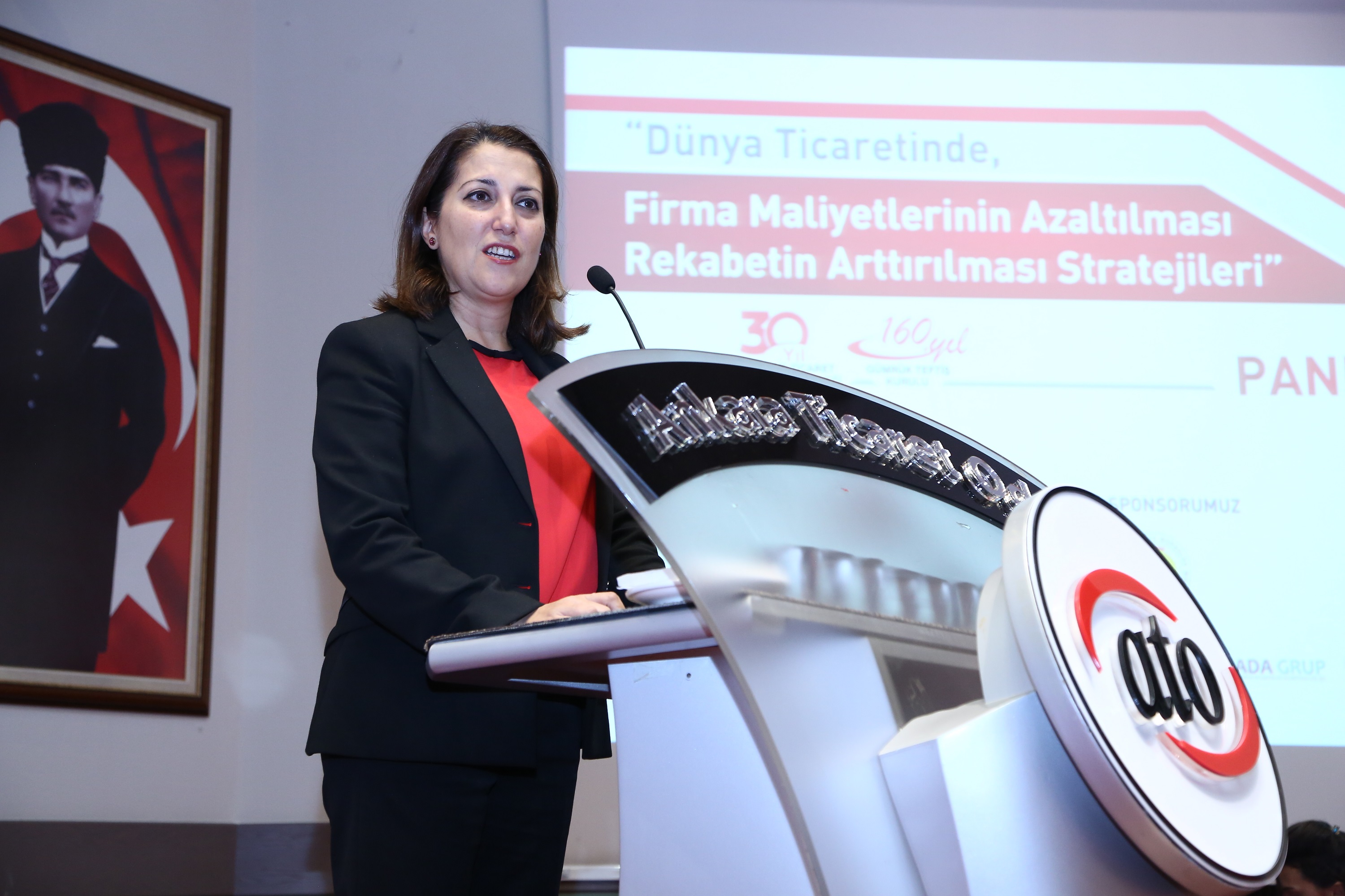 Gümrük ve Ticaret Müfettişleri Derneği tarafından düzenlenen "Dünya Ticaretinde Firma Maliyetlerinin Azaltılması Rekabetin Artırılması Paneli" ATO Meclis Salonu'nda yapıldı. Ticaret Bakanlığı Bakan Yardımcısı Gonca Yılmaz Batur ile Eski Ticaret Bakan Yardımcısı Fatih Metin'in katıldığı panelin açılışında ATO Başkanı Gürsel Baran bir konuşma yaptı. Ülkelerin ekonomik gücünün artmasında dış ticaretin önemli bir unsur olduğunu kaydeden Baran, "Uluslararası rekabet gücü ürünün depodan çıkıp diğer ülkedeki depoya varana kadar olan süreçteki tüm masraf ve sürelerle belirleniyor" dedi.