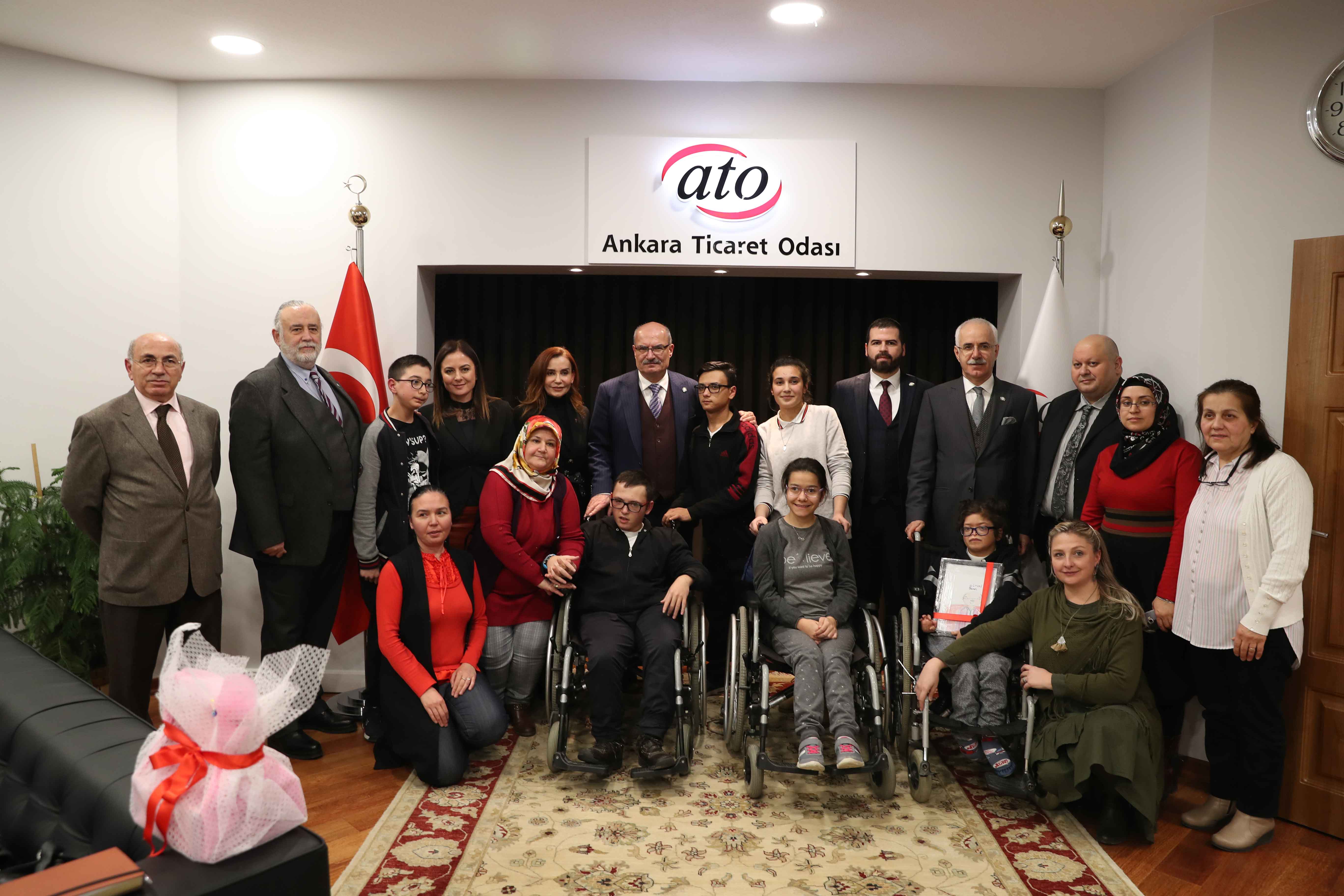 16 ŞUBAT 2019-SERÇEV Engelsiz Meslek Lisesi 10. sınıf öğrencisi serebral palsili çocuklar, SERÇEV Engelsiz Meslek Lisesi Müdürü Dilek Saran, Serebral Palsili Çocuklar Derneği (SERÇEV) Yönetim Kurulu Başkanı Süheyla Gürkan ve Dernek Yönetim Kurulu üyeleriyle ile birlikte ATO Yönetim Kurulu Başkanı Gürsel Baran'ı ziyaret etti.