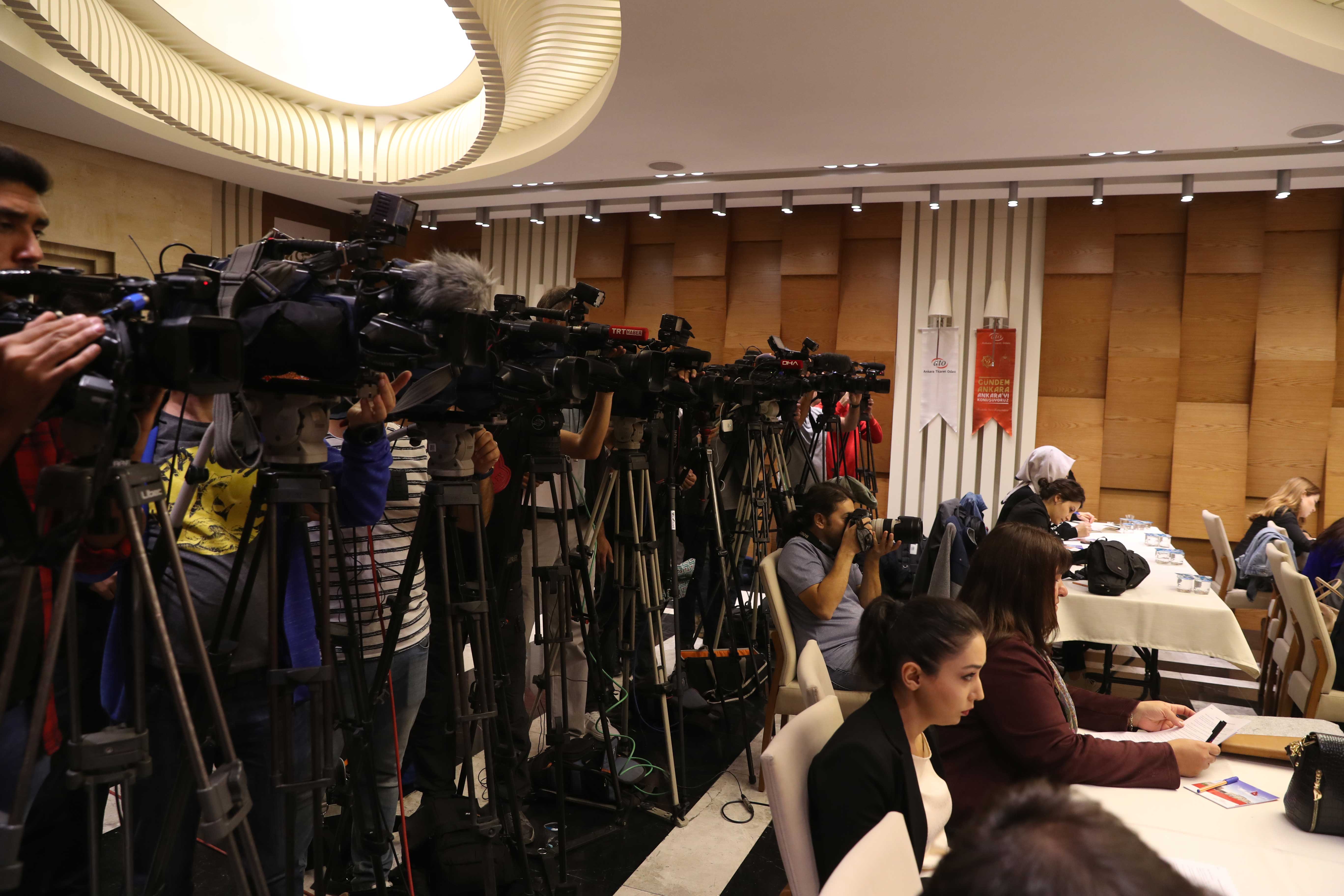 Türkiye'nin 81 ilinde tüm Oda ve Borsalarla iş dünyasının birlikte gerçekleştirdiği "Barış Pınarı Harekâtı'na destek açıklaması Ankara'da ATO'da yapıldı. Ankara Sanayi Odası (ASO) Başkan Yardımcısı Mete Çağlayan, Ankara Ticaret Borsası (ATB) Başkan Yardımcısı Şemsettin Aktuğlu, Hizmet-İş Ankara Şube Başkanı Recep Dere, Memur Sendikaları Konfederasyonu Ankara İl Başkanı Ali Yaz, Türkiye İşçi Sendikaları Konfederasyonu (Türk-İş) Ankara İl Temsilcisi Nihat Zengin, Türkiye Metal Sanayicileri Sendikası (MESS) Ankara Bölge Temsilcisi Ozan Mimaroğlu, Kamu-Sen Ankara Şube Başkanı İbrahim Çömel, Sincan Ziraat Odası Başkanı Zekeriya Sezgin Gülmez, Türkiye Emekliler Derneği Ankara Şube Başkanı Çetin Alkan'ın katıldığı toplantıda ortak açıklama ATO Başkanı Gürsel Baran tarafından okundu.