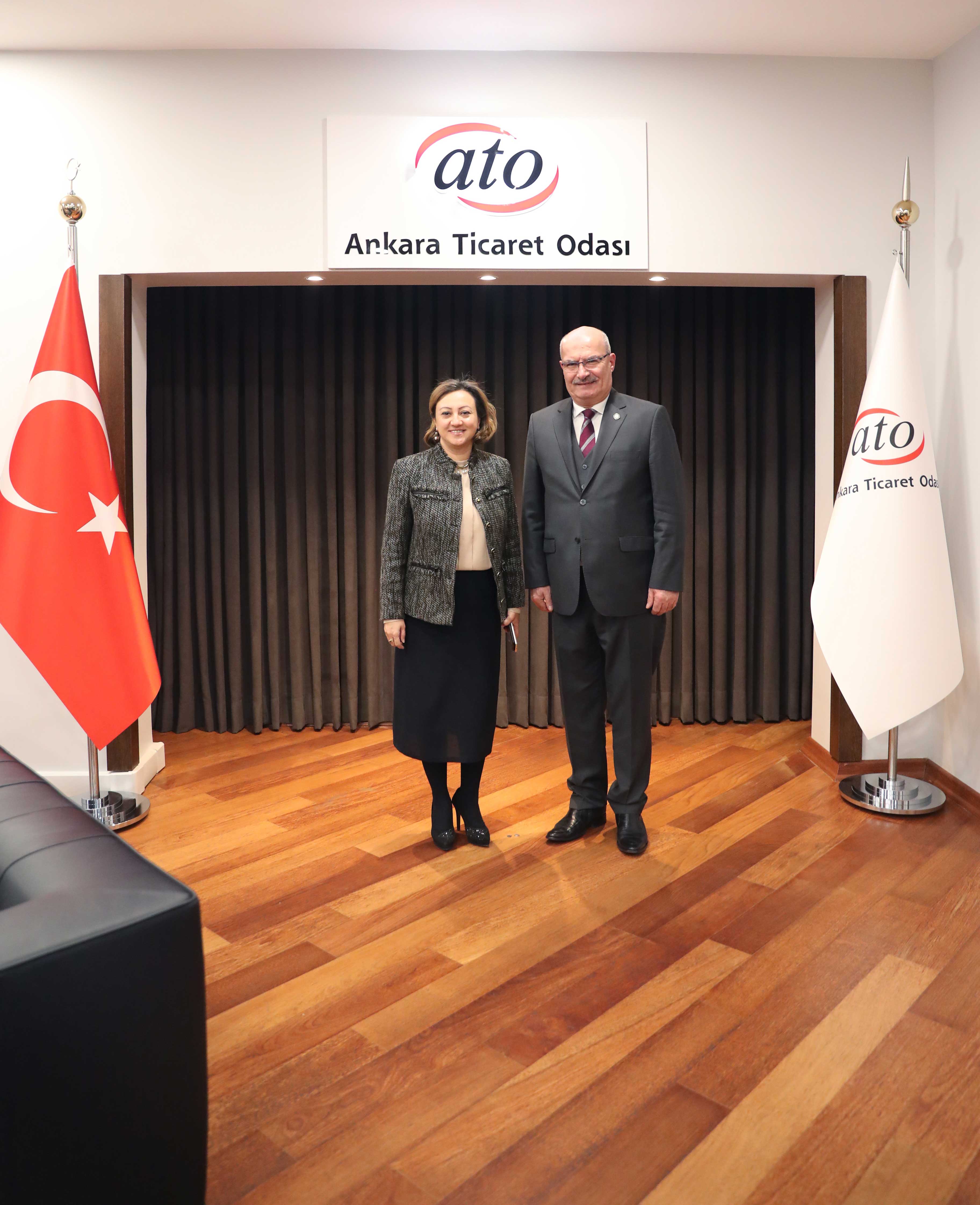 Kültür ve Turizm Bakan Yardımcısı Özgül Özkan Yavuz, Ankara Ticaret Odası Başkanı Gürsel Baran'ı makamında ziyaret etti. Ziyarette konuşan ATO Başkanı Baran, Ankara Ticaret Odası olarak, Başkent ekonomisinin gelişmesine yönelik yürüttükleri çalışmaları anlattı. Ankara'nın geliştirilebilecek potansiyellerinden birinin de kültür, sağlık, kongre ve fuar turizmi olduğunu kaydeden Baran, tüm konuların yurtdışı uçuşların sayısının artmasıyla ilişkili olduğunu söyledi. Ankara'nın üstü örtülü bir hazine olduğuna dikkat çeken Baran, "ATO Yönetimi olarak Ankara'nın üzerindeki örtüyü kaldırmaya çabalıyoruz. Başkentimizin sahip olduğu değerlerin farkındayız ve bunu duyurmakla ilgili bir çabamız var" dedi.
