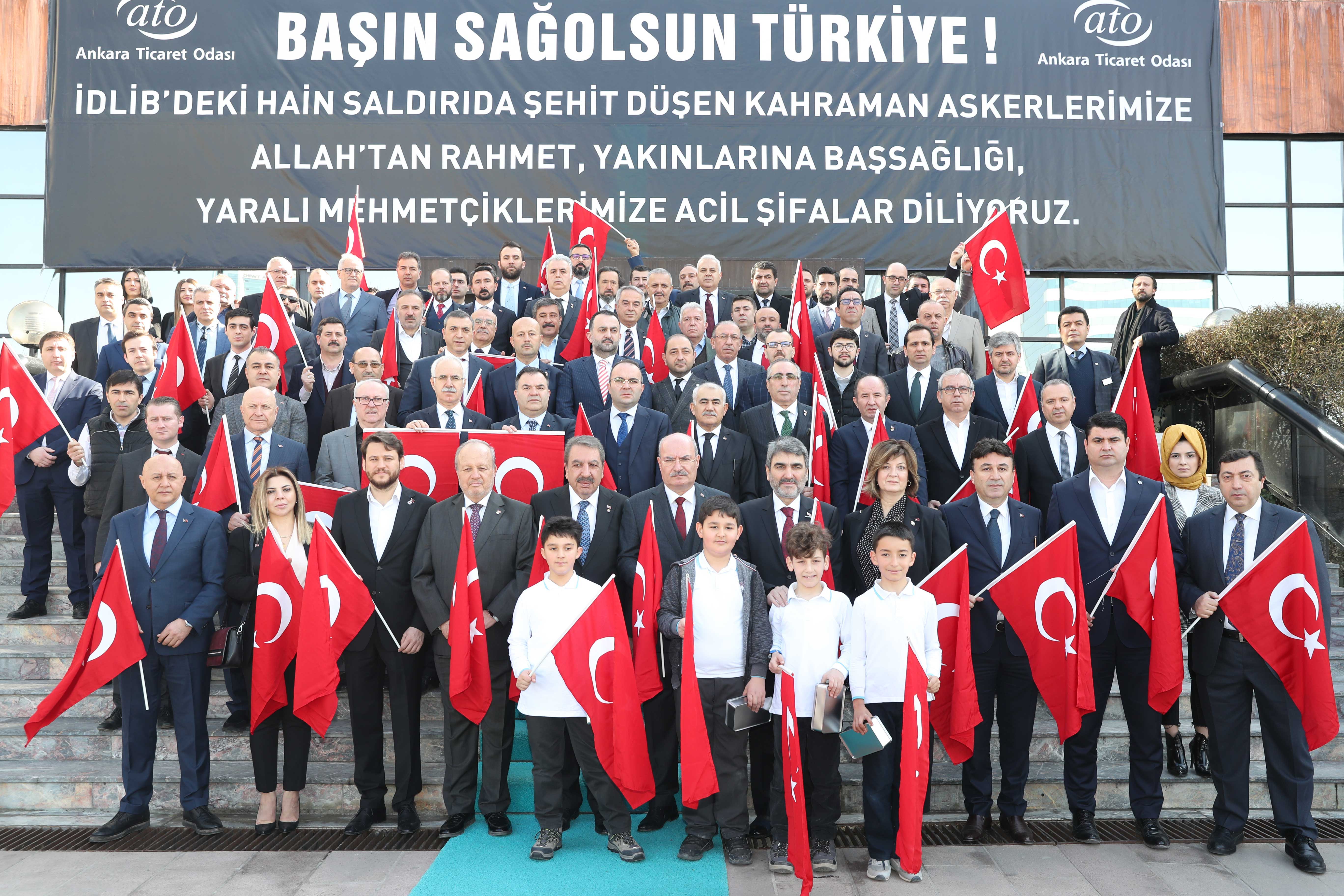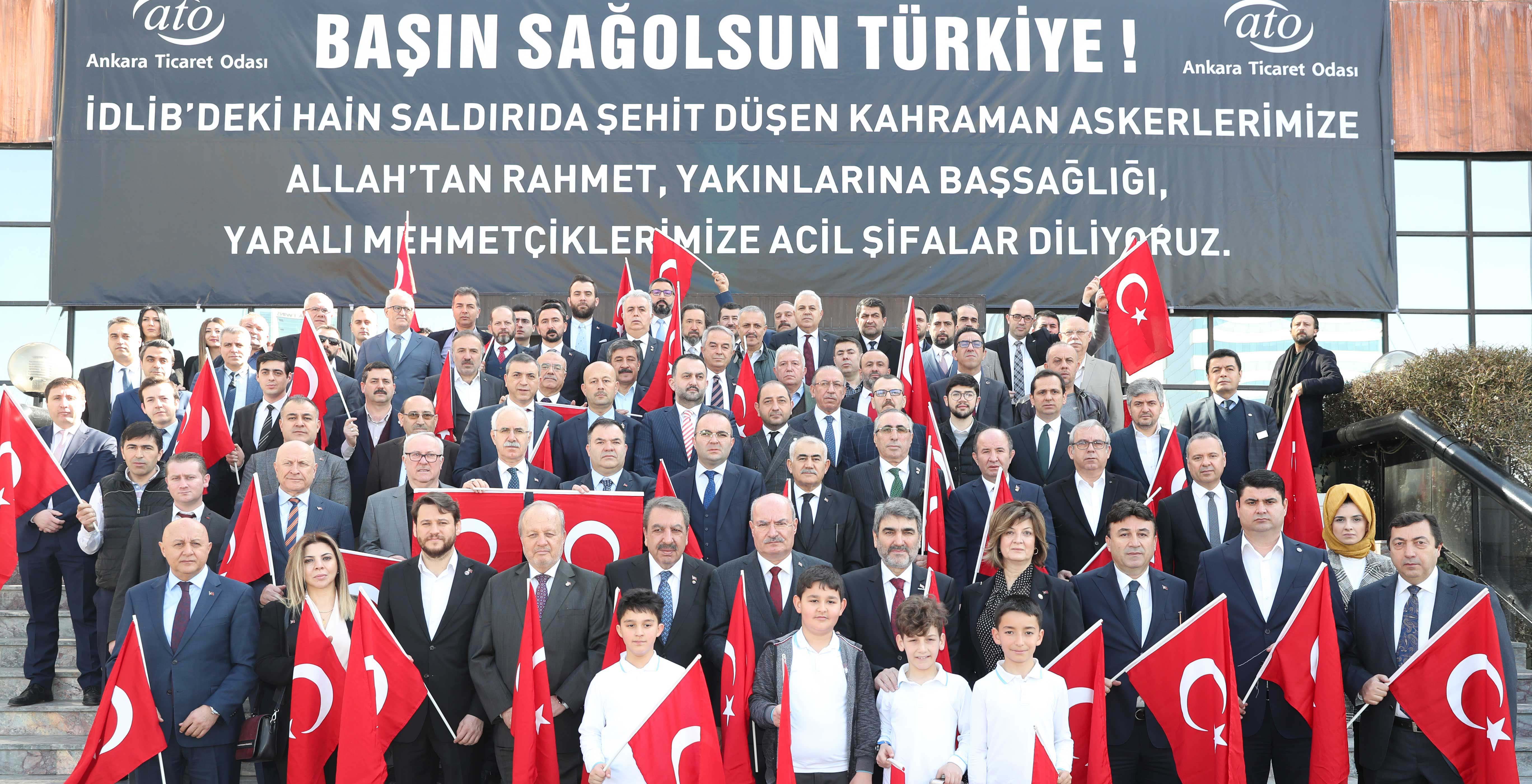 2 MART 2020- İdlib'de gerçekleşen hain saldırıya karşı, Türkiye Odalar ve Borsalar Birliği (TOBB) öncülüğünde Türkiye'deki 81 İl'in Oda ve Borsaları ve Sivil Toplum Kuruluşları ile Meslek Örgütleri'nin eş zamanlı yaptığı basın açıklaması, Ankara Ticaret Odası'nda (ATO) Yönetim Kurulu Başkanı Gürsel Baran sözcülüğünde gerçekleşti.