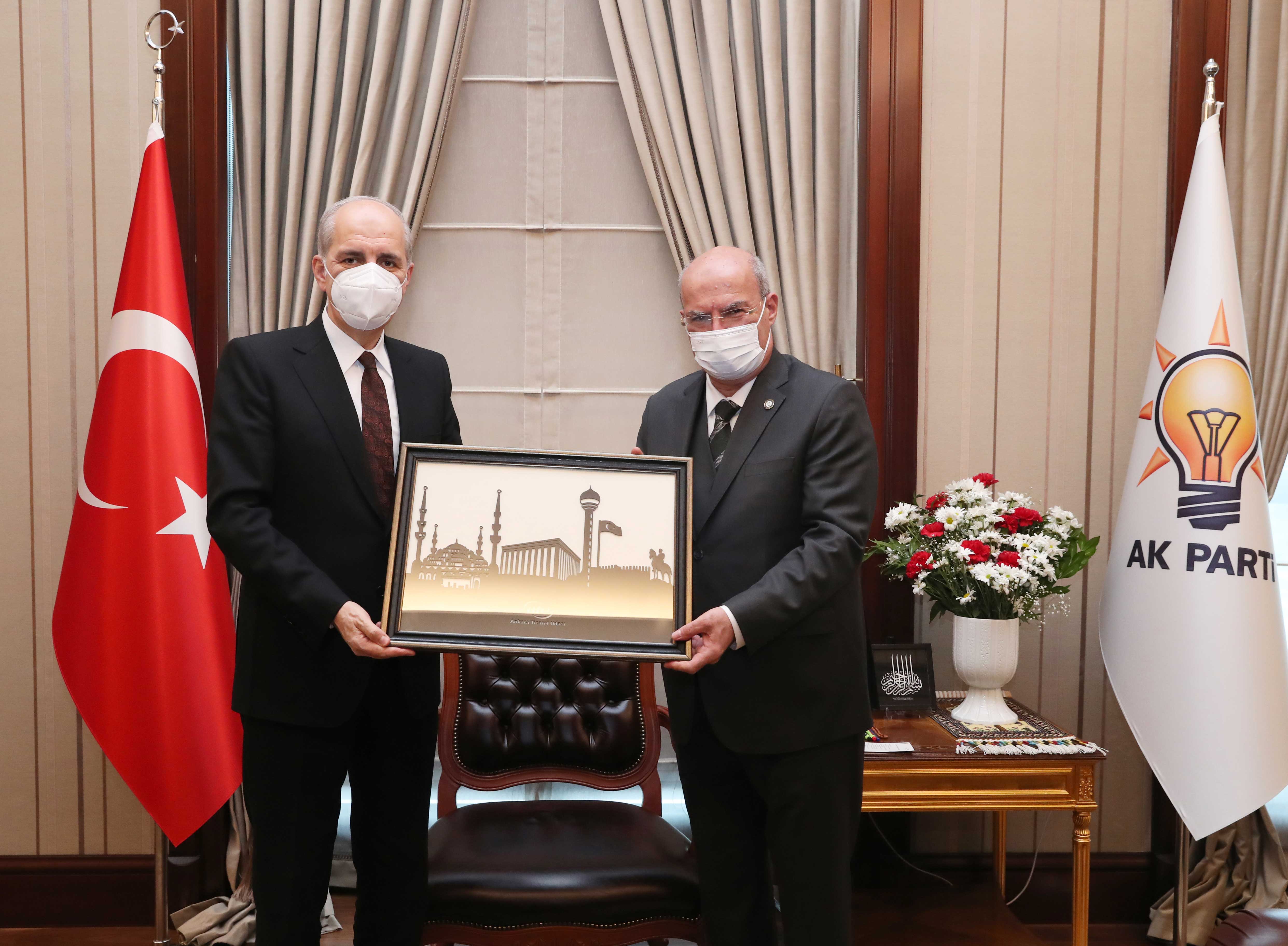 ATO Başkanı Gürsel Baran başkanlığındaki heyet, Adalet ve Kalkınma Partisi (AK Parti) Genel Başkanvekili Numan Kurtulmuş'u makamında ziyaret etti.