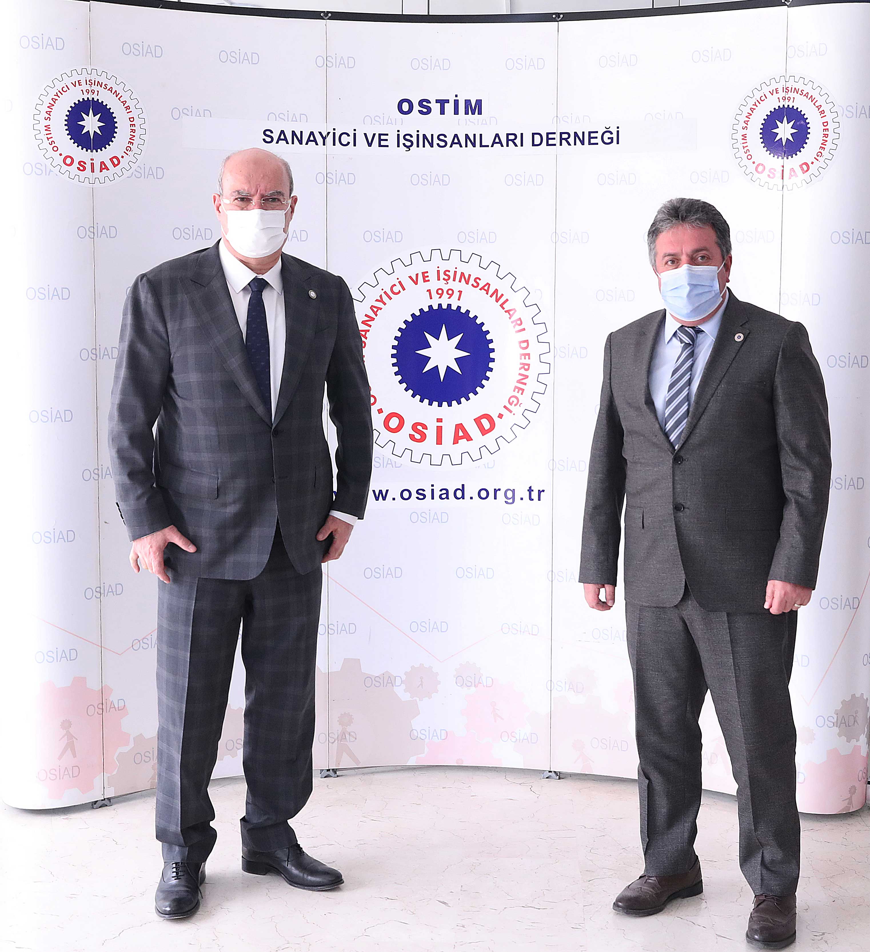 16 NİSAN 2021 - Ankara Ticaret Odası (ATO) Yönetim Kurulu Başkanı Gürsel Baran başkanlığındaki ATO heyeti, 30. OSİAD Olağan Genel Kurulu'nda Yönetim Kurulu Başkanlığı'na yeniden seçilen Süleyman Ekinci başkanlığındaki yeni yönetimi ziyaret ederek "hayırlı olsun" dileklerini iletti.