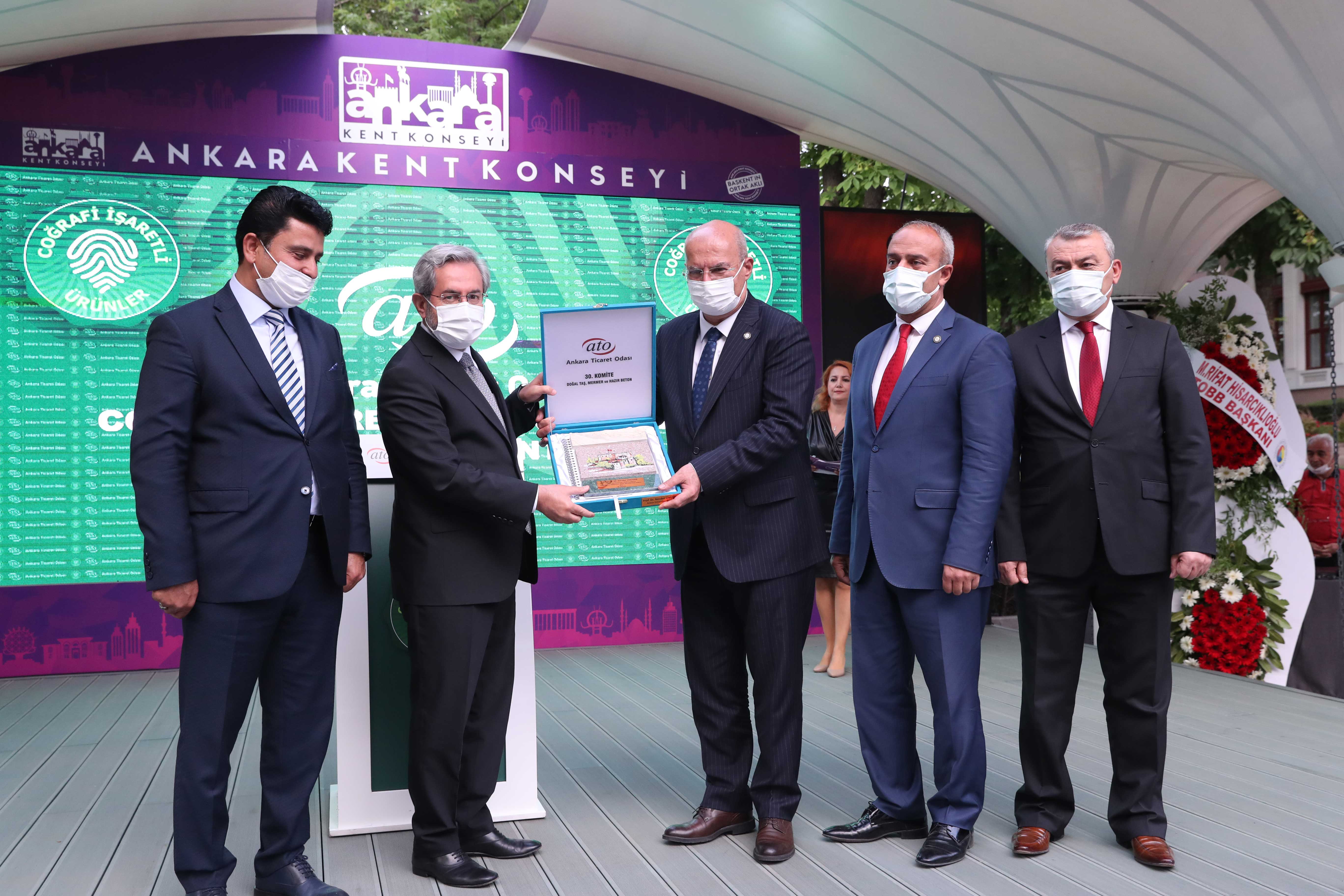 Açılış konuşmalarının ardından, ATO 30 No'lu Taş, Mermer ve Hazır Beton İmalatçıları Meslek Komitesi'nin Ankara taşından yapmış olduğu plaketler konuşmacılara taktim edildi.
