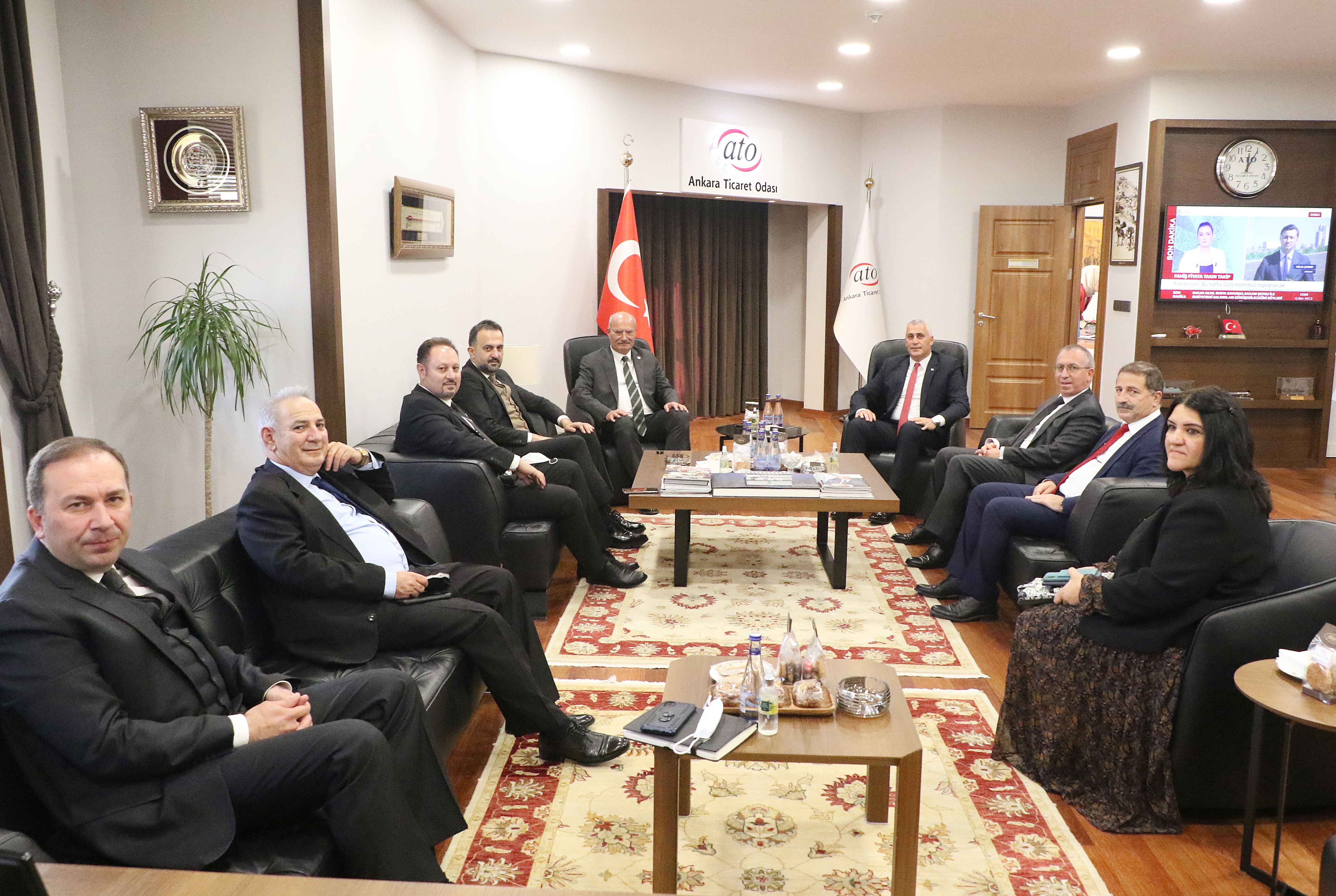 Kuzey Kıbrıs Türk Cumhuriyeti Milli Eğitim ve Kültür Bakanı Olgun Amcaoğlu, KKTC Ankara Büyükelçisi Kemal Köprülü, Bakanlık Müsteşarı Aytunç Şirket, Yüksek Öğrenim ve Dış İlişkiler Dairesi Müdürü Ziya Öztürkler ve Eğitim ve Kültür Ataşesi Rauf Ataöv'le birlikte ATO Başkanı Gürsel Baran'ı makamında ziyaret etti. Turizm ve eğitim sektörlerinin faaliyetlerine başlamasıyla birlikte pandeminin KKTC ekonomisi üzerindeki olumsuz etkilerinin hafiflediğini kaydeden Bakan Amcaoğlu, temel eğitimde 53 bin öğrenci ve 6 bin öğretmenin yüz yüze eğitime geçtiğini söyledi.