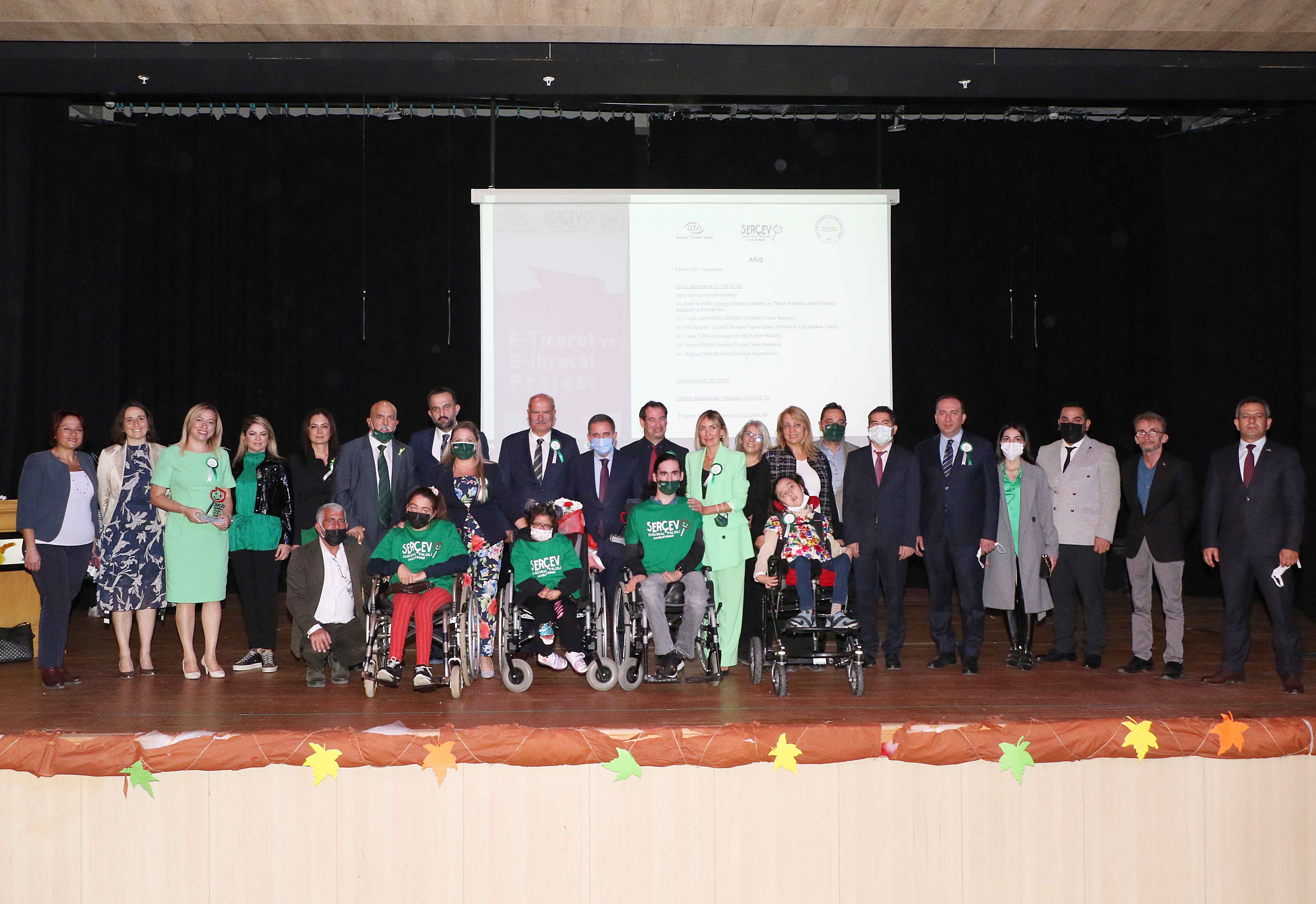 7 Ekim 2021- Ankara Ticaret Odası'nın (ATO), Serebral Palsili Çocuklar Derneği (SERÇEV) ve SERÇEV Engelsiz Mesleki ve Teknik Anadolu Lisesi ile birlikte, ilk etapta 180 serebral palsili gencin e-ticaret alanında eğitim alarak iş hayatında atılmasını sağlamak için hayata geçirdiği "E-ticaret ve E-İhracat Eğitimi Projesi" Serebral Palsi Farkındalık Günü'nde başladı.